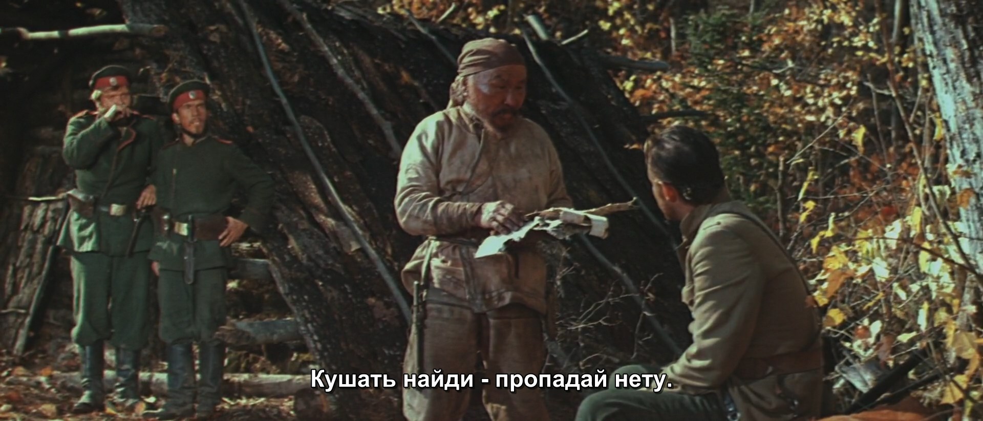 Отличный фильм конечно. Мне даже кажется, что мангака камуя немного им вдохновлялся. Ведь если убрать из камуя шутки про говно, гейские шутки и излишний вестерн, то получится плюс минус похожий тайтл. Ещё здесь можно было встретить медитативное любование природой, как в каком-нибудь мастере муши. Сам Дерсу Узала как персонаж тоже вызывает какое-то уважение вперемешку с восхищением. Солдатня при первой встрече всё посмеивалась над его недалёкостью и дикостью, но при общении тоже его зауважали. Классный дед. Концовка правильная с какой стороны ни глянь. Арсеньев сделал всё, что в его силах, чтобы отплатить старику. Винить его не в чем.9/10