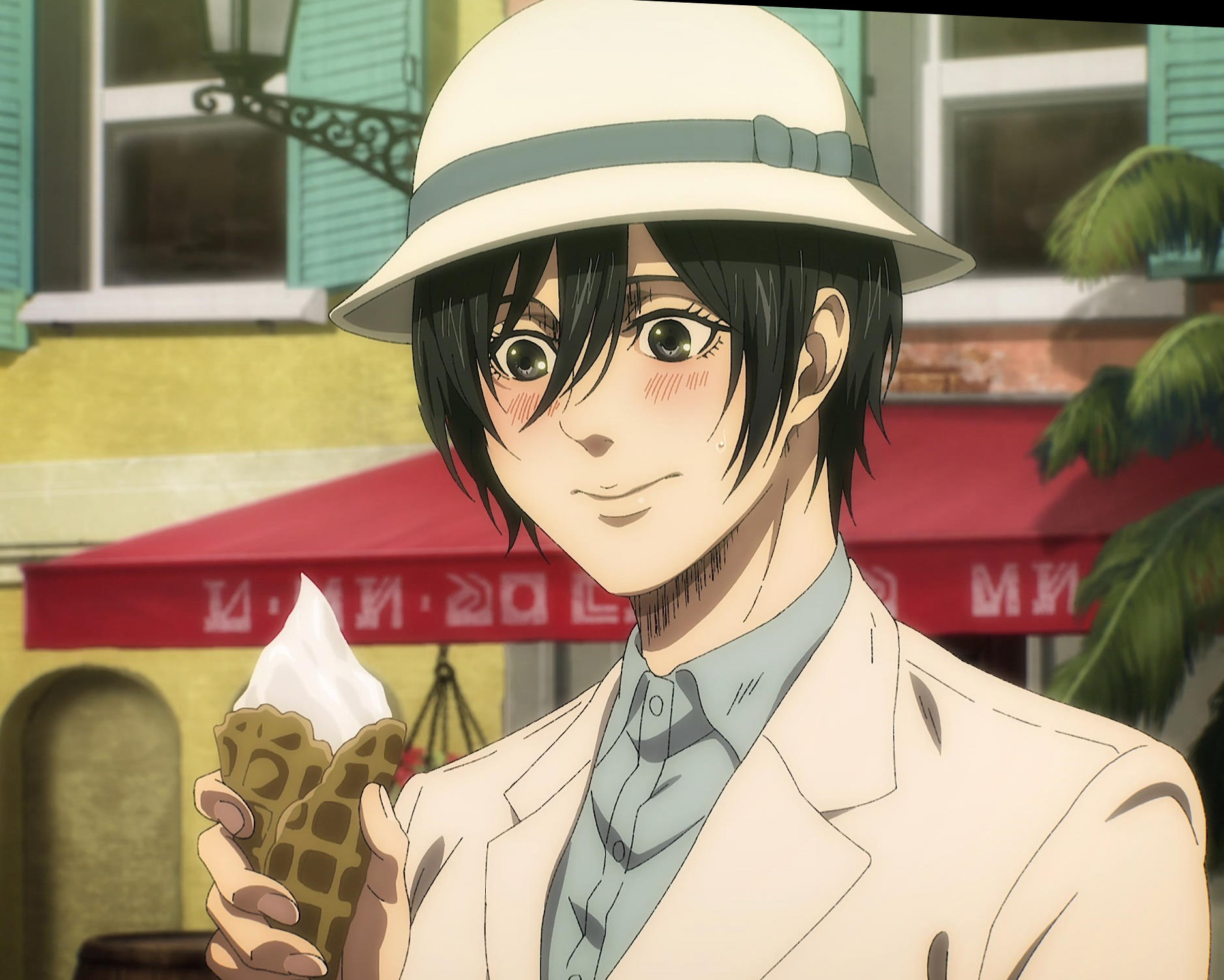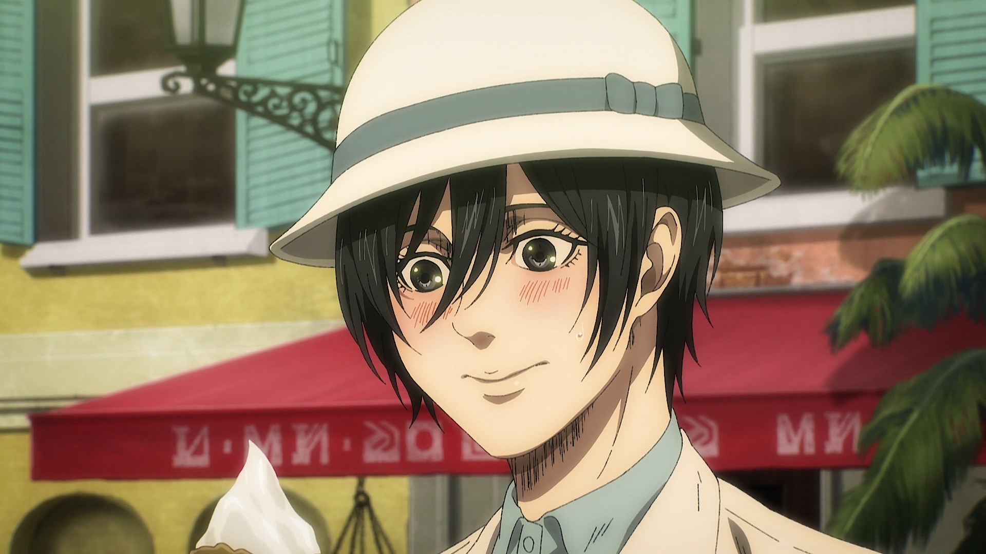Заставили Микасочку краснеть в последней серии, ну это незаконный приём.
