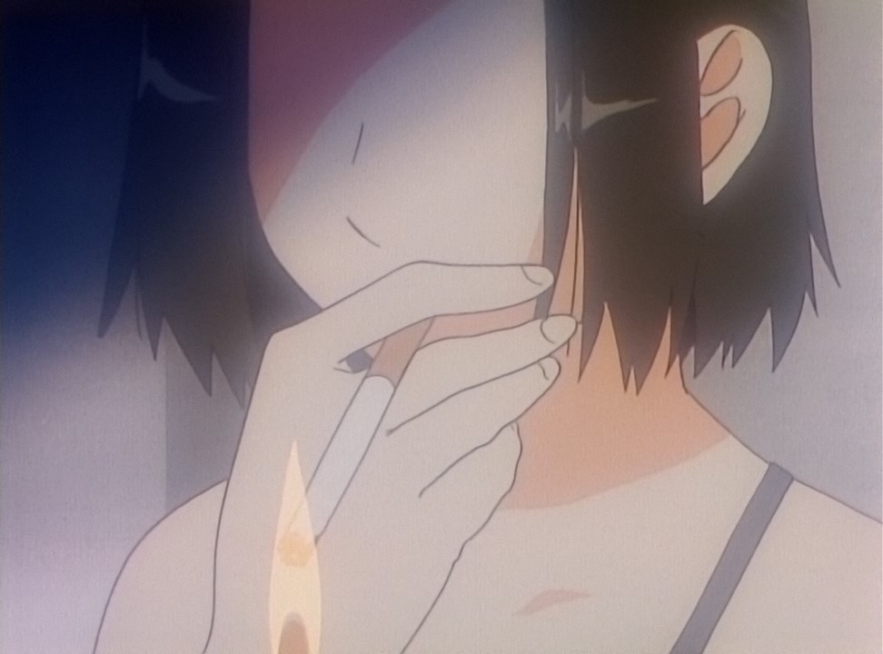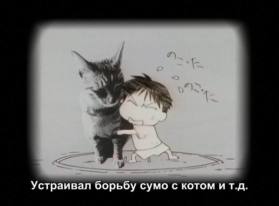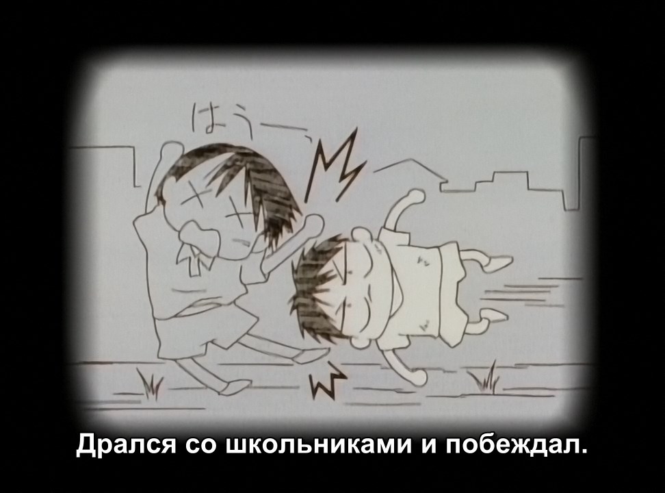 Шикарная композиция, особенно при почти полном отсутствии контекста. Вообще я, конечно, знал что Ойши поклонник Годара, да и упоминал уже это, но только пересматривая сейчас вижу насколько все же много именно гатари у него заимствуют - даже в деталях. И насколько это подходит - тут те же бесконечные и странные по форме диалоги, даже их темы похожи. Вот уж действительно поставить его режиссером адаптации было невероятно удачным решением.