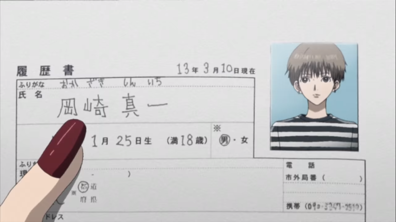 >>152218 Где именно? Над пальцем имя. 岡崎真一 (okazaki shin'ichi). Над именем его транскрипция. Слева написано "фамилия и имя". Над этим написано "фуригана" (транскрипция рядом с иерогилфами так называется). Сверху написано автобиография/послужной список/анкета. Справа написана дата: 13-й год 3-й месяц 10-й день настоящее время. Я тут не уверен, что они подразумевают под "настоящее время", в таких случаях по идее могут указывать эпоху (по императорам считается), но тут мб год 2013-й просто, а не от эпохи какой-то. Справа от пальца написано 1-й месяц 25-й день рождение полные 18 лет мужчина (обведено) женщина (не обведено). Под фоткой написано "телефон". Ниже написано "код зоны". Ещё ниже написано "мобильный 090-5247-2519". Слева от пальца по одному иероглифу 現 не могу предположить, что написано. А над иероглифом написано опять "фуригана". Фуригану знаю могут просить писать к именам, фамилиям и никам, а к чему ещё хз. Под пальцем ток один иероглиф понятен, так что хз. И в самом низу под пальцем видно "дрес", то есть это часть слова "адрес".