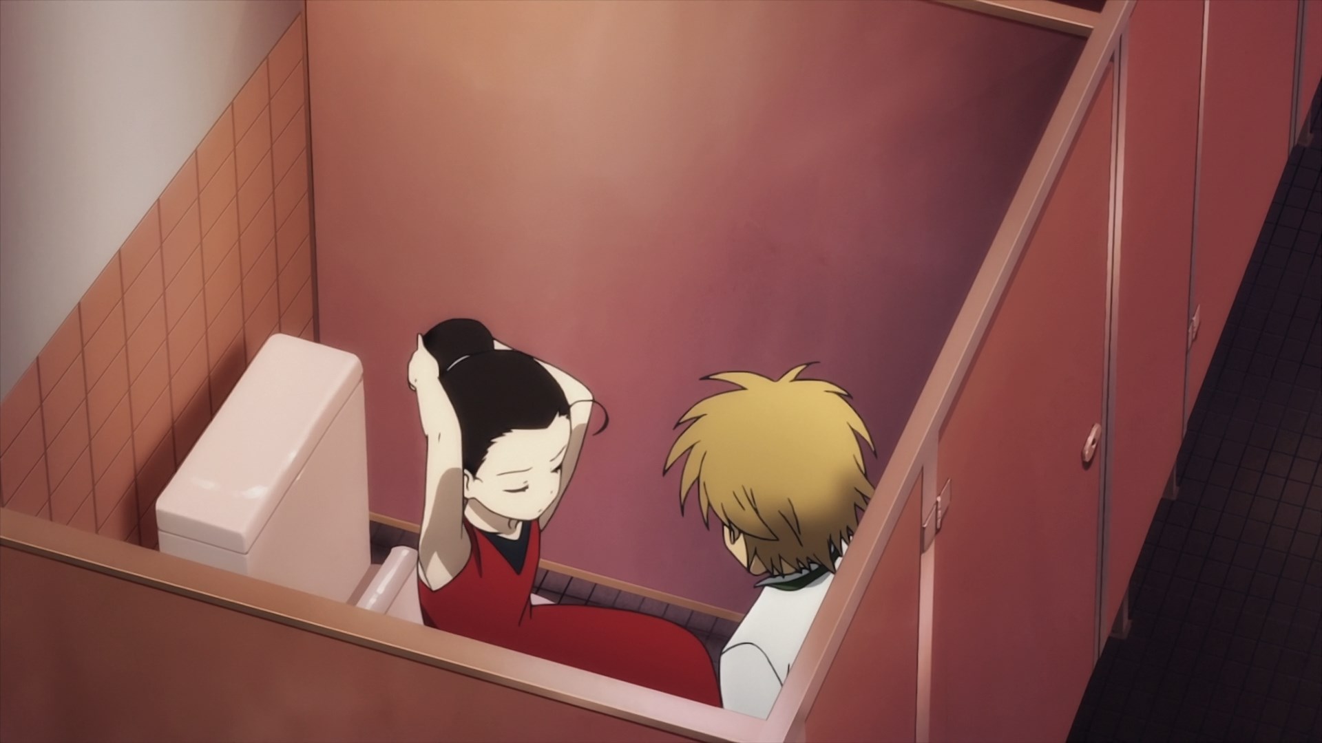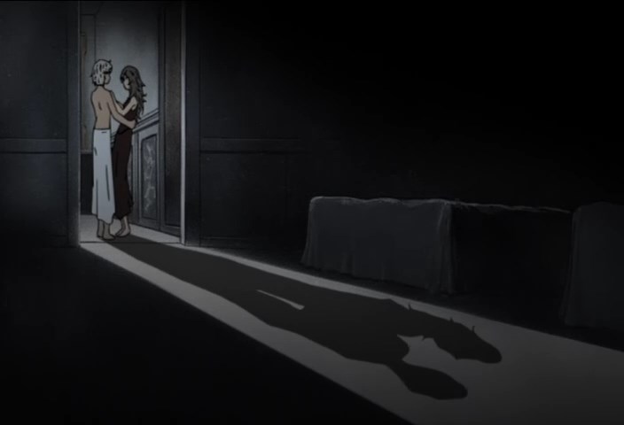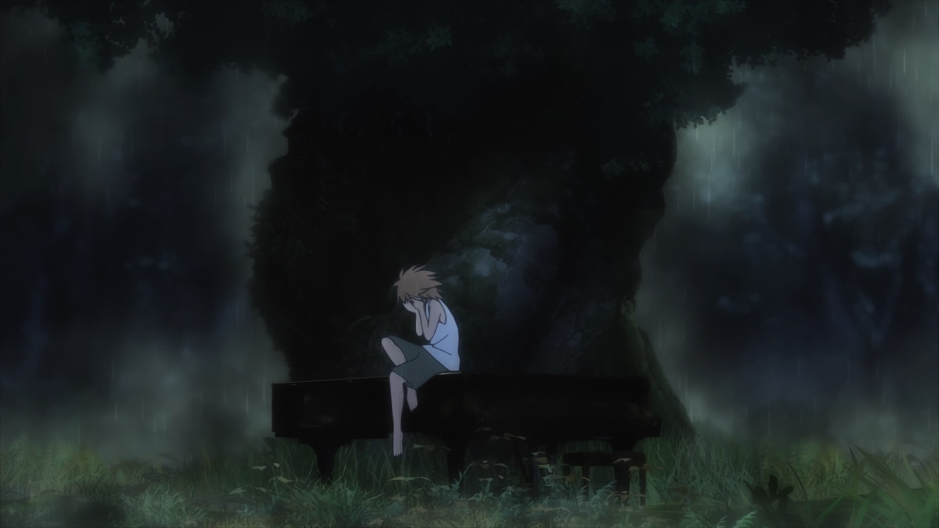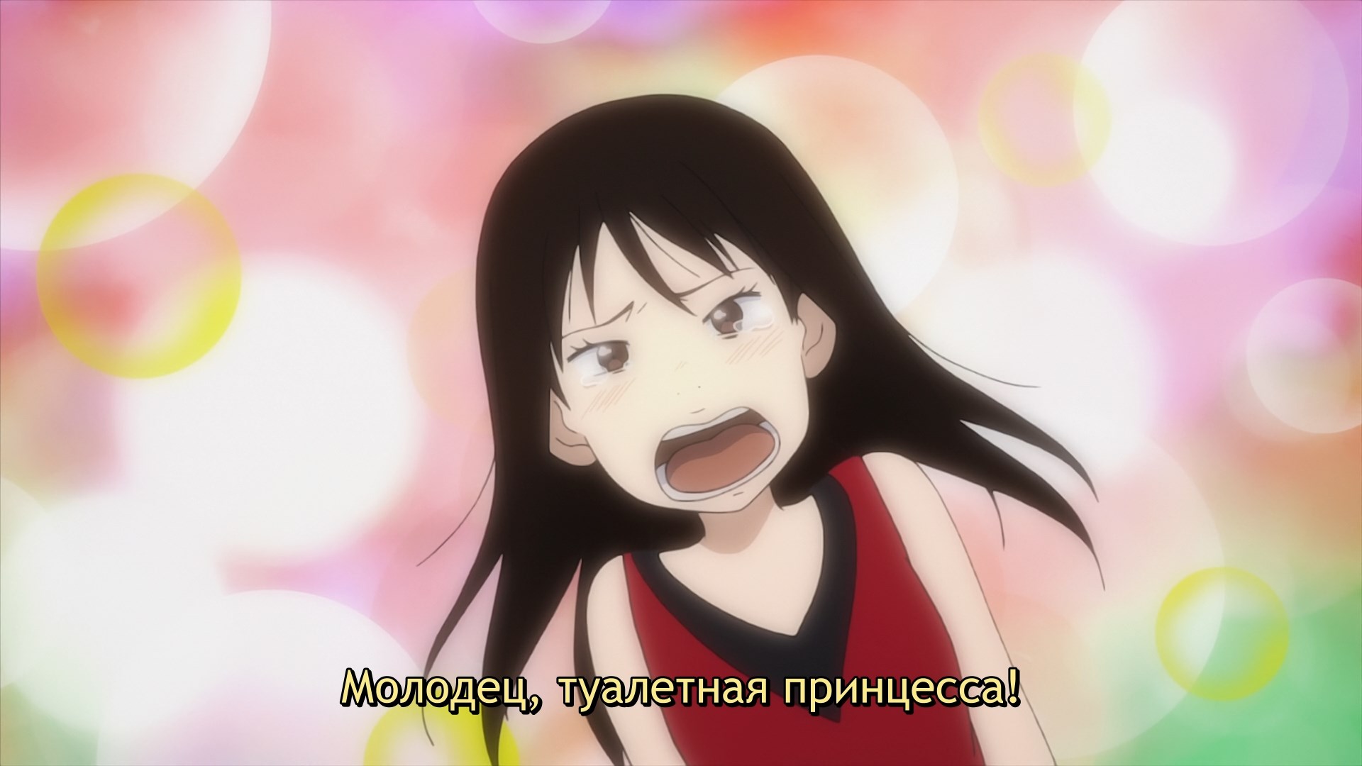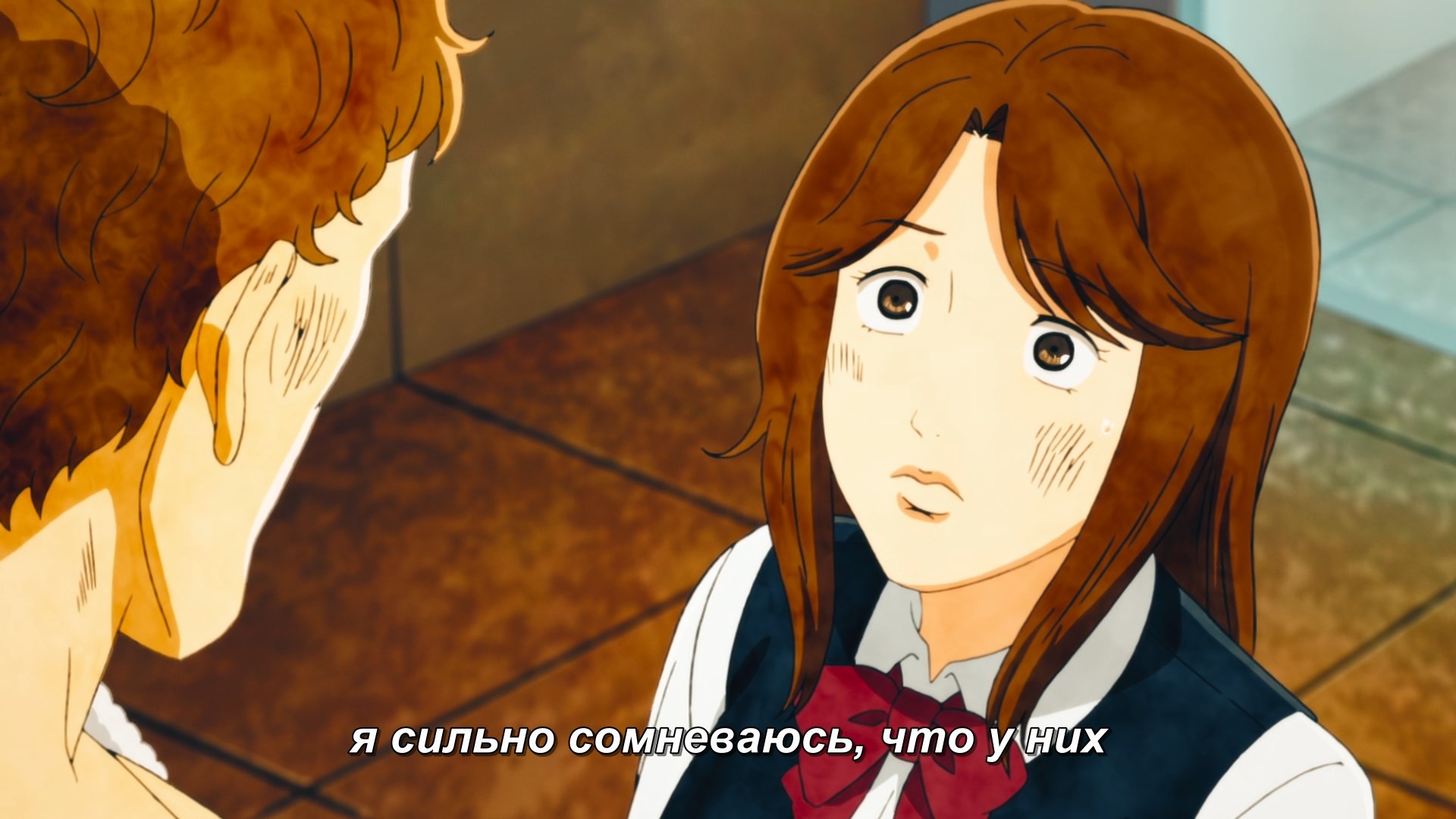 Только вот сама атмосфера произведения, цветовая гамма, сверхтягучесть вообще ВСЕГО живо напомнили мне Бугипопа. Но триллером здесь даже и не пахнет, поэтому подобное нагнетание вкупе со всеобщей тормознутостью мне не особо понятны. Такое чувство, будто все персонажи закинулись лошадиной дозой антидепрессантов, настолько аутично они себя ведут. Диалогами в принципе можно пытать особо нетерпеливых зрителей, ведь после каждой фразы обязательно надо сделать паузу подлиннее...