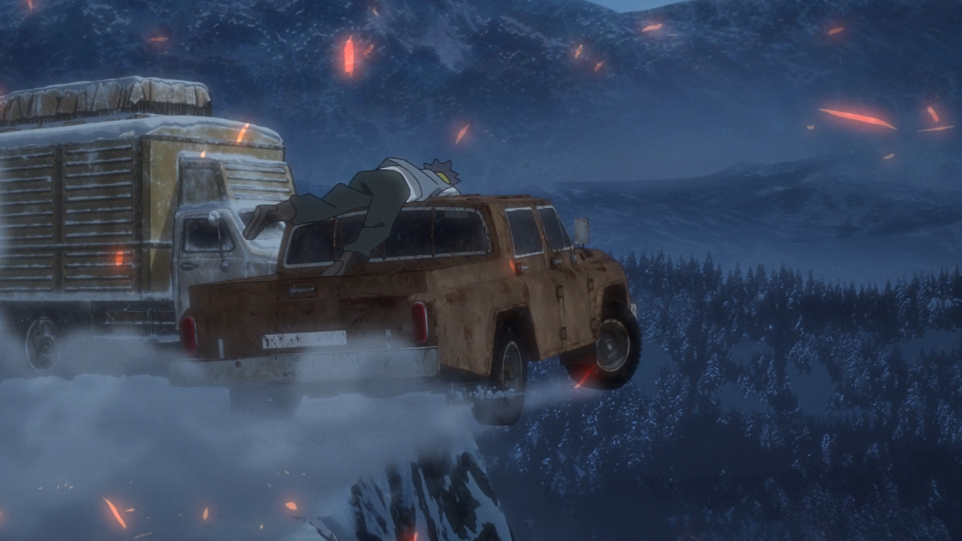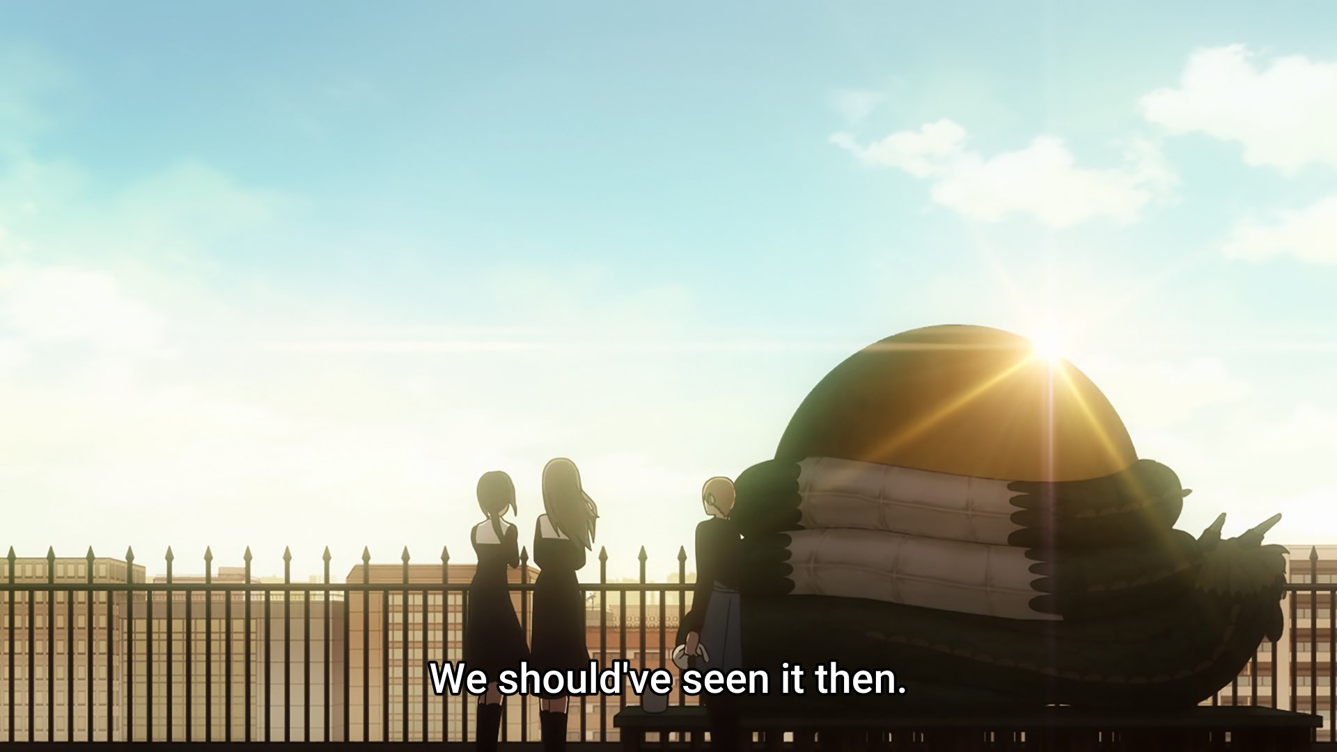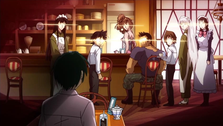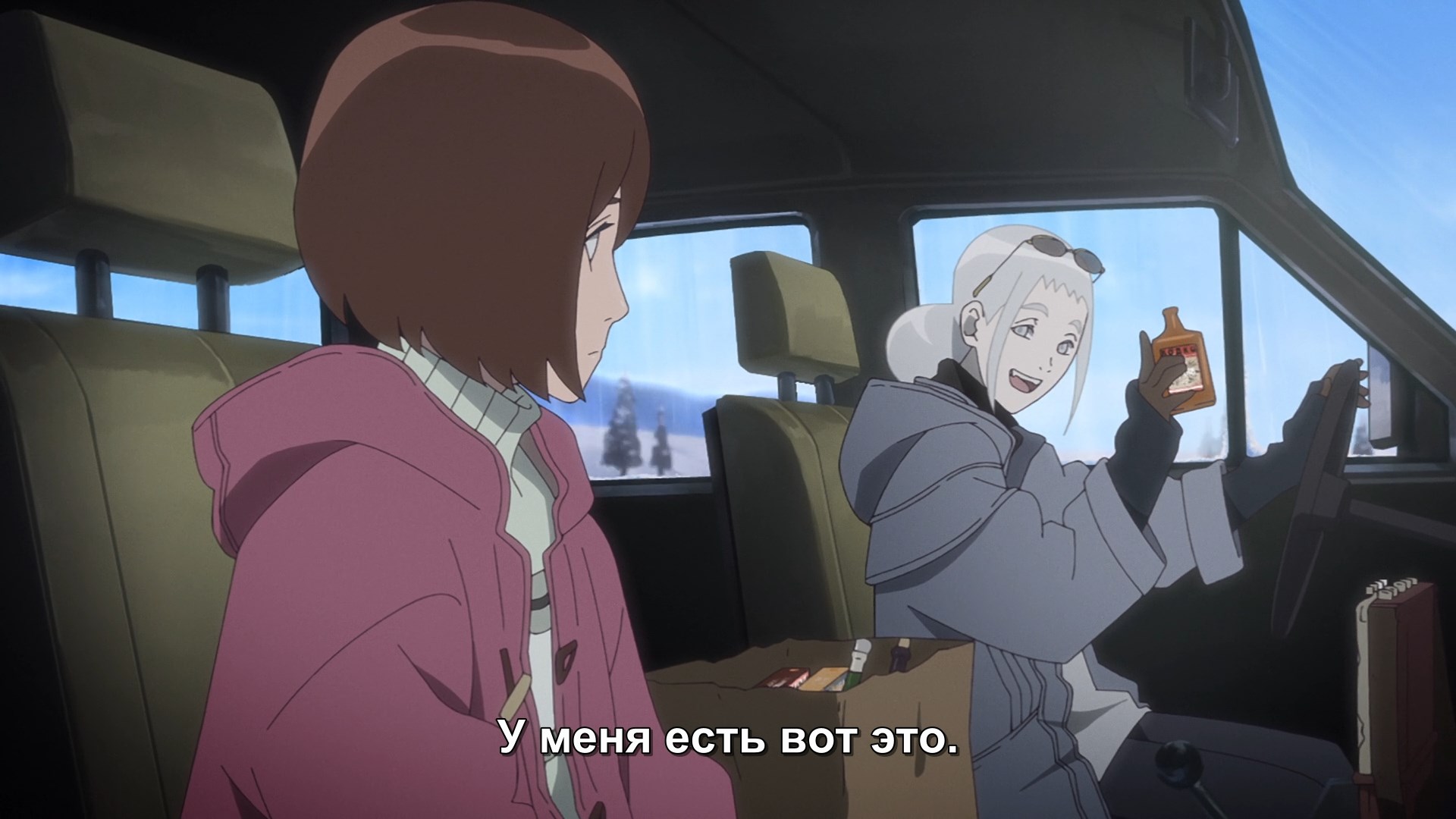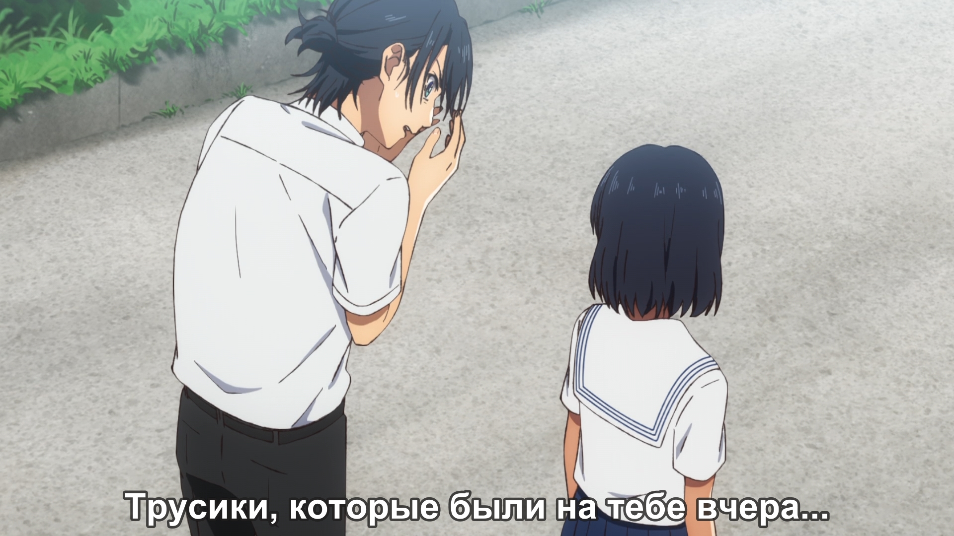 Только вот сама атмосфера произведения, цветовая гамма, сверхтягучесть вообще ВСЕГО живо напомнили мне Бугипопа. Но триллером здесь даже и не пахнет, поэтому подобное нагнетание вкупе со всеобщей тормознутостью мне не особо понятны. Такое чувство, будто все персонажи закинулись лошадиной дозой антидепрессантов, настолько аутично они себя ведут. Диалогами в принципе можно пытать особо нетерпеливых зрителей, ведь после каждой фразы обязательно надо сделать паузу подлиннее...