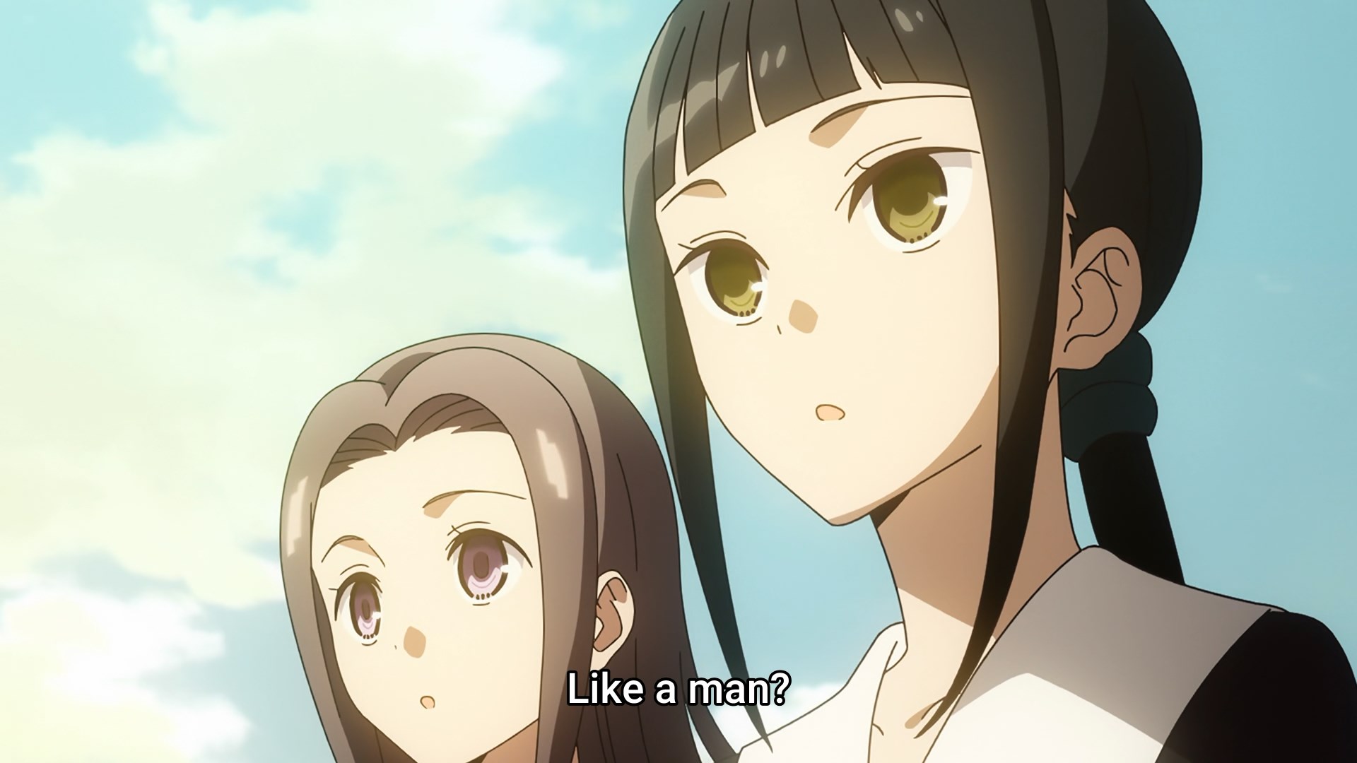 Неоднозначный тайтл. С одной стороны мне до ужаса понравилась юрипарочка, но с другой вообще больше ничего не понравилось. Конфликт какой-то между людьми и вампирами тупо неочём. Может и правда в 5 эпизодов не уложилось повествование, кто уж теперь разберёт. Хотя бы предысторию дяди с катаной бы сделали бы объёмней. Сдаётся мне там история не менее слезодавительная, чем у девочек Сильно понравились счастливые и не очень моменты во время странствий. В основном это и скринил, лол. Клюква чёт не особо зацепила. Хотя дизайн деревушки на отшибе неплохой. 6/10