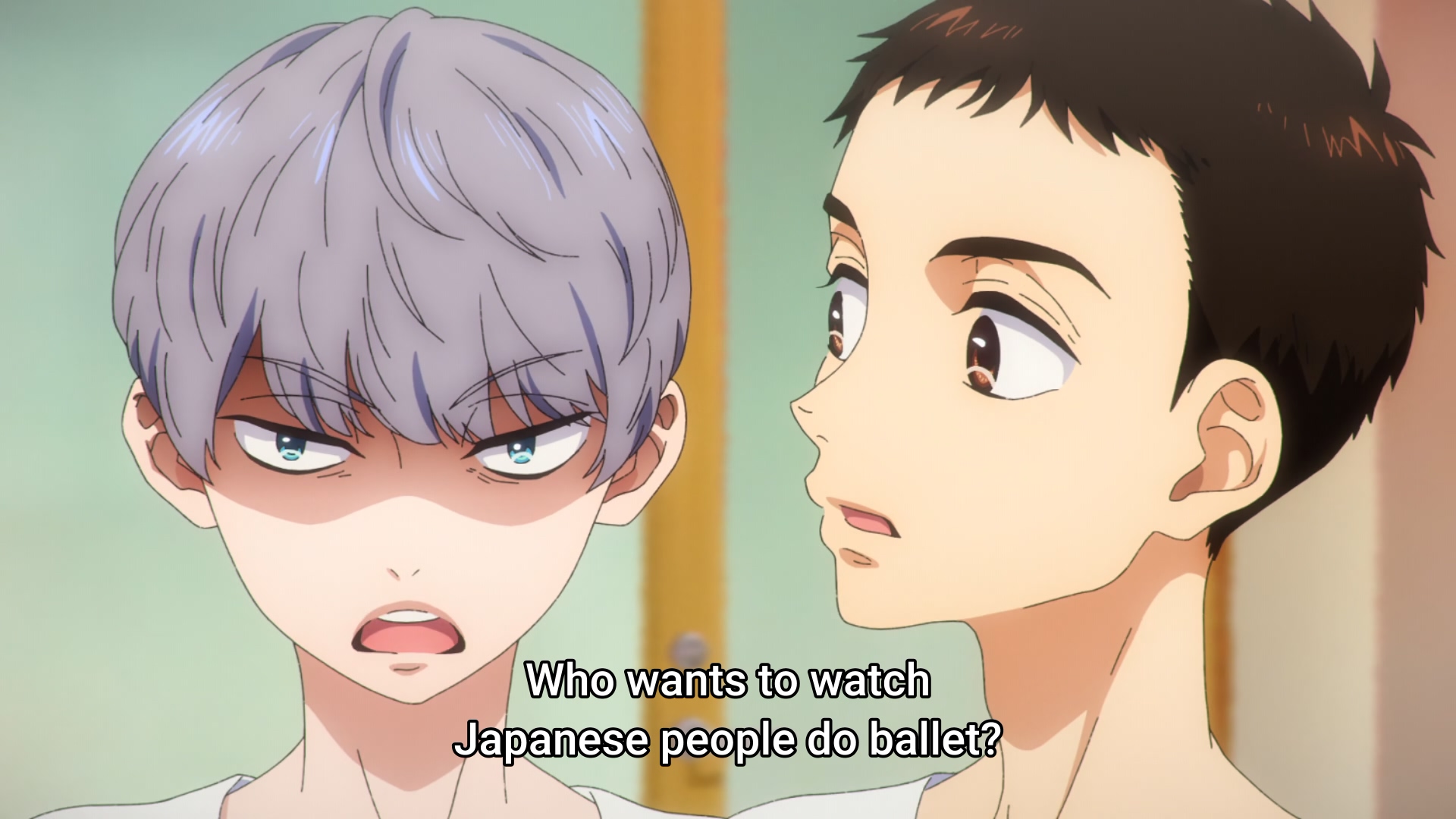 то.. то это называется "танец модерн", блядь. Ты не хочешь заниматься балетом, ты хочешь заниматься танцем модерн. Хватит уже портить карьеру партнерам и воровать у лолек время на сцене, эгоистичный говнюк. ГГ тут тот еще мудак, очень сложно его терпеть, но если по ходу сюжета он придет или ему помогут прийти к осознанию того, чем он действительно хочет заниматься - тайтл имеет еще какие то шансы на некоторую реабилитацию. Если же нам покажут как он, вооружившись природным талантом и подростковой гиперактивной увлеченностью раздвинет границы представлений о балете и посрамит скованные жесткими рамками и замшелые взгляды судьи - то это всё.
