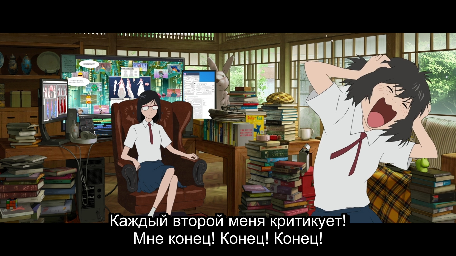 Какая же сранина Господи Иисусе... Неуравновешенная ггиня и спасение всех и вся. Нет, ну если бы я был 11-летней школьницей, что пошла на сеанс вместе с мамой, мне бы понравилось, но не в этот раз. Как же я орал, когда они пытались выдавливать драму в конце, где она петь начала. Все такие слёзки пускают, фонарики зажигают, пой! пой, кричат, ооооох. Лучше бы она пошла в порно, как та, с кого её списали, было бы интереснее. Можно было запились сюжет, как в Хеншине, где она бы после фарма такого количества подписчиков постепенно проваливалась на самое дно. Нет, ну можно отдать должное Хосоде, он не изменяет себе и выдавливает сюжет на вполне распространённую тему насилие в семье и уход от этого в виртуальный мир - всё такое же семейное и блаблабла. На данный момент худшая его работа, ещё хуже, чем мирай но мирай. Что там говорите, 15 минут аплодисментов в Каннах? 3/10. Пойду посру.