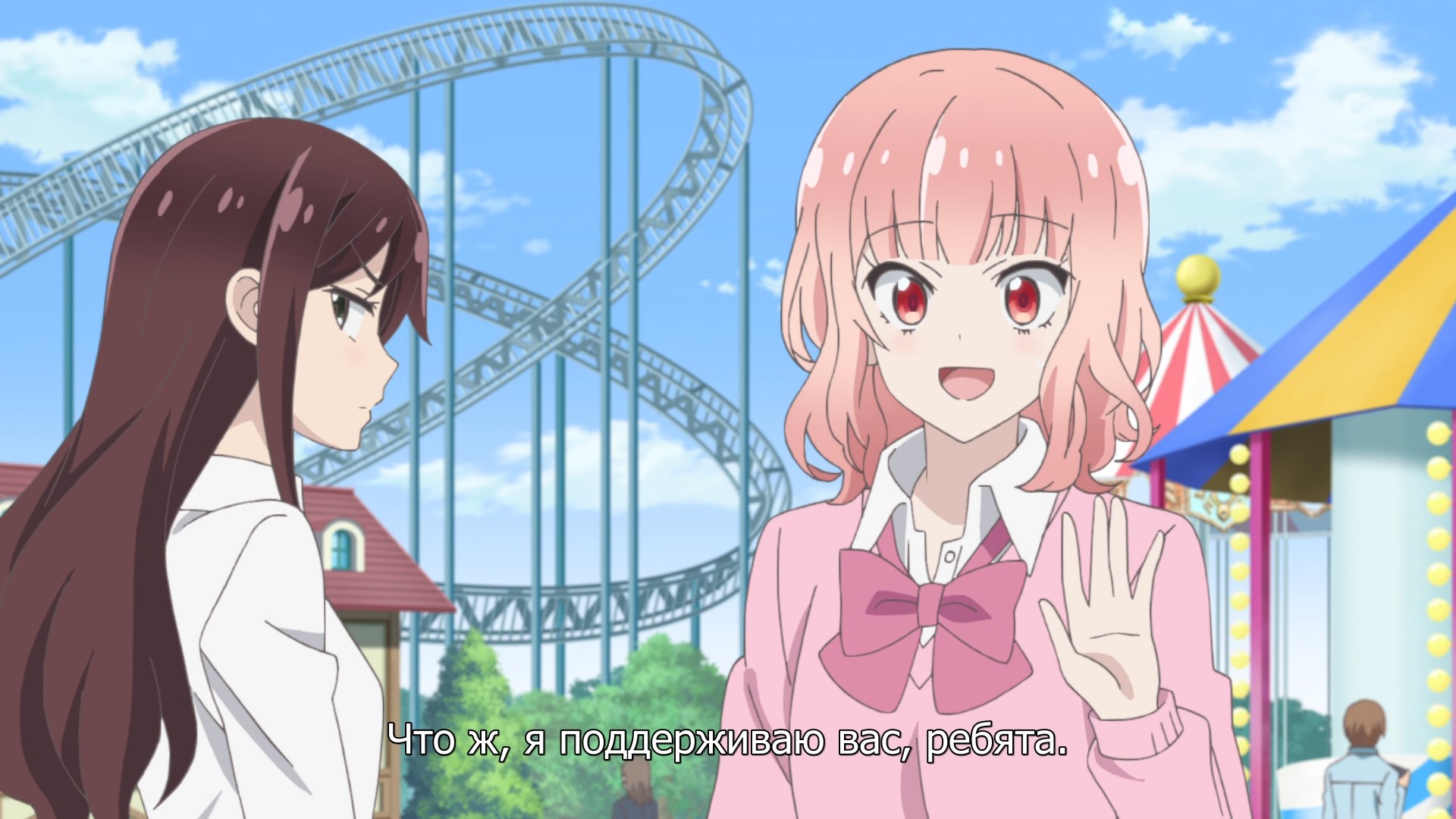 Торт разрезали, ребёнка утихомирили, хэппи энд. Чем-то похоже на шин но накама - такая же беззаботная лоутир ванильная романтика. Только здесь ещё кринжетема с паверренжерами, которая мне перестала быть интересна, когда я пошёл в первый класс. Максимально дешёвый тайтл во всех аспектах, но смотреть было забавно за няшностями главных героев, да и не только главных.