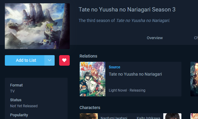 Ну какой-то мех вышел. Унылый сюжет, герои никуда не продвинулись, смотреть было интересно только серию с тем потерянным островом, из которого Кизуну спасали. Черепаха какая-то унылая, поехавший двачер... Ооох. Рафталии тоже крапаль был, хотя я только из-за неё всё это ждал. Зато сделали какого мини-рафталика - ахуеть спасибо. Не в том смысле, что Наофуми и Рафталия его вместе сделали, тип... ну вы поняли. А в общем, что добавили питомца такого. У нас есть уже Фило, зачем нам ещё один? Слайдшоу ещё это сраное в экшн-аниме... Могли бы и побольше денег дать, я хз. 5/10. Надеюсь, что потом покажут что-то крутое - смотреть-то всё равно придётся.