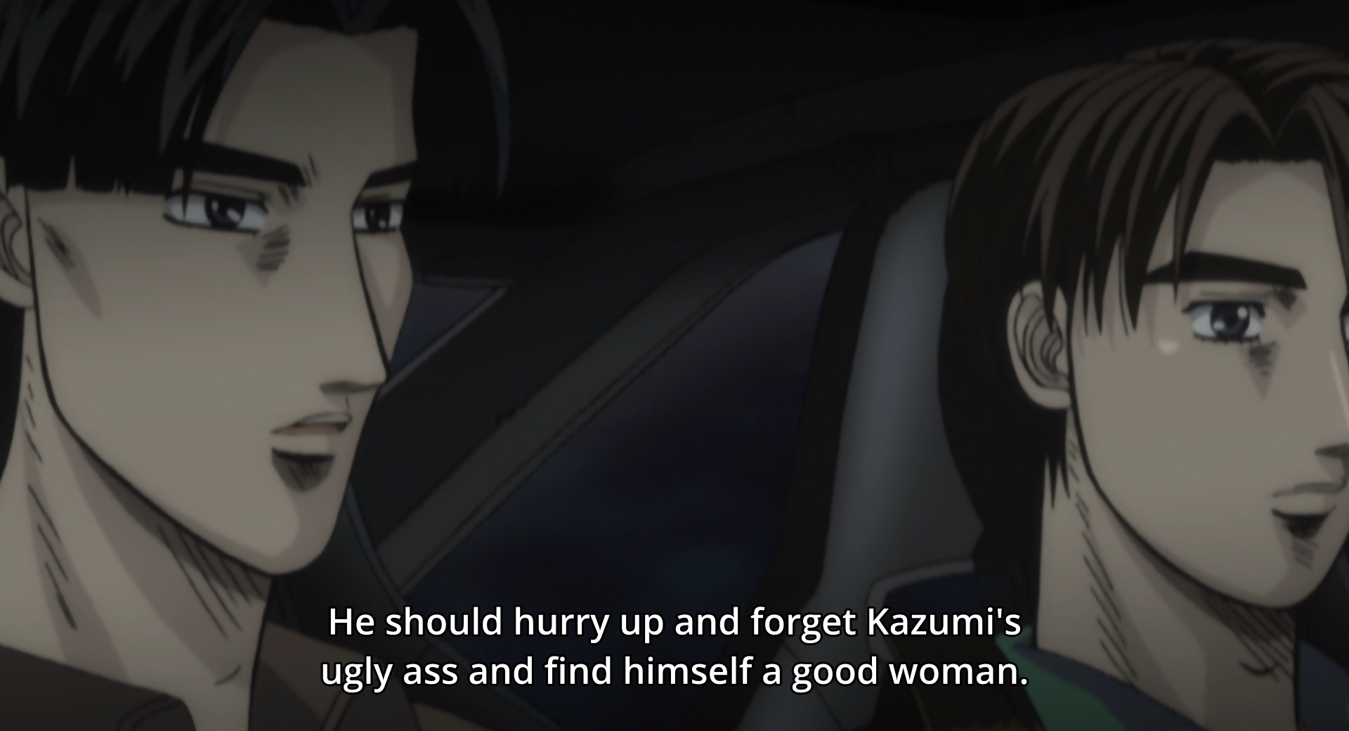 Непрекращающиеся гонки весь сезон. Тупо каждую серию гонялись, даже в той, казалось бы, слайсовой серии и то был соло-заезд с девкой на пассажирском. Сначала меня это тяготило и я уже почти устал, а потом будто второе дыхание открылось и такой режим сезона мне вкатил - уже с предвкушением ожидал, что в следующей серии точно будет гонка, только противник оставался под вопросом. Каждый сезон восхищаюсь тем, что качество 3д в гонках растёт в геометрической прогрессии - в этом сезоне так вообще услада для глаз. Всё суперплавно и графика крутая. Современные аниме отстают от здешнего 3д очень жёстко, могу сказать. По персонажам, а именно Такуми - ну что-то какой-то он мёртвый - будто призрак, чтоле. Характер бы ему как-то поинтереснее сделать, эмоций побольше... А вот Кейске очень даже порадовал, что его ему подарили столько экранного времени, его история с влюбившегося в него тянкой, его мотивация гоняться... - крутой перс. Хочу в конце крутую финальную реванш-гонку с ним и Такуми - будет эпик.