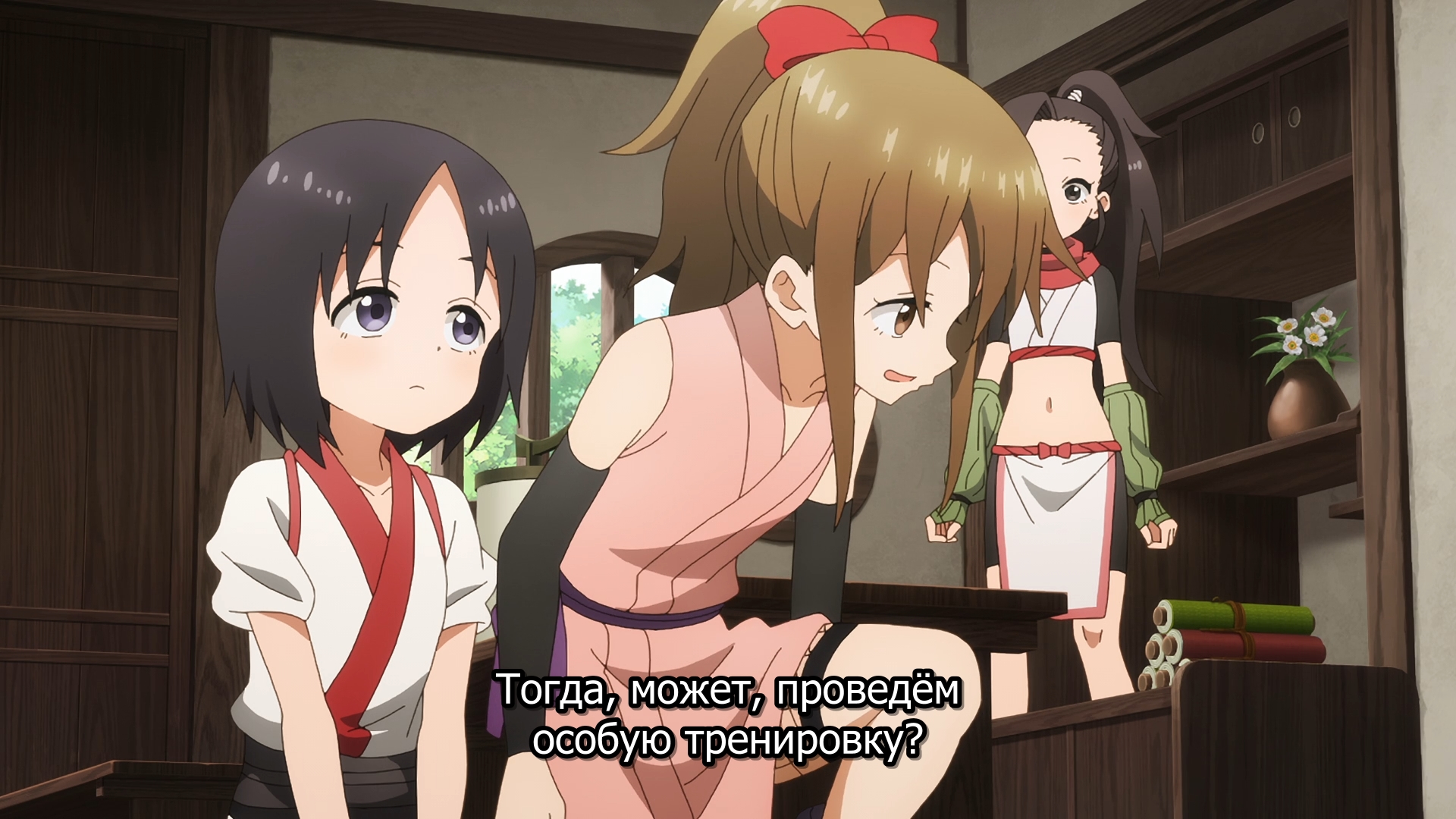 Местами этот тайтл слишком развратный. Эти ракурсы камеры, это ёрзания попой при разговоре о мужчинах, эти бесконечные кадры на ступнях и прочих местах... Хоспаде, как бы мне хотелось посмотреть это аниме будучи 10-летней девочкой, у которой ещё мозг не заполнен всяким грязным дерьмом и просто насладится слайсом с лолями, как они весело проводят время в деревне. Но нет. Как я и предполагал: мужчин в этом аниме не будет кроме пары секунд в ласт серии. Просто какие-то мифические существа, которые где-то там есть. Мне кажется, если бы их включили, то всё скатилось бы в массовую романтоту и развал деревни - то, от чего бежала учительница. Не плюс, и не минус - просто данность тайтла. А так, очень даже неплохая повседневность с интересными персами. Пусть их и было чересчур много, но почти всем уделили внимание, анимация тоже хороша - аниме про шиноби же! Грех было на ней экономить. 7/10