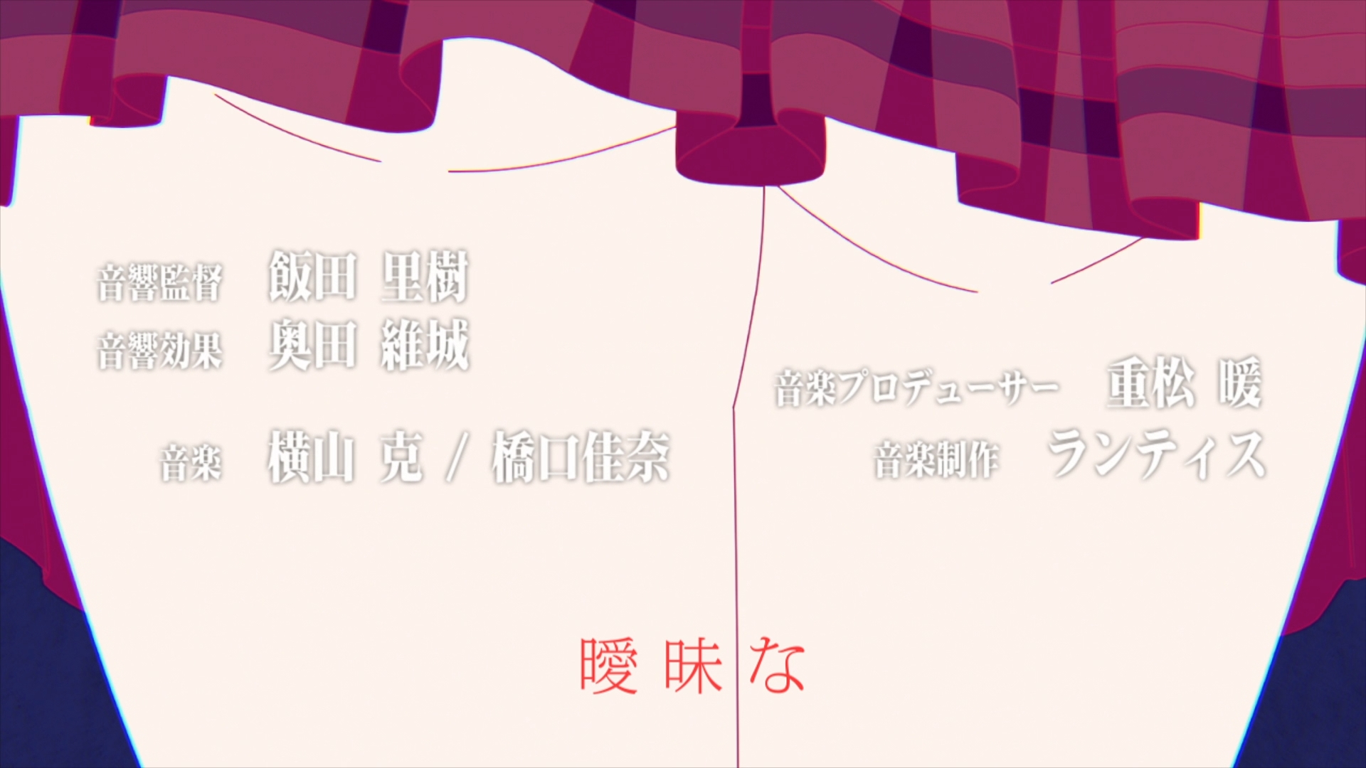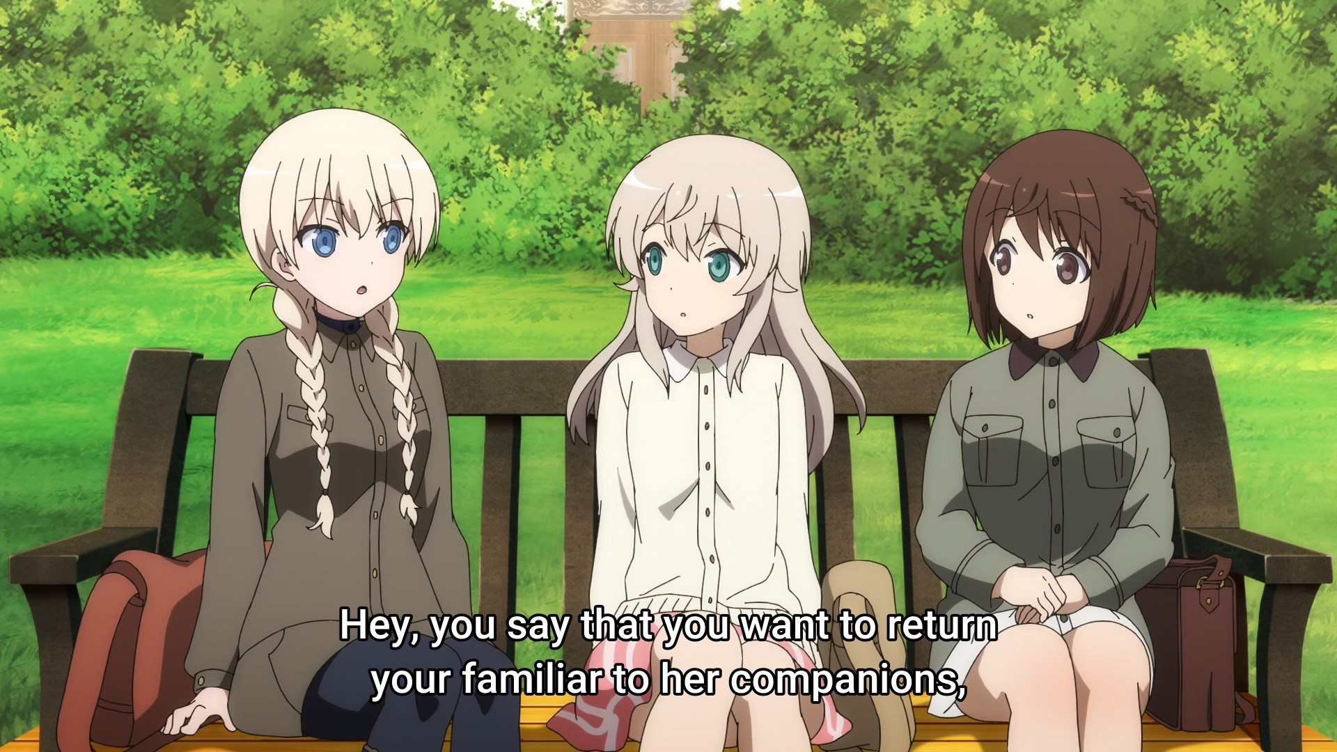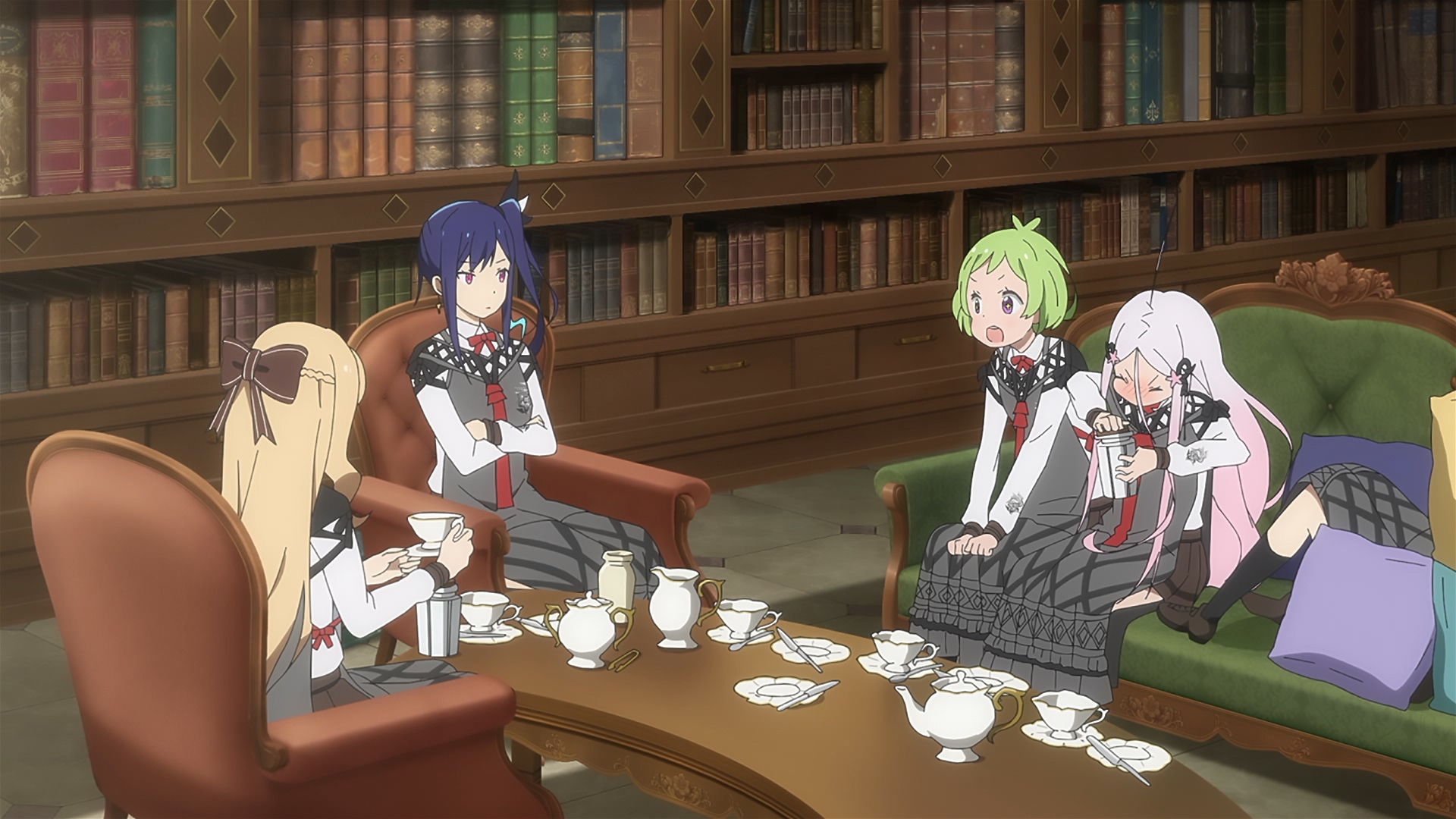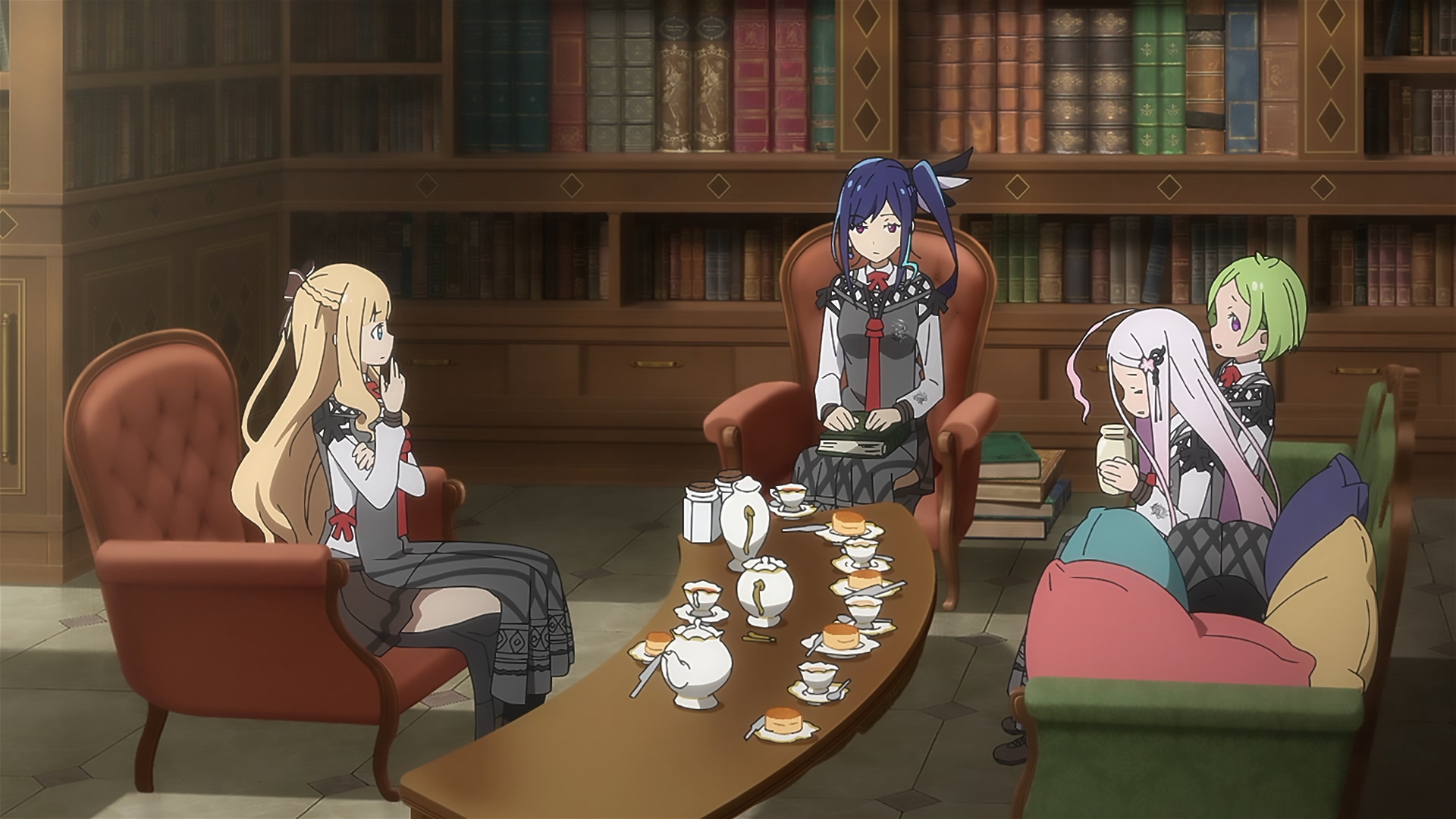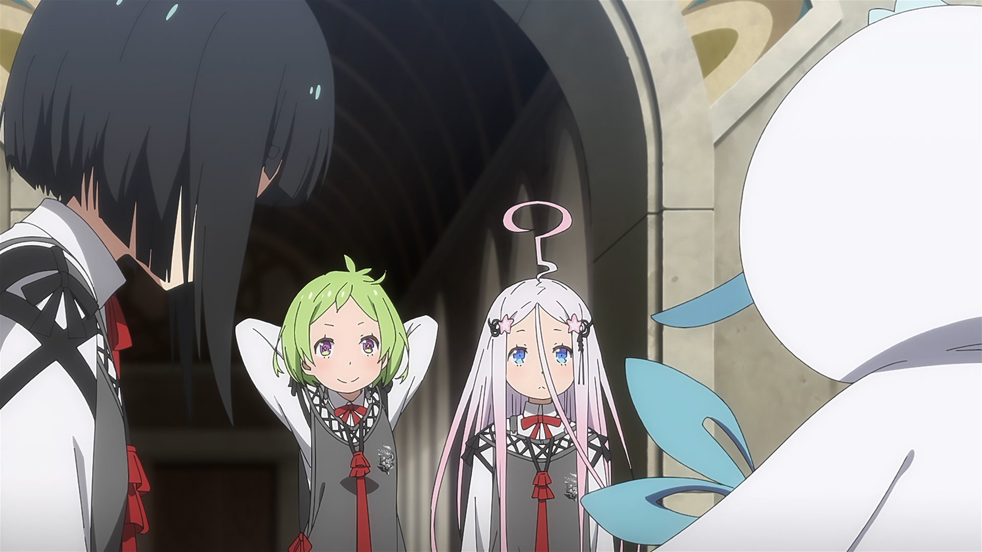 Ну миленько, в первом эпизоде знакомство(причем даже далеко не всех персонажей) и одна песенка. Фамильяры вносят элемент хаоса - хорошее дополнение. Мне изначально было интересно качество 3d тут, т.к. это то, с чем у меня больше всего проблем, но в первом эпизоде его что-то особо нет - только в эндинге показали и там оно ничего такое, перевариваемое. Трусов нет. Прям вообще - антипантишотные заслоны на юбках даже.