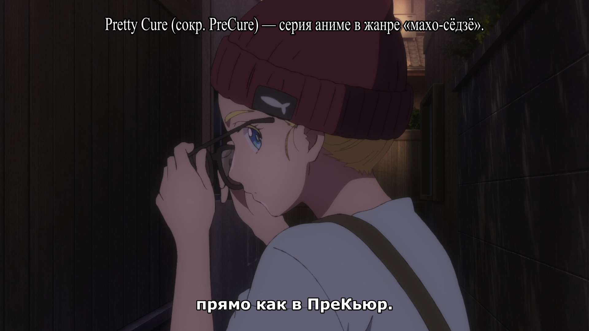 Гендерфлип. Девочка бегает за мальчиком по слоям дополненной реальности. По первому эпизоду особо не понятно ничего, кроме того что есть злая ведьма которая наблюдает за всеми.