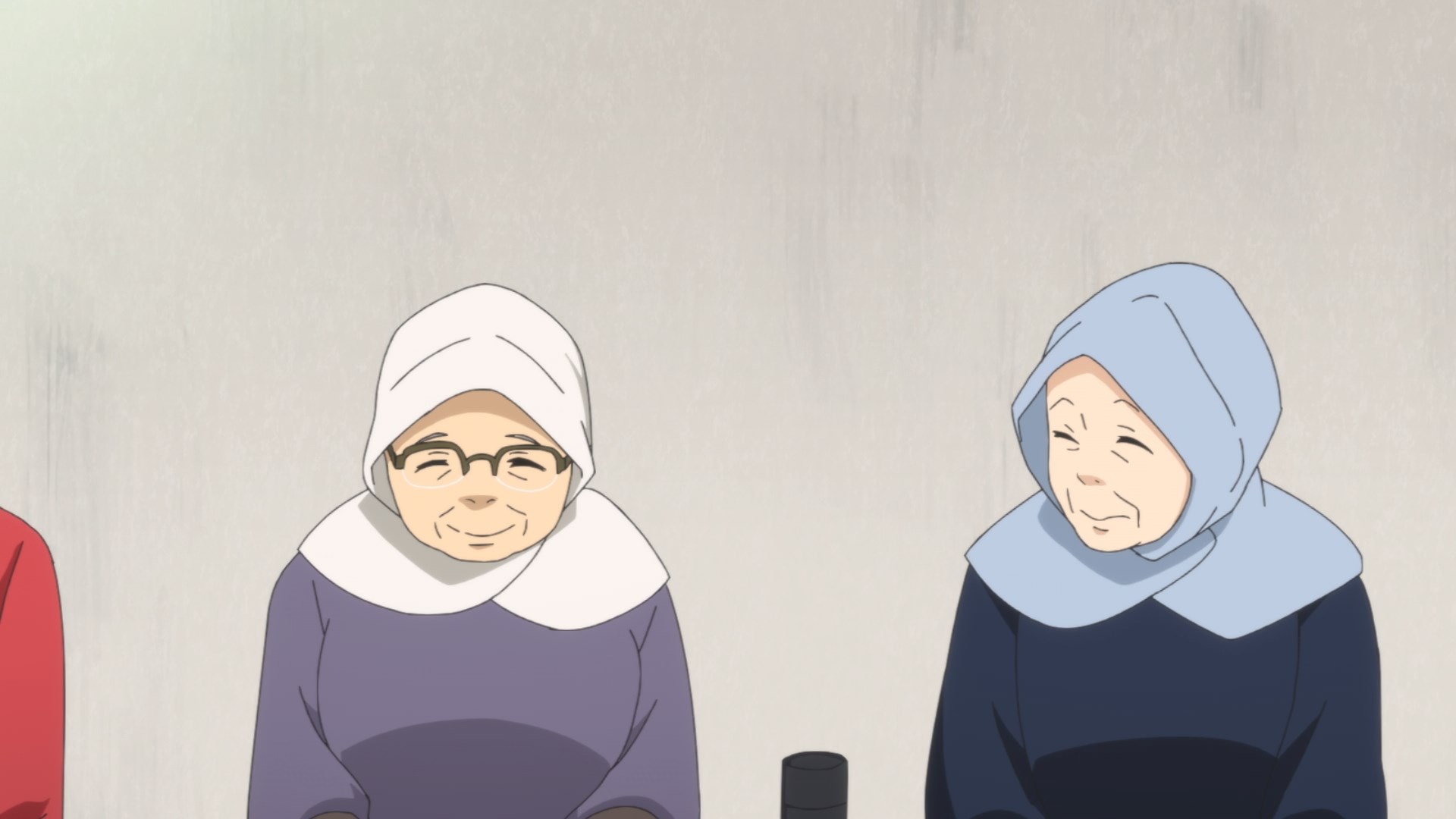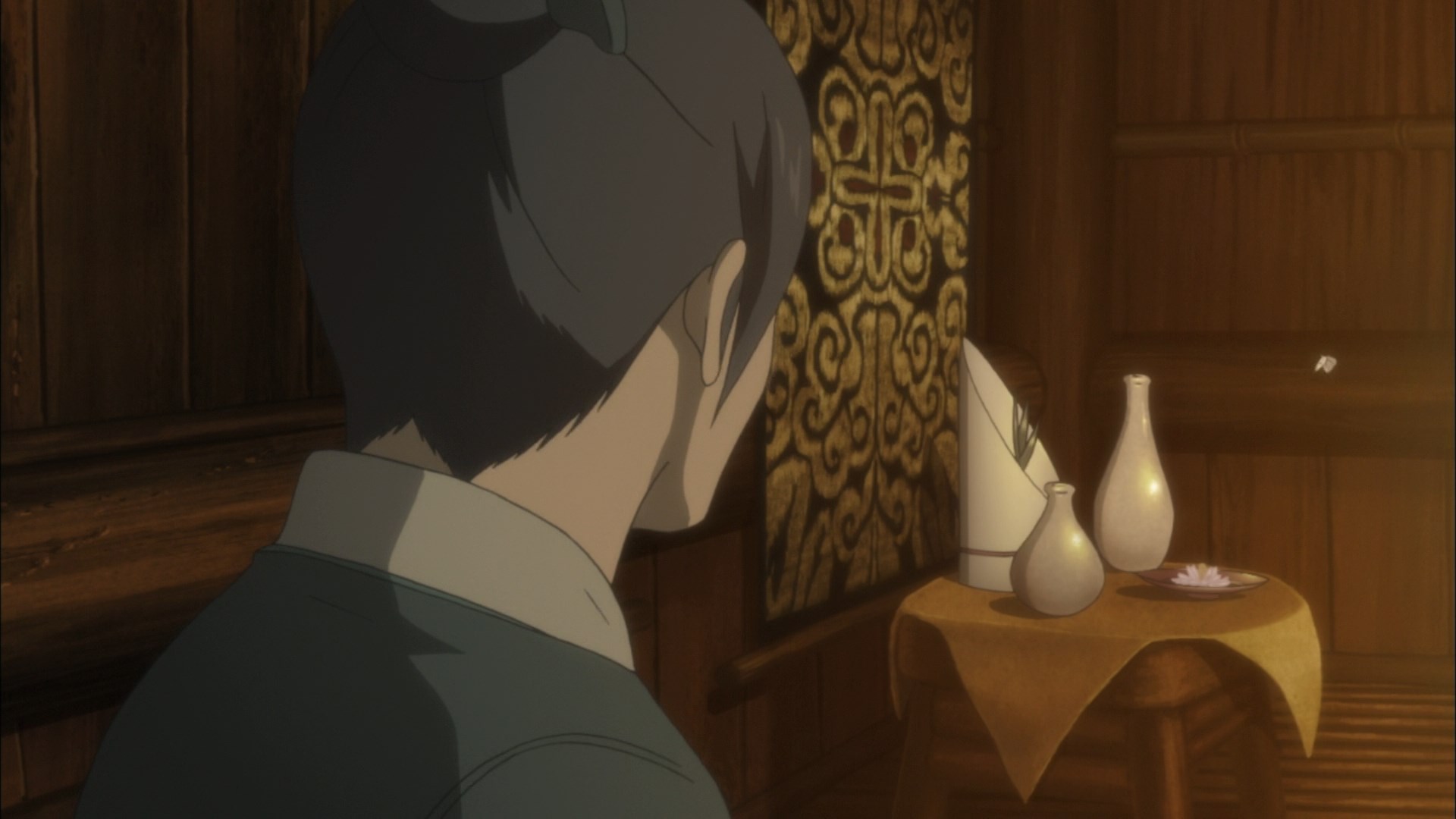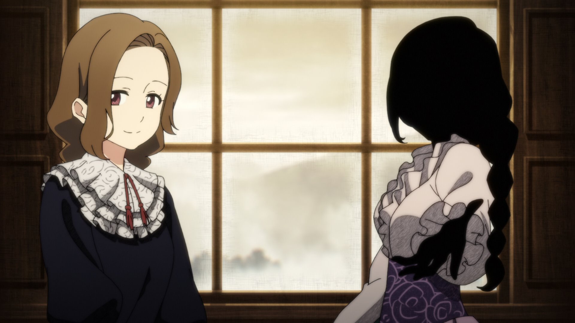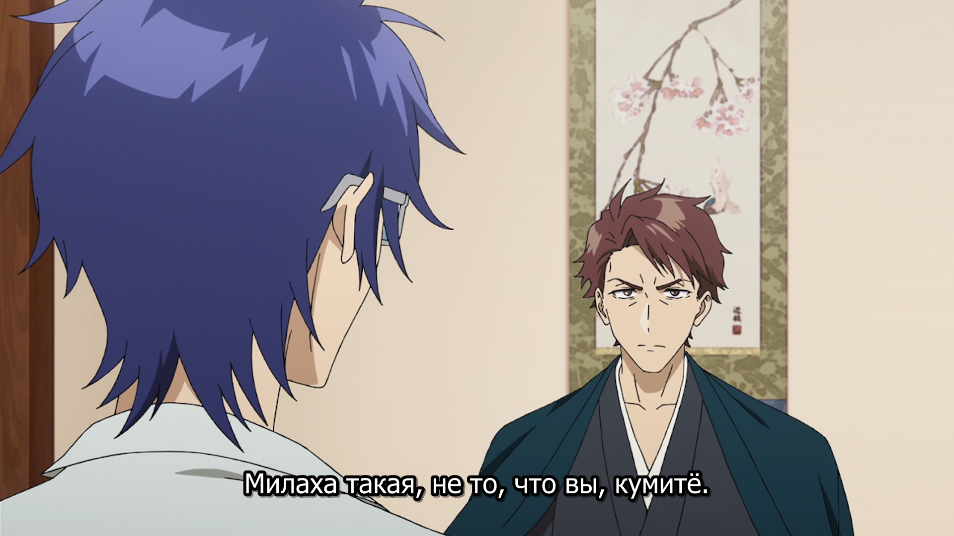 Мне все это немного напоминает гаккогураши по атмосфере. В том плане, что тут тоже традиционный камерный ияшикей слайсик оттеняется трагическими событиями во внешнем мире, добавляя перчинку тревожности. Впрочем пока не понятно как далеко в этом направлении они собираются пойти - не похоже, что далеко, судя по этому эпизоду.