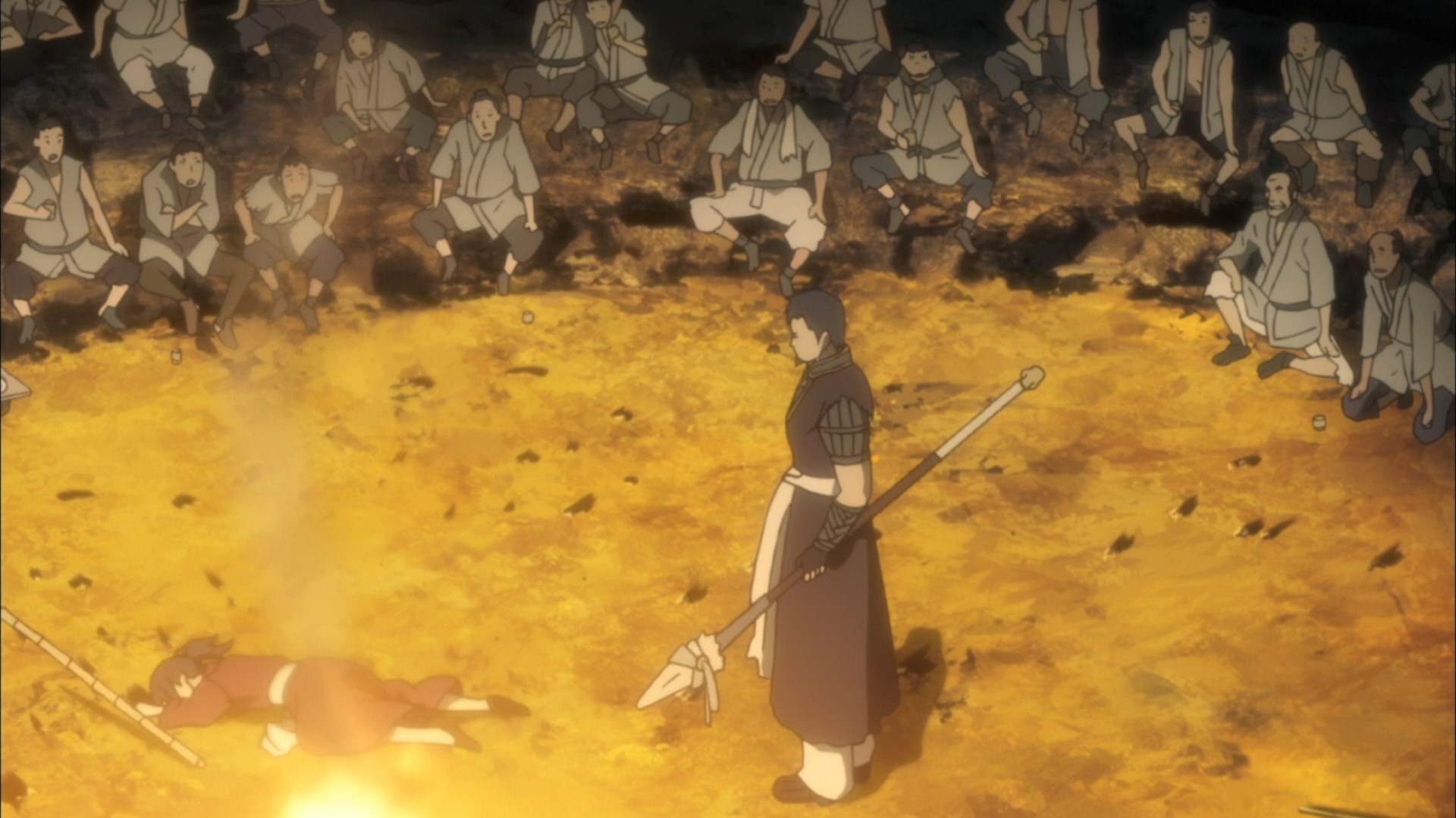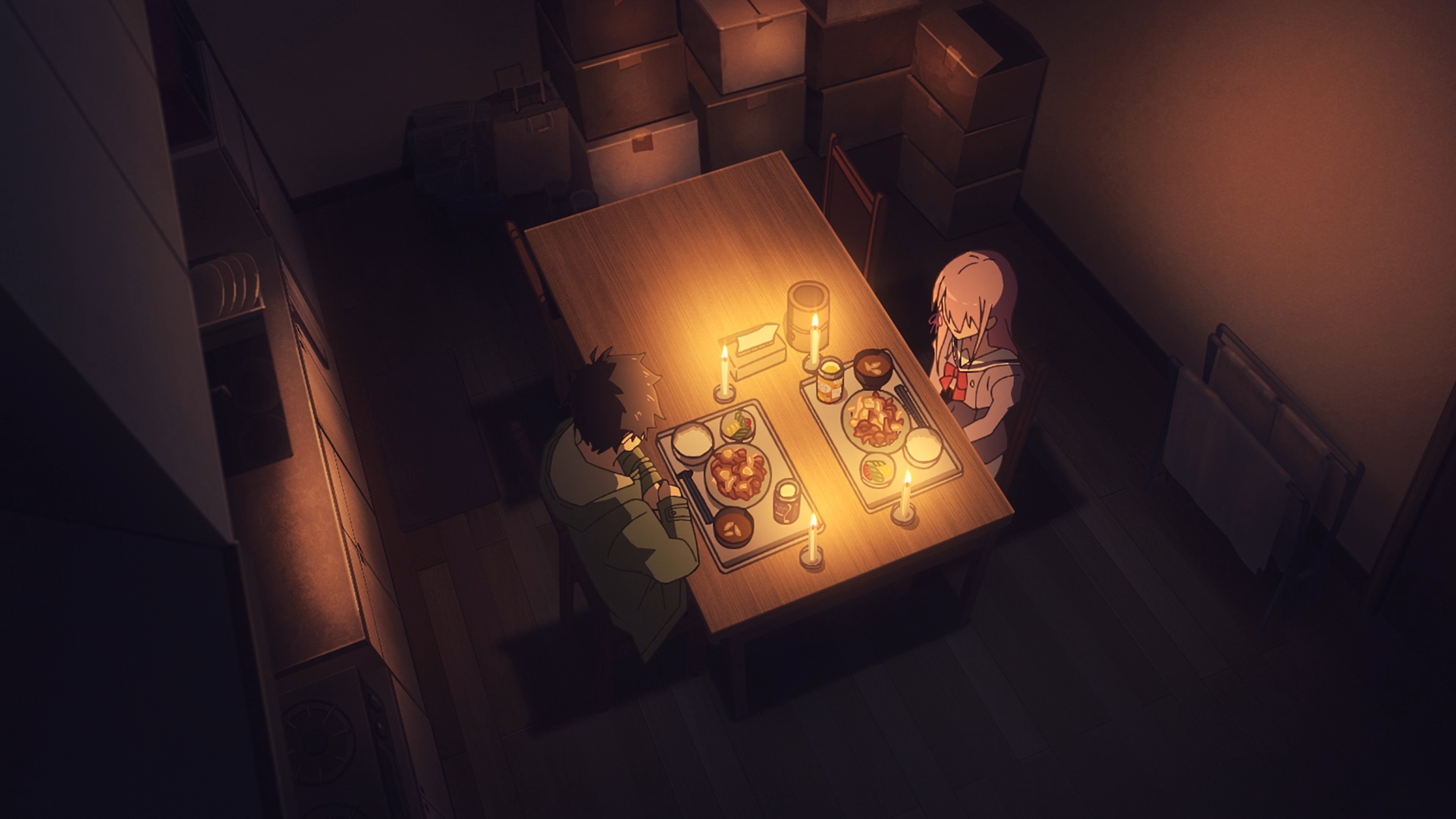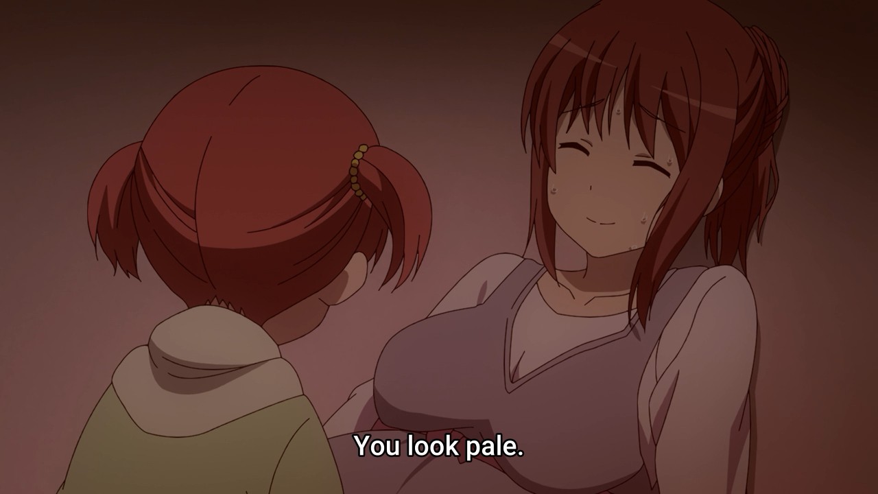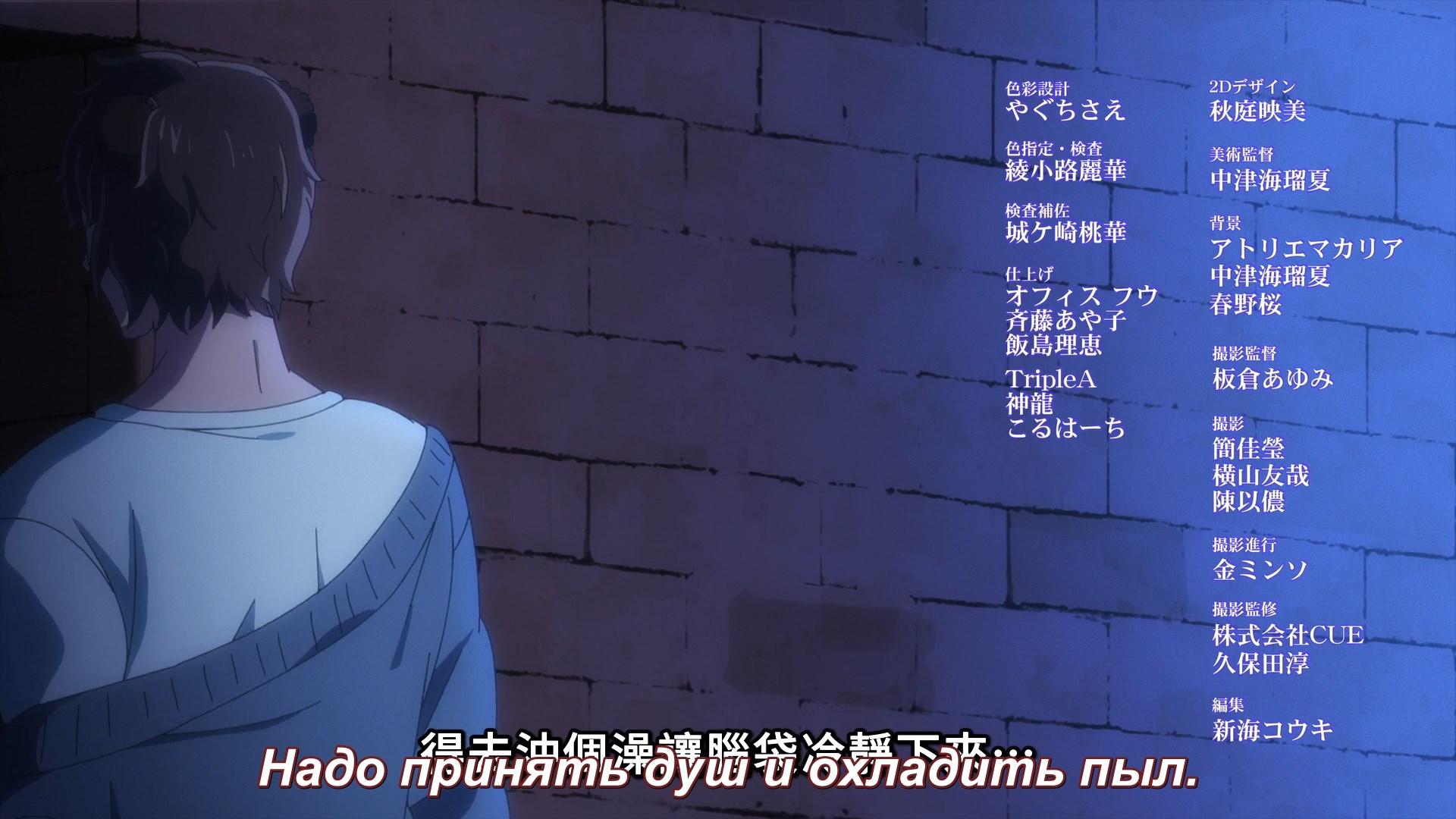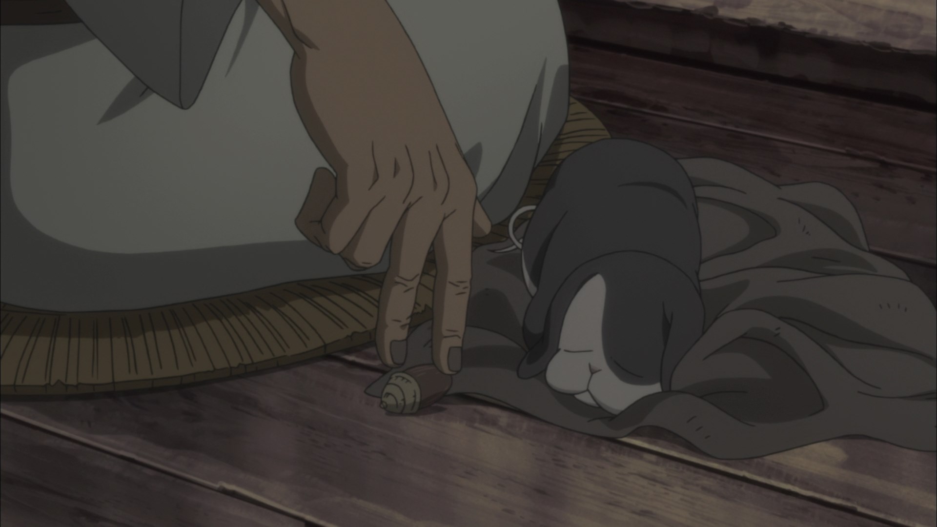 Мне все это немного напоминает гаккогураши по атмосфере. В том плане, что тут тоже традиционный камерный ияшикей слайсик оттеняется трагическими событиями во внешнем мире, добавляя перчинку тревожности. Впрочем пока не понятно как далеко в этом направлении они собираются пойти - не похоже, что далеко, судя по этому эпизоду.
