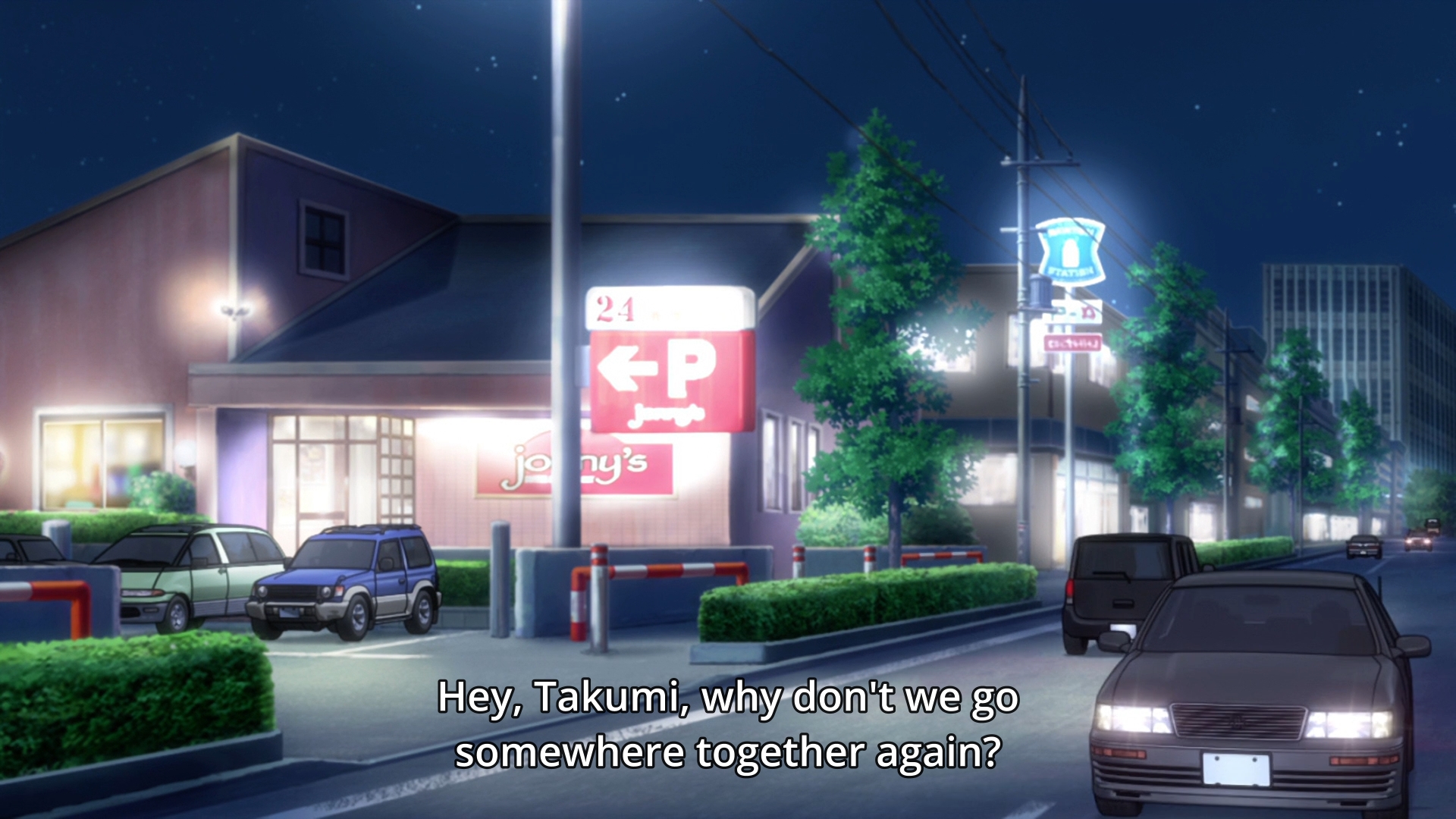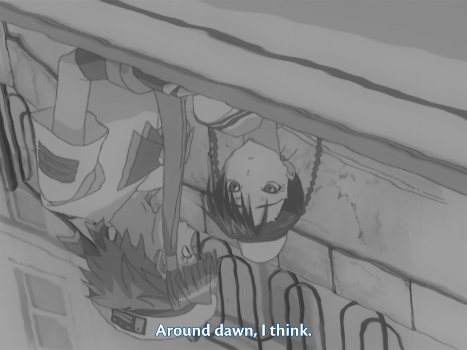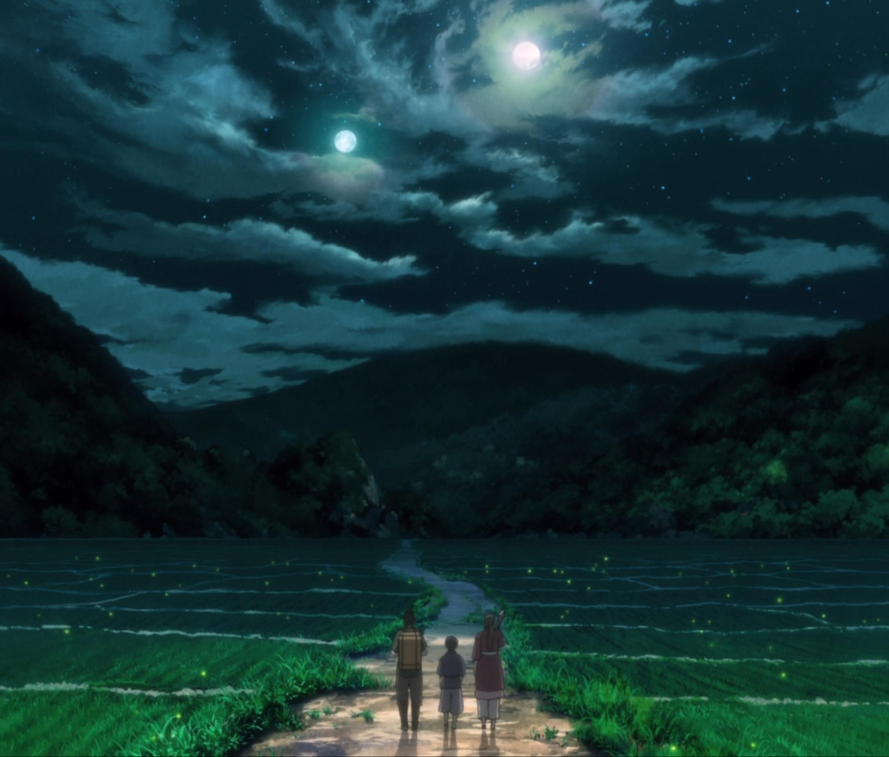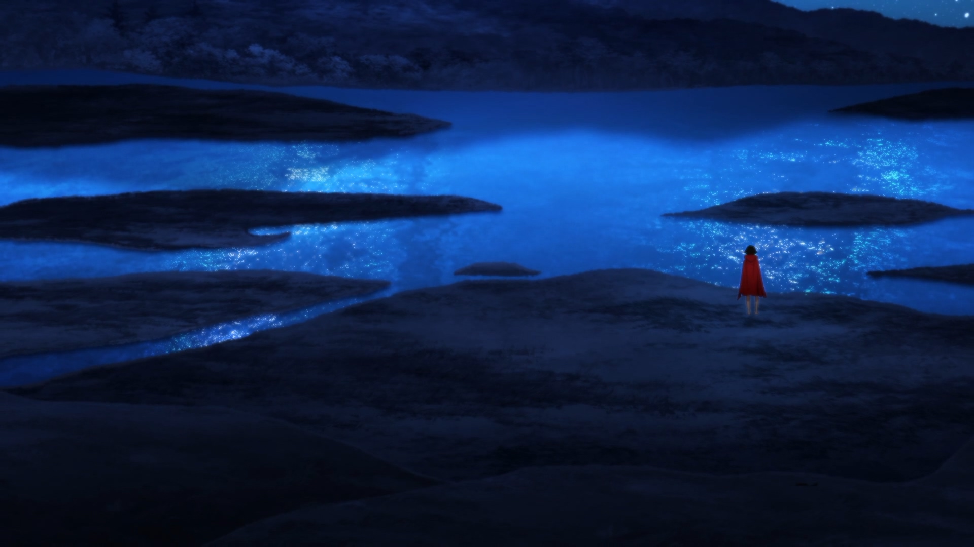 Сочная картинка, даже жалко, что не скриншотю. Показан контраст между цветастой ночью и серым угрюмым днём. Анимация и рисовка на высшем уровне.