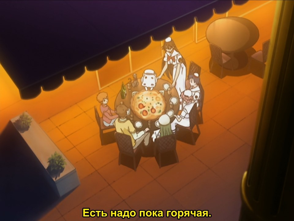 Что то Итамура тут пережимает с "лимитированной анимацией". Вот такие кадры по 5-6 секунд - это слишком, особенно такие как последний, который то и сам по себе не особо детальный и не интересный - нет никакого резона задерживаться на нем на 5 секунд, кроме того, что тебе эти 5 секунд нужно чем то занять. Серии даже весят мало - эта раздача от коми еще и относительно тяжелая - другие и того меньше.