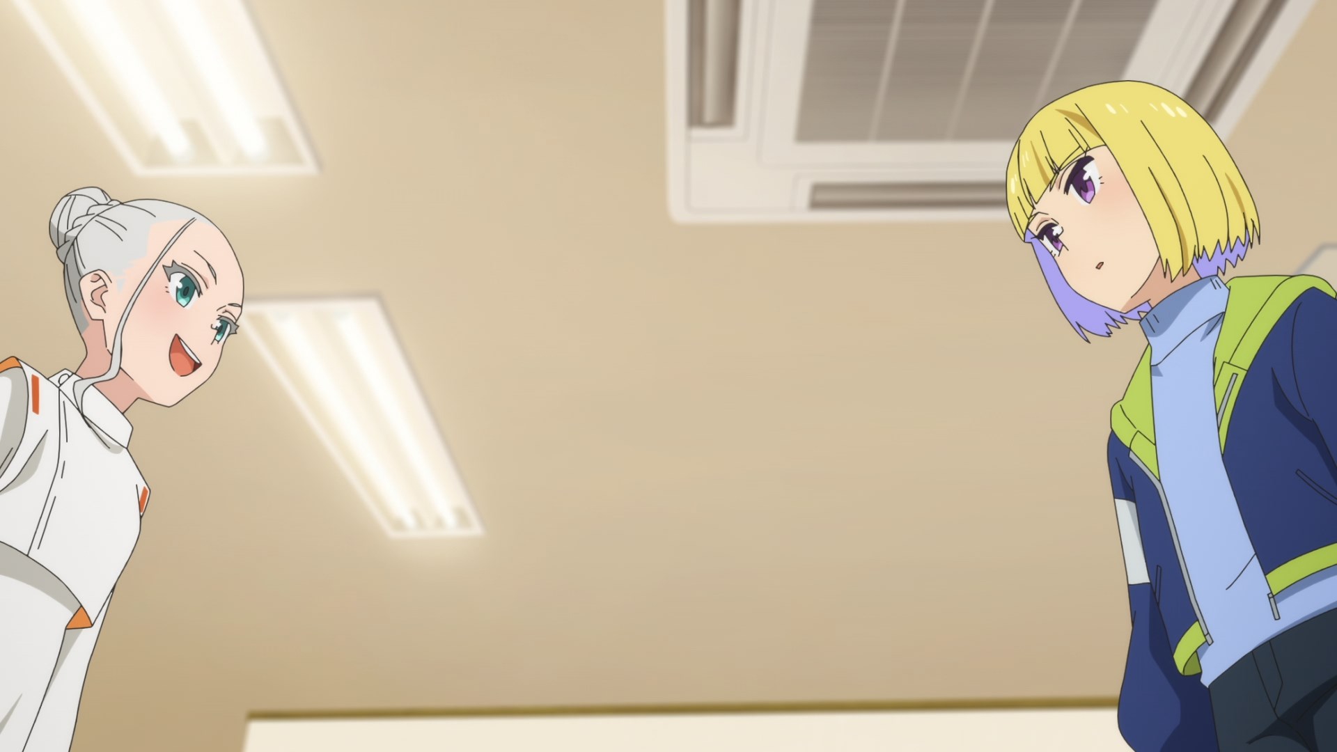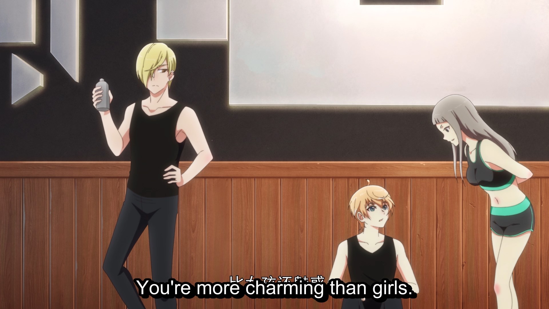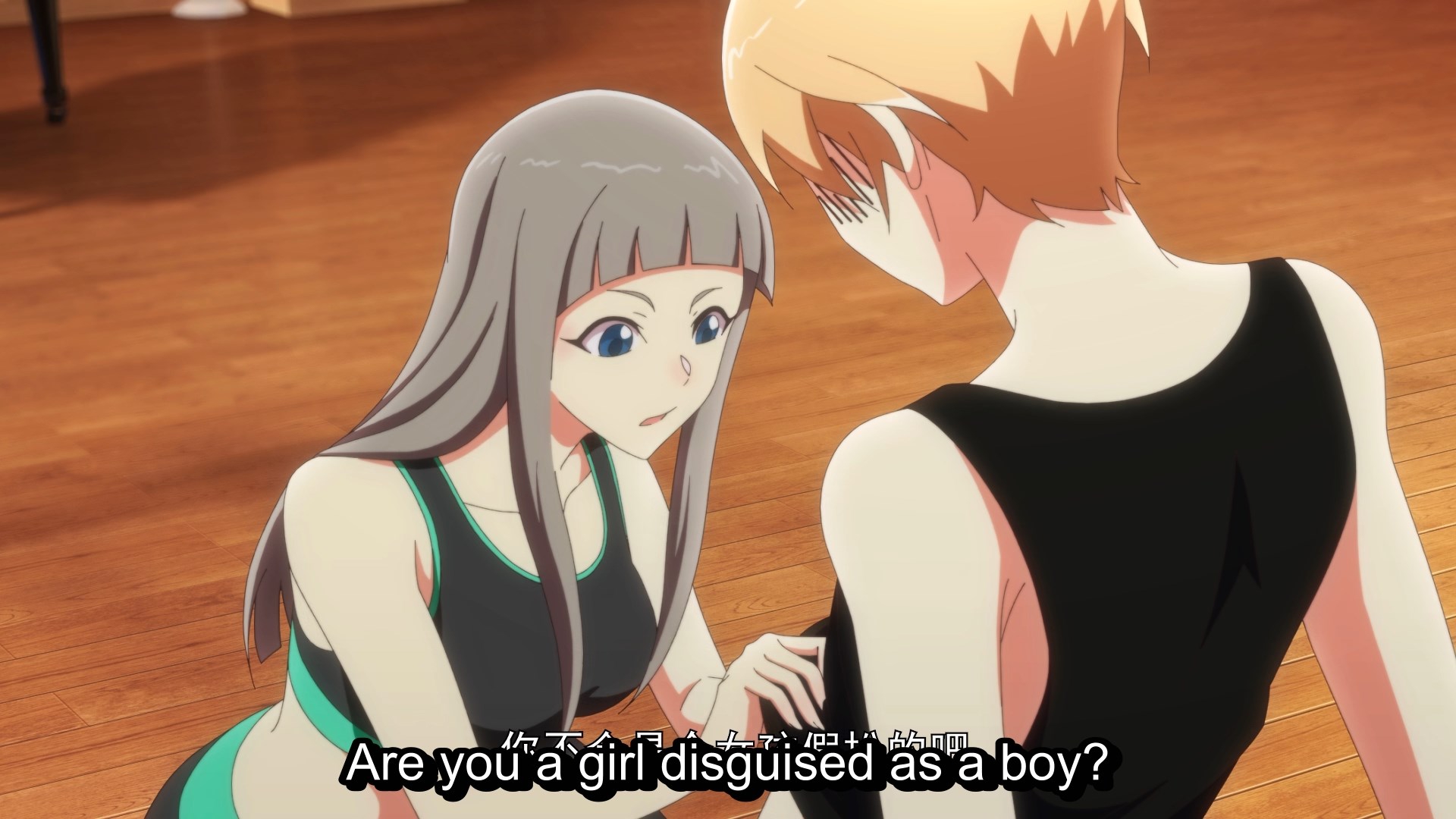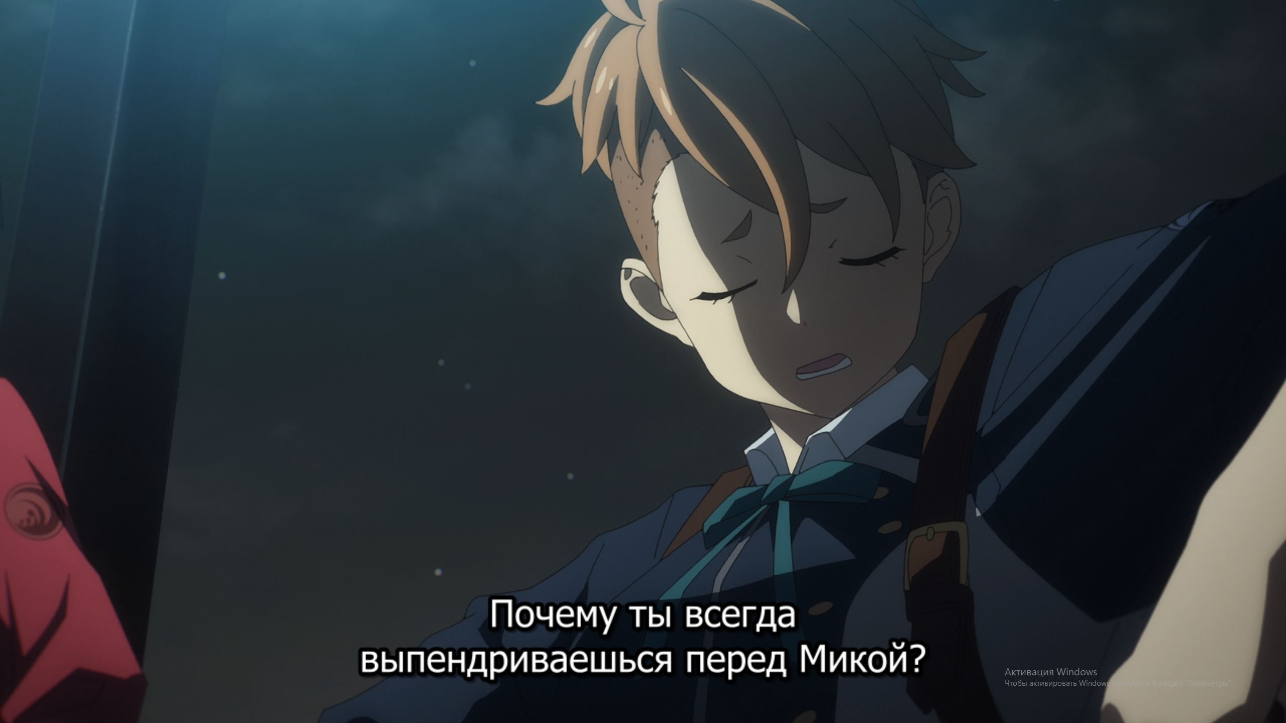 В опенинге наших девок в кэжуэл-стиле показывают. Аниме так приучило к форме, что подобные наряды у нях прям заставляют сердце биться чаще. Поэтому вдвойне преступно, что я вынужден выцеплять жалкие кадры вместо полноценного любования.