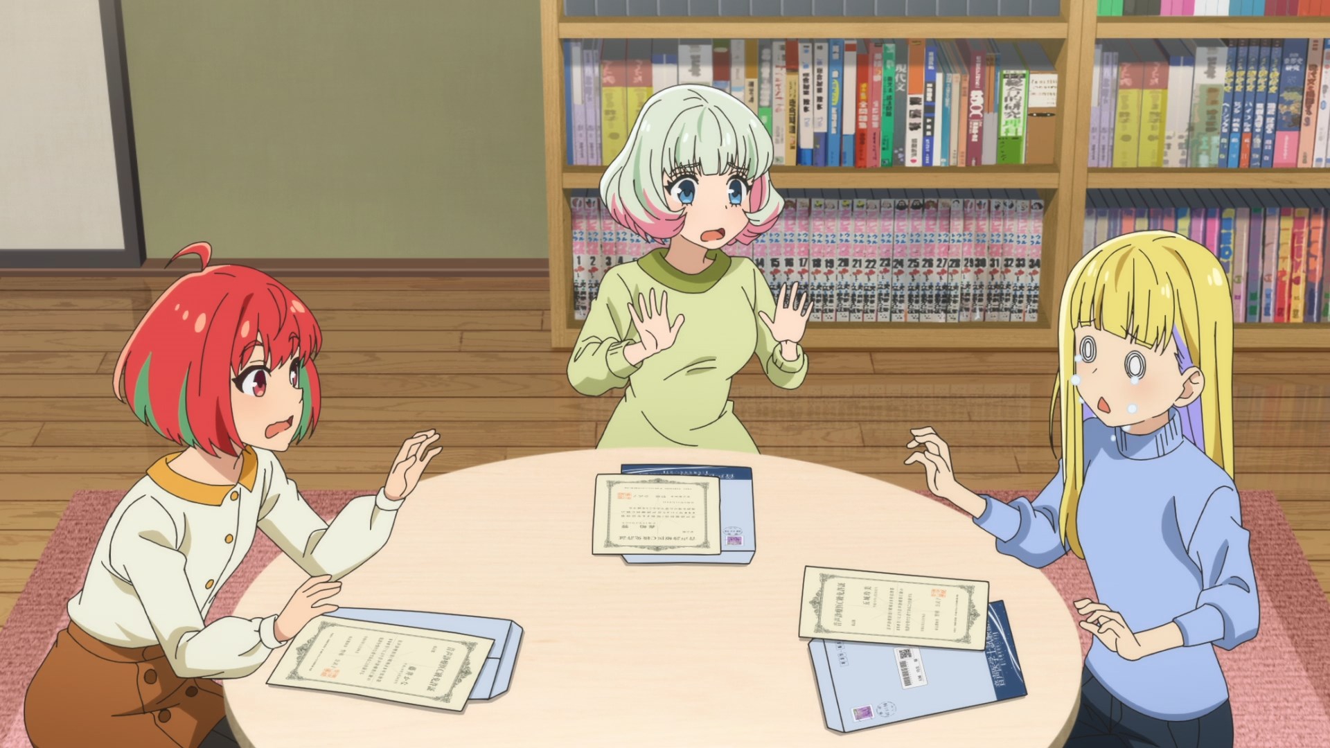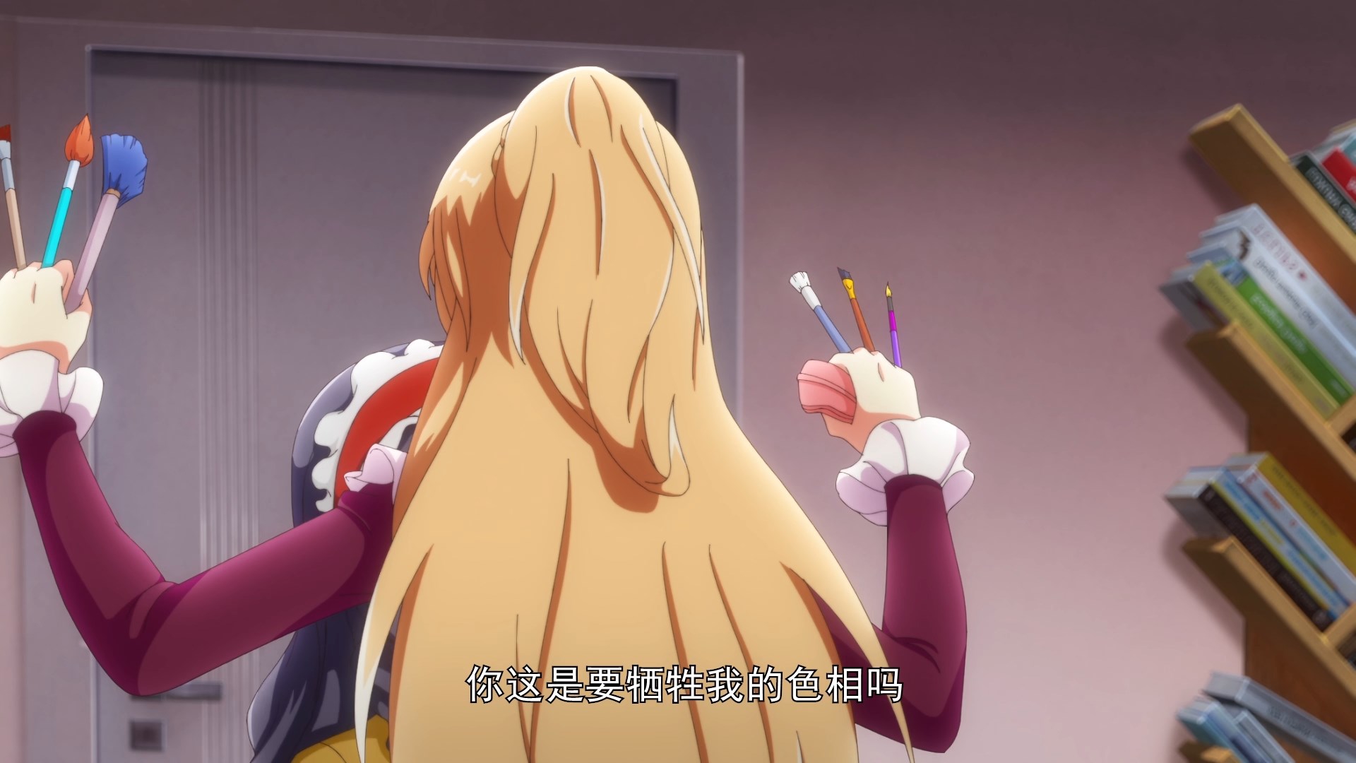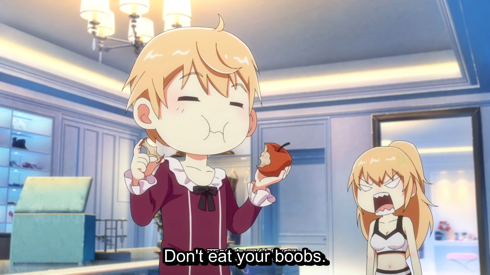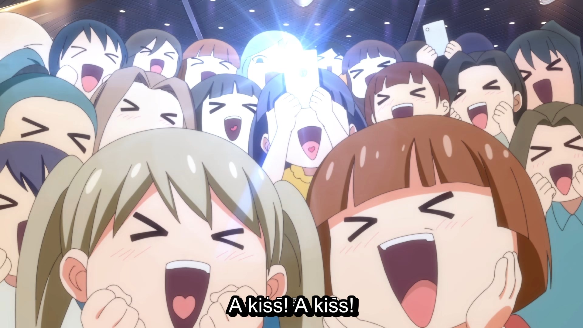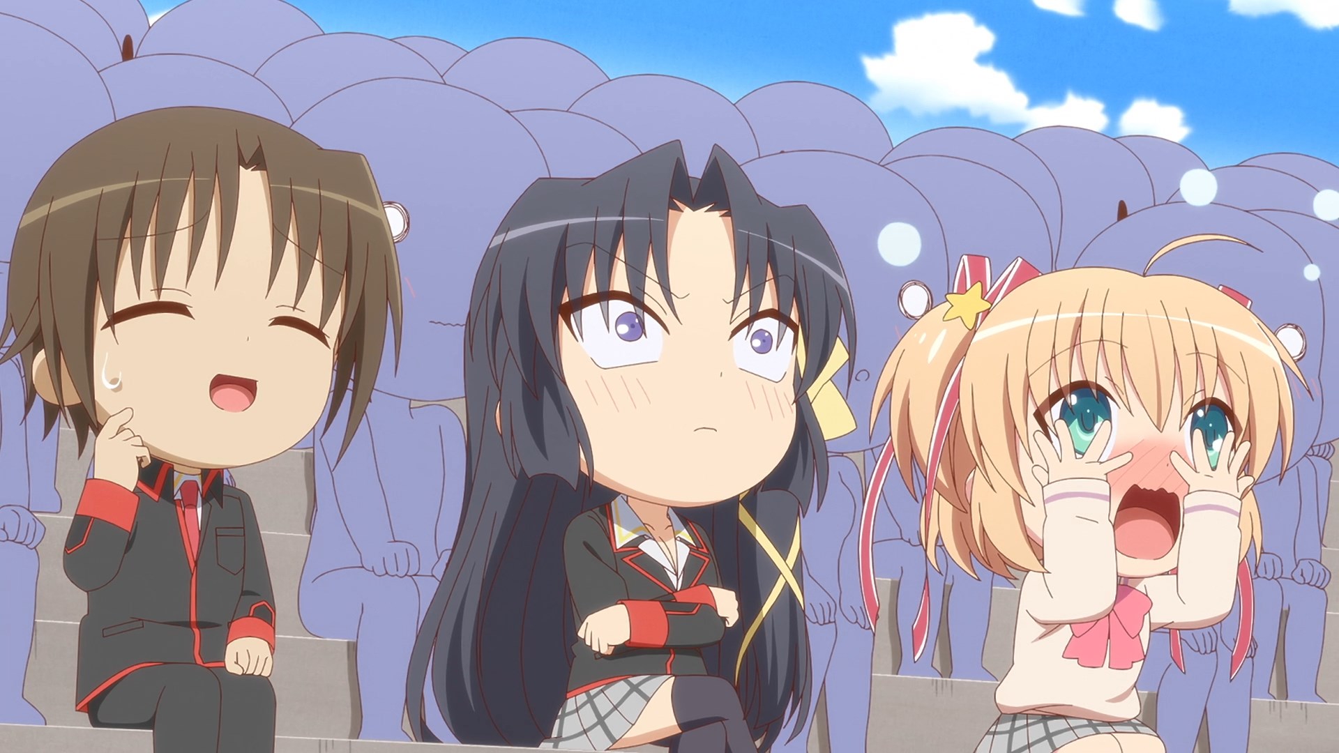В опенинге наших девок в кэжуэл-стиле показывают. Аниме так приучило к форме, что подобные наряды у нях прям заставляют сердце биться чаще. Поэтому вдвойне преступно, что я вынужден выцеплять жалкие кадры вместо полноценного любования.