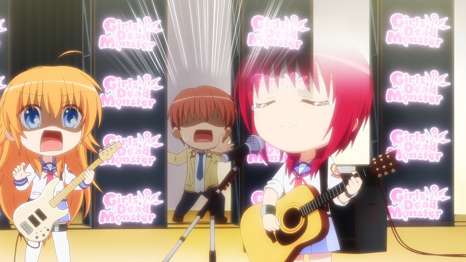 Превосходно. Тут и темку подобрали очень интересную, причем даже попытались подвести под это все некую научную основу, что, мол, под каждую болезнь и пациента нужна определенная песня, исполненная определенным образом с задействованием определенных звуковых частот... короче, у нас тут сириус бизнес, а не какие-нибудь пляски перед жирными отакунами. Ну а дальше профессиональный рост, рабочие будни, бункасаи, турпоходы, душевные кризисы, вкусняшки с друзьяшками... на однообразие аниме уж точно не жалуется. Как и на отсутствие ярких героинь, ведь все девушки отлично вписаны в повествование, каждая находится на своем месте и вносит свой вклад в великолепие сериала. А уж ихние дружеские пикировочки... Нет такого, что вот есть, к примеру, Акари, а есть все остальные. Неее, девы абсолютно равнозначны. Огромное количество песен, причем реально неплохих, и, главное, исполненных в нужное время и в нужном месте. Особенно понравилось, когда их переклинило после экзамена, и они несколько дней общались исключительно пением... было очень забавно, особенно на контрасте со всеми остальными персонажами. Отдельно отмечу прекрасные голоса наших героинь, без которых магия была бы неполной. Ну и отличнейшие визуализации самого процесса исцеления, идеально синхронизированные с текстами песен. Здесь, конечно же, низкий поклон режиссеру. Разве что драматические моменты бывает не дожимают, как например в серии с Рейной и горничной, когда весь эмоциональный накал прощания был по суть нивелирован ее скорым возвращением. Да и ту же сцену получения лицензии можно было бы сделать поярче... Ну и всего 12 серий... это преступно мало. Даешь второй сезон! И овашки! И пару мувиков!