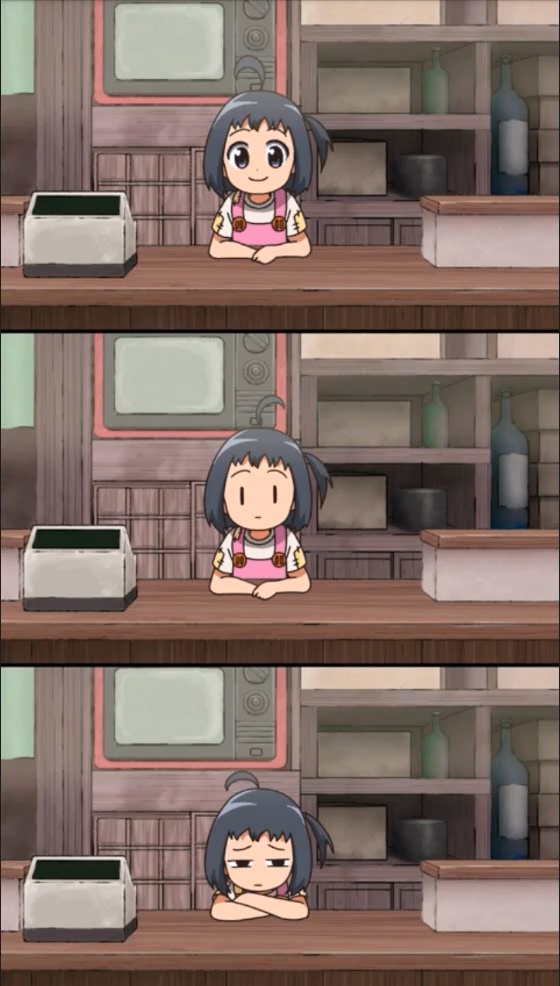 А, лол, нет, мелкая просто сразу поняла, что ей пиздец, вот и не парилась. Чёт уже не первый раз попадаю в глупую ситуацию, когда среакчу сразу по месту, вместо того, чтоб досмотреть хотя бы сцену. Поработаю над этим.