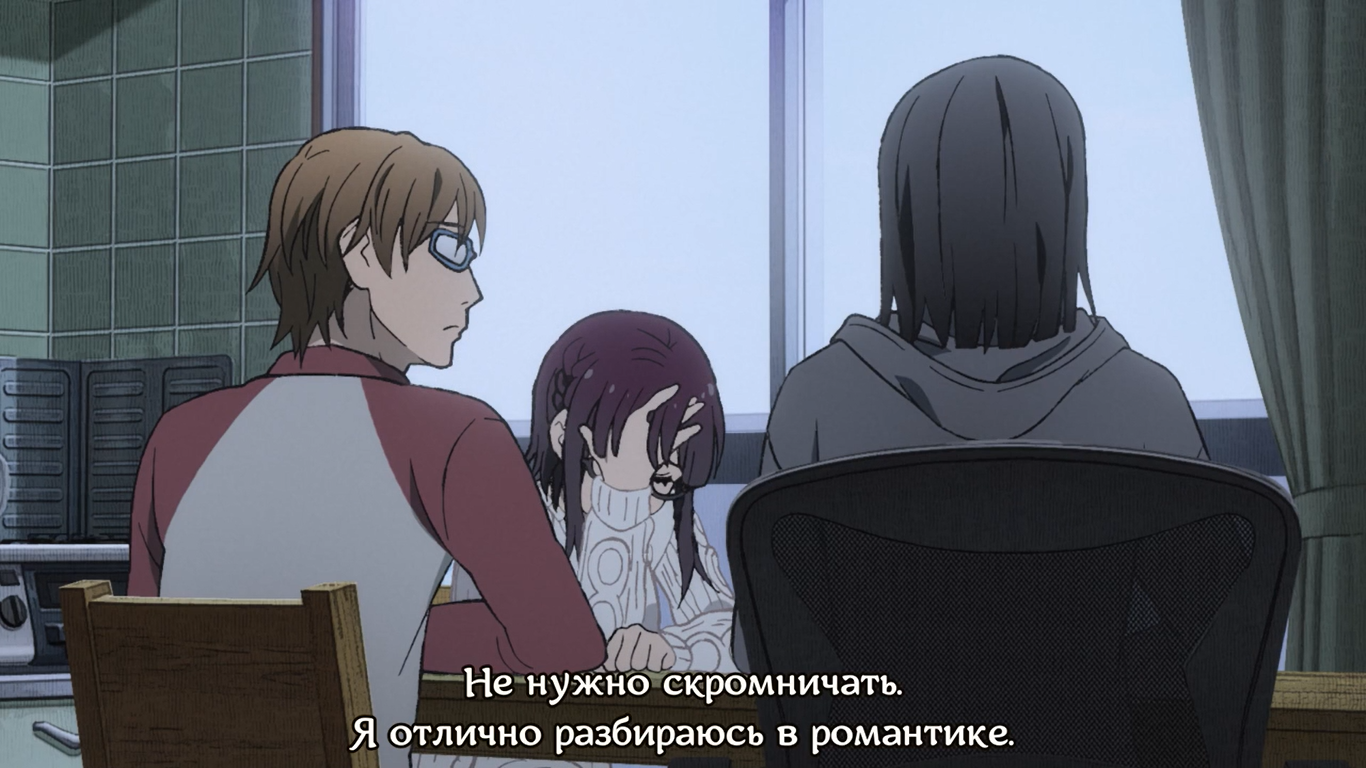 Мне, кстати, нравится, что она показана рукодельницей. Действительно ведь обычное для девочки увлечение, но в аниме, когда нужно показать одинокое занятие замкнутой девочки - это всегда книга.