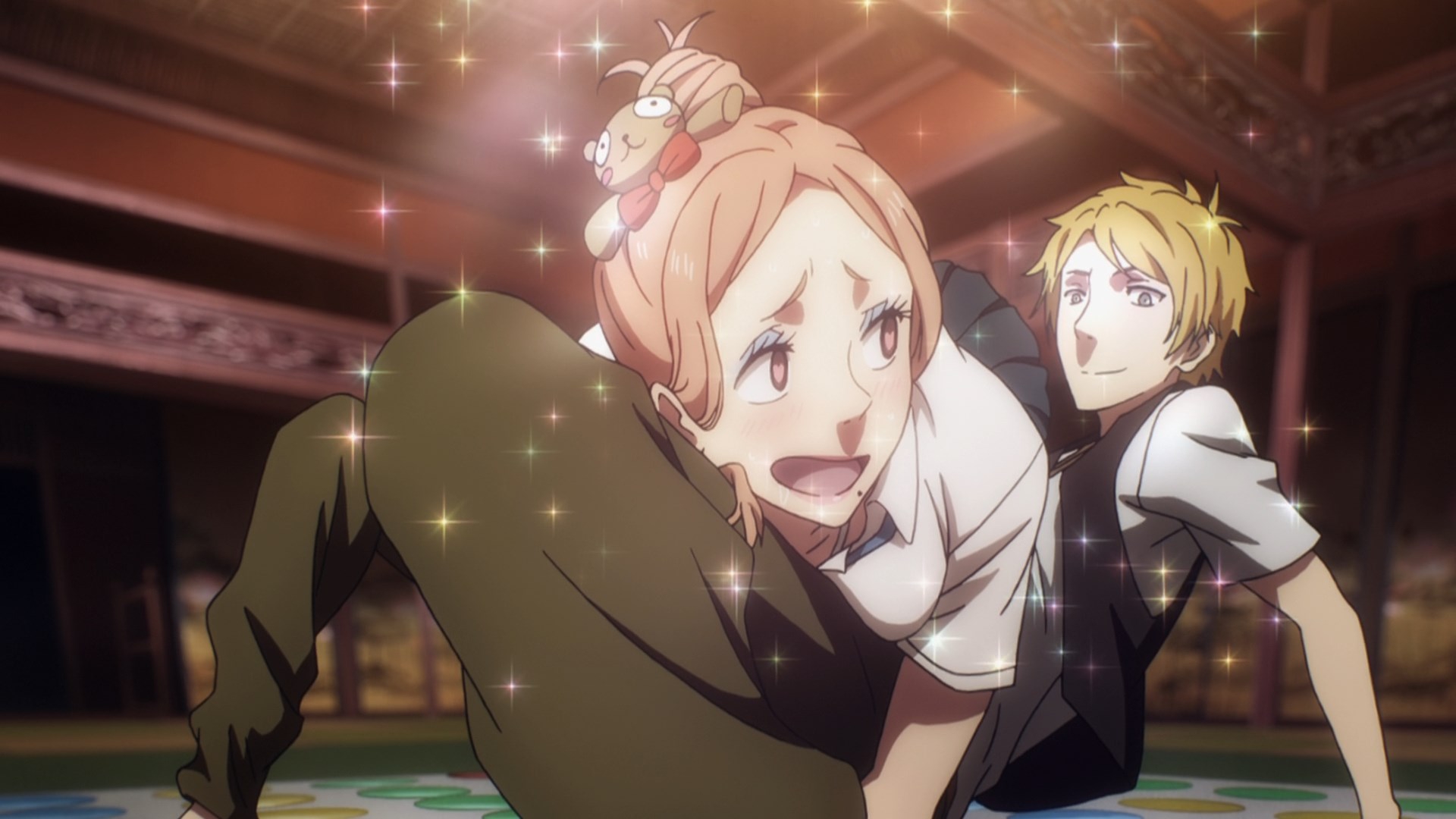 Слишком много девок. Их еще и накидывают каждую серию, иногда даже по двое, что вообще не оставляет времени для хоть какого-то их раскрытия и развития. Так-то они миленькие, но возложенных повествованием задач за малым исключением не выполняют. Даже с самым важным аспектом - романтотой с гошуджином, все очень кисло, поскольку работают в данном направлении только три героини: зайка, которая хочет размножаться, попугайчик, которая чуть не сдалась под напором левого икемена, что автоматически выводит ее из пула достойных, и рыбка, которая ямато-надесико, а значит априори лучшая девочка. Остальные же либо дети (а с ними каши не сваришь), либо пассивки, либо шлюхи, текущие от первого встречного бисенена. Выделю разве что хомячка как главную няшность сериала. При этом фансервис отсутствует, с милыми вещами в исполнении героинь тоже напряженка, зато всю первую половину сериала они тупо срутся. Потом еще сюжета с драчками вжарили, и чет стало совсем никак.5/10 в овашках, кстати, авторы исправились