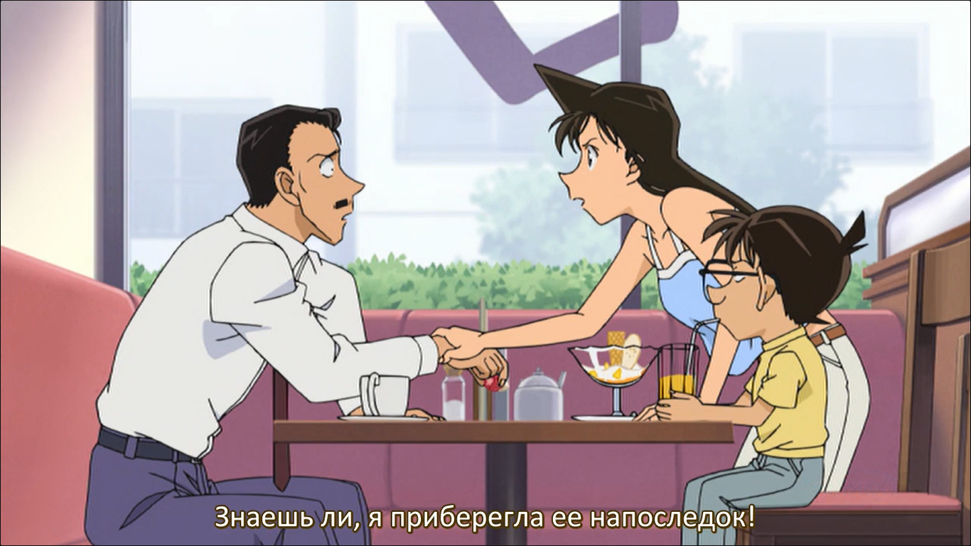 И сюжетка, как назло, пошла кринжовая. Конан сходу сказал этим дебилам, что они связались с преступниками, но, вместо вызова полиции, они решили убедиться во всём лично. Даже Хайбара. Сколько раз Конан был неправ в выводах? Вопрос риторический. Смотрю, сгорая от стыда за них.