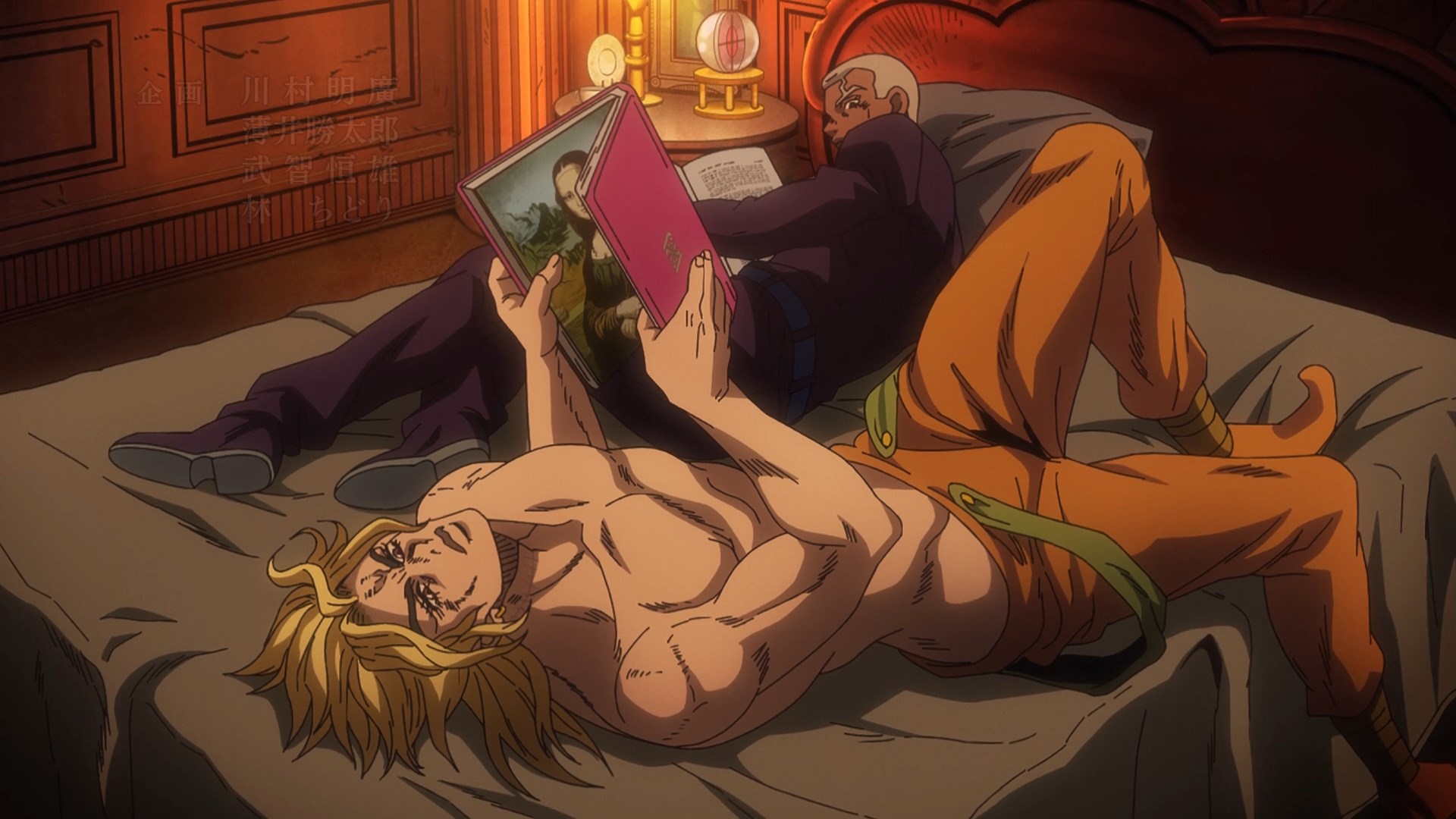 По итогу парт2 мало чем отличается от первого. Может увлекало чуть больше, но это субъективно всё. Флешбеков с Дио было много интересных. Да и остальные персонажи тоже раскрывались лучше, чем в первой части. Померли правда многие, а я даже слезинки не проронил. Помню когда Буччерати отъехал я прям ревел. Вот это конечно минус части. Драматизма не хватает. Ещё последняя серия подкачала и я окончательно передумал ставить оценку выше, чем парт1. 7/10
