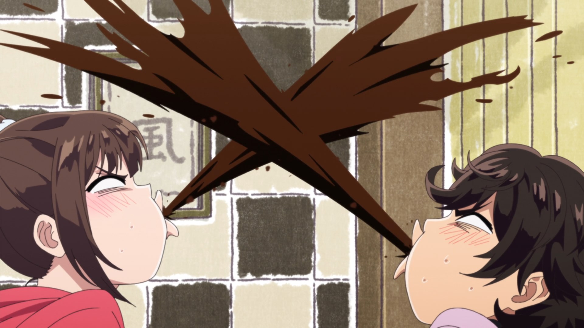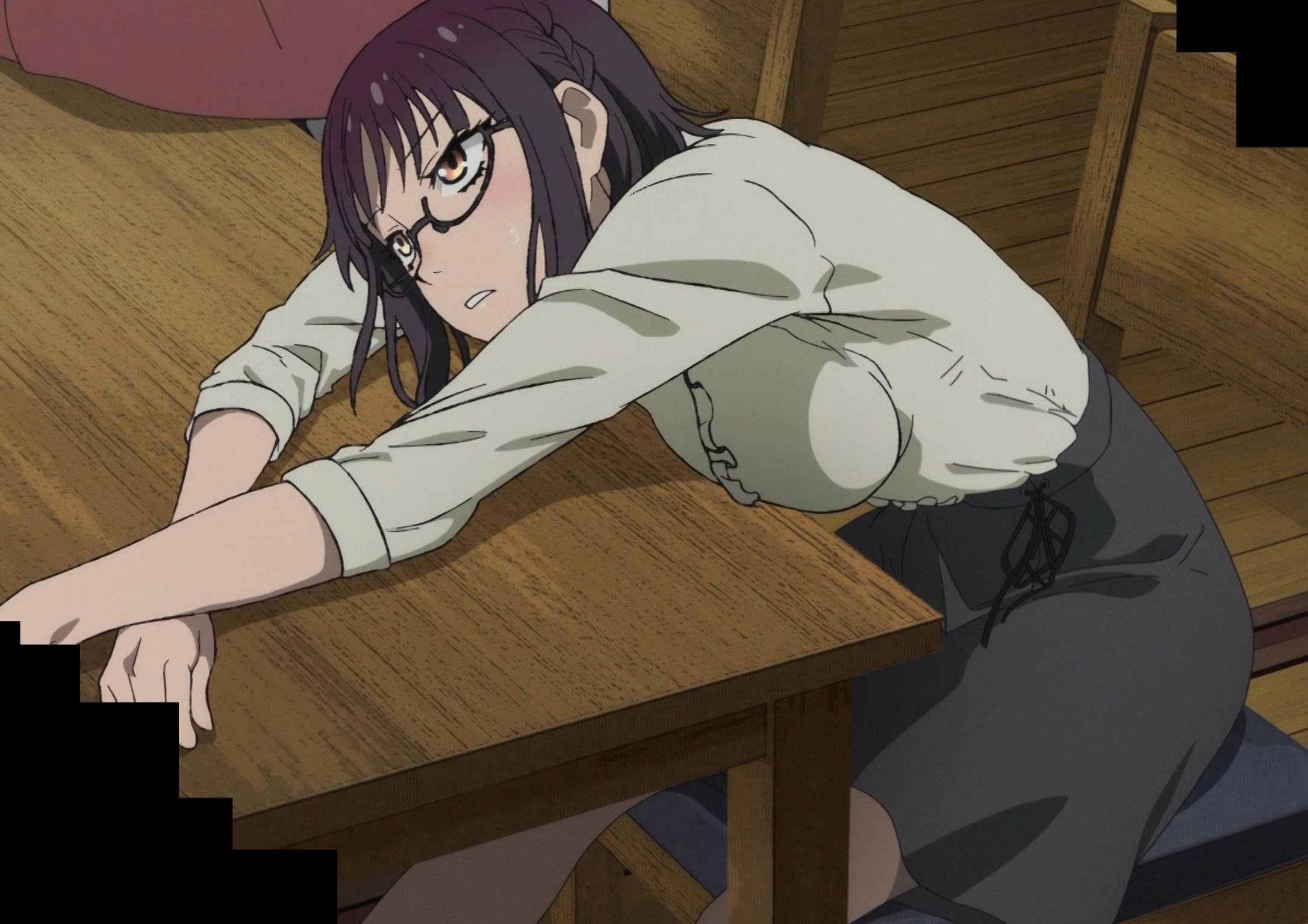 Зернистый графон, кстати, очень в тему. Тут как бы понятно, что тайтл очень дешёво выглядит, но, на удивление, подобный стиль не создаёт впечатление, будто я смотрю дешёвый хентай без хентая, скорее, наоборот, добавляет собственной аутентичности, попутно сглаживая бедность картинки. Не уверен, что на это рассчитывали при создании (а хотя хули бы и нет, им явно виднее, как дешёвое аниме лучше оформлять), но получилось куда лучше, чем изначально могло бы показаться.