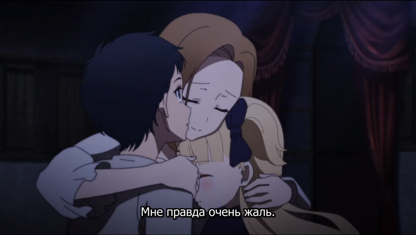 Долгожданная мной предыстория Боссуна. Больше половины просидел в слезах, до чего же классно сделали. История получилась грустнее, чем у Свитча, но финал в какой-то степени вышел даже светлый. Теперь мотивация каждого тимуровца стала понятна. Персонажи из прошлого, при том что им уделили так мало времени, отлично проработаны - гораздо лучше чем регулярно появляющиеся в сериале. Я не пожалел, что начал смотреть этот тайтл. Если ставить оценку только историям из прошлого - это будет что-то между 8 и 9. Нашел amv по этим трём сериям, но оно кривое и ужасно спойлерное. А вот песенка мне показалась как раз по атмосфере. https://www.youtube.com/watch?v=pxpLxb5jHO0