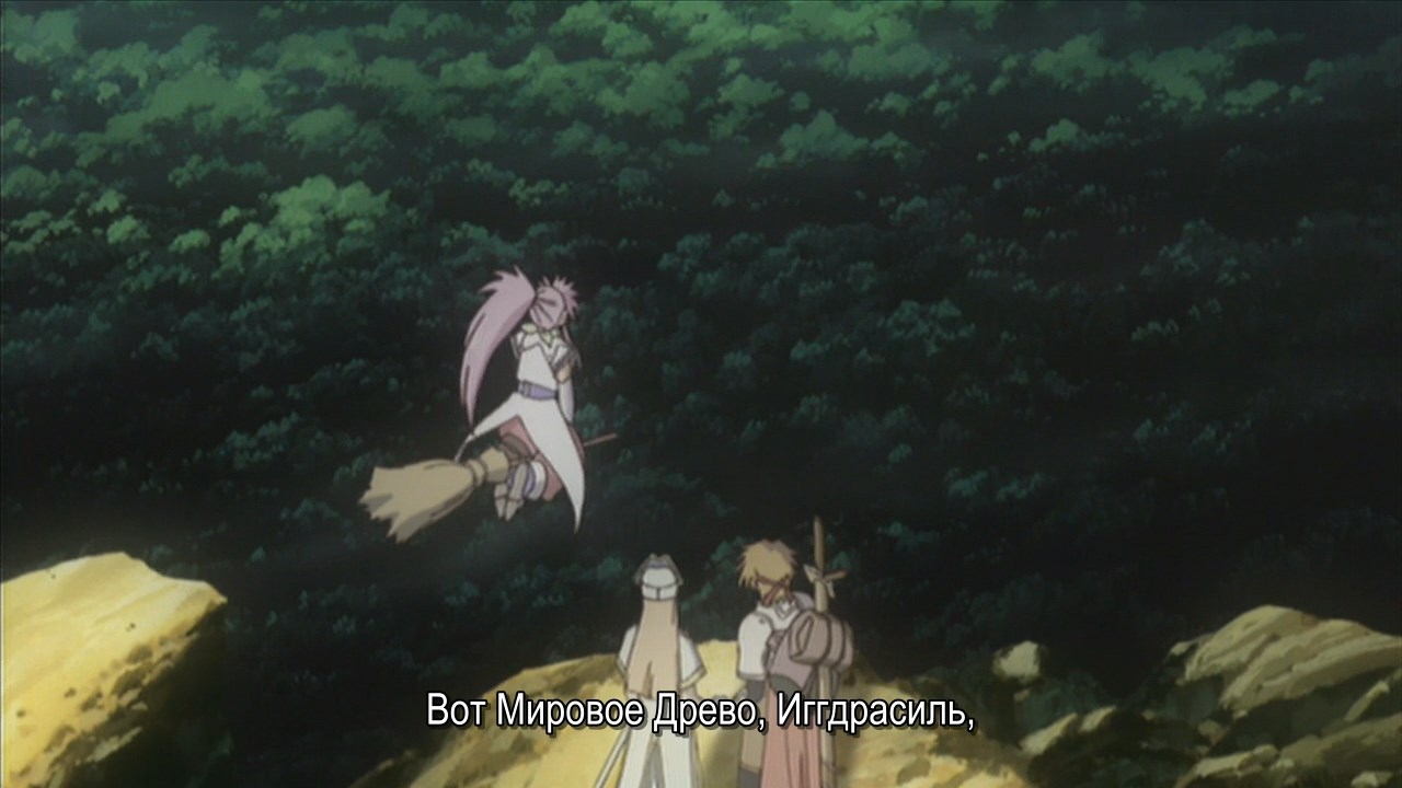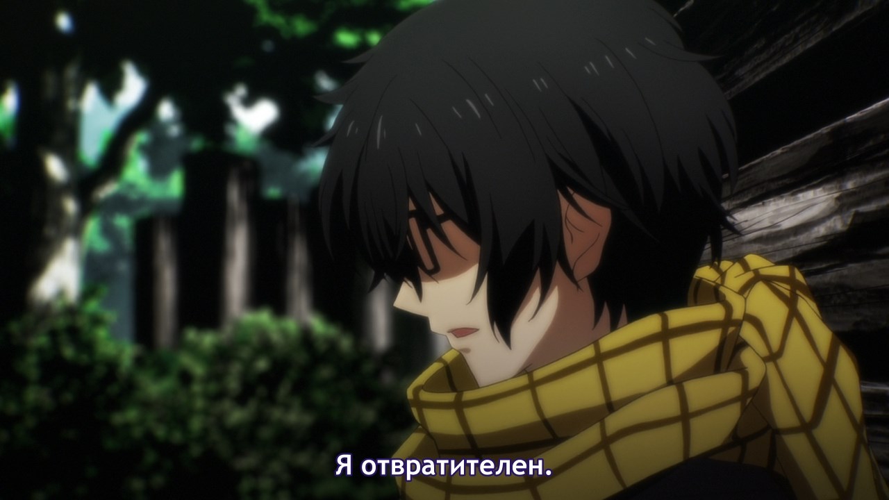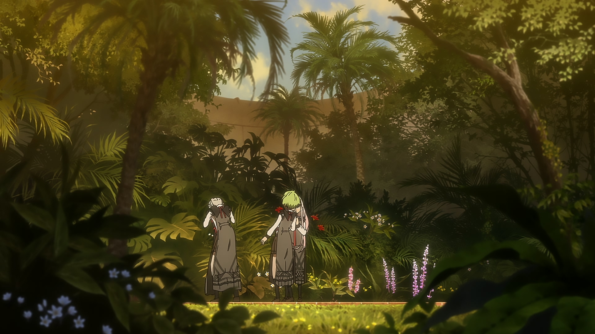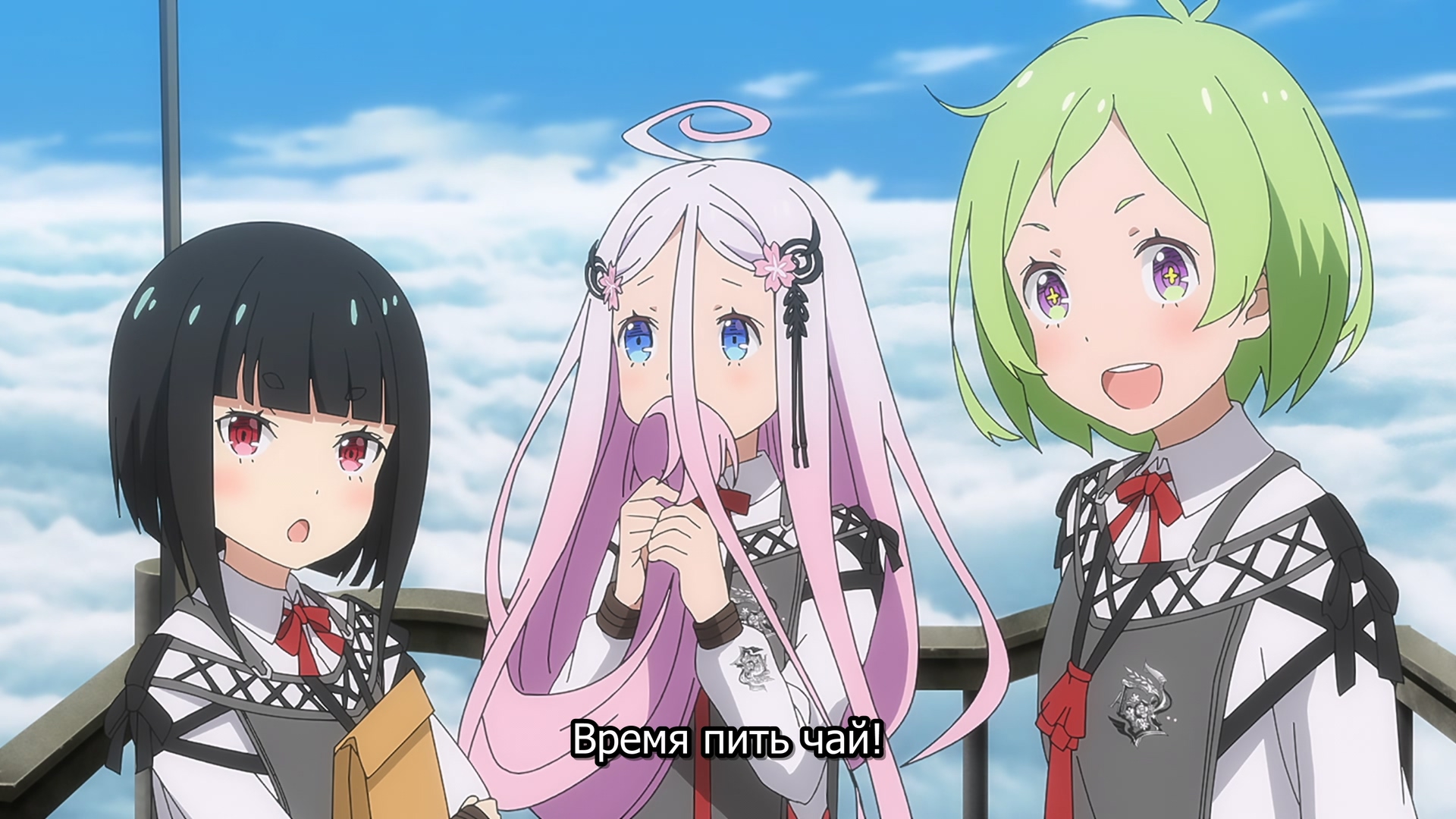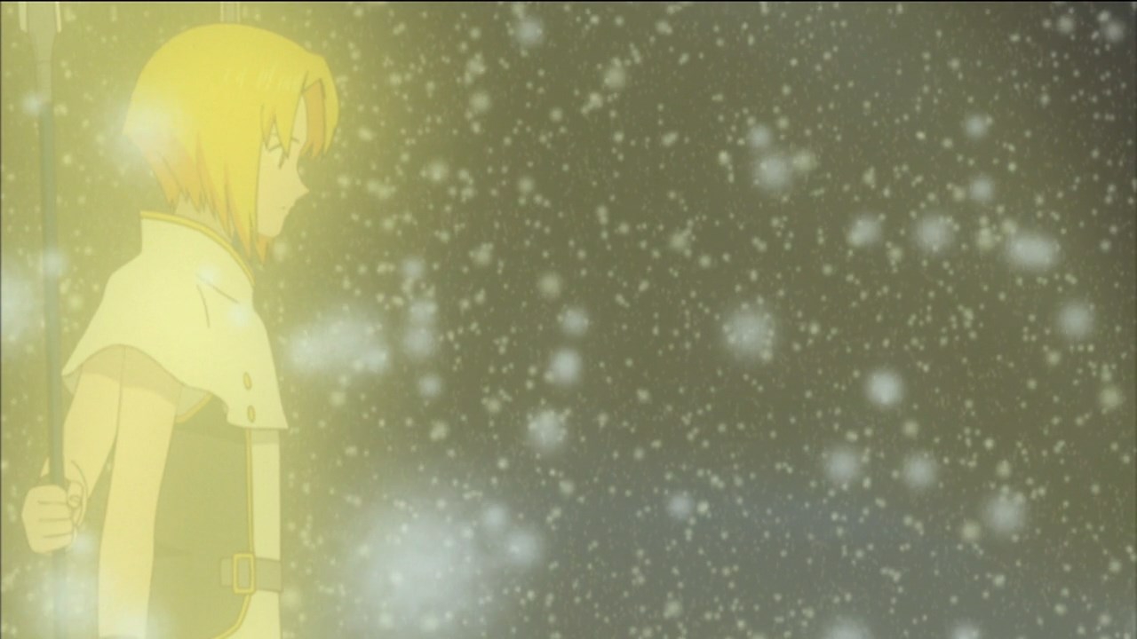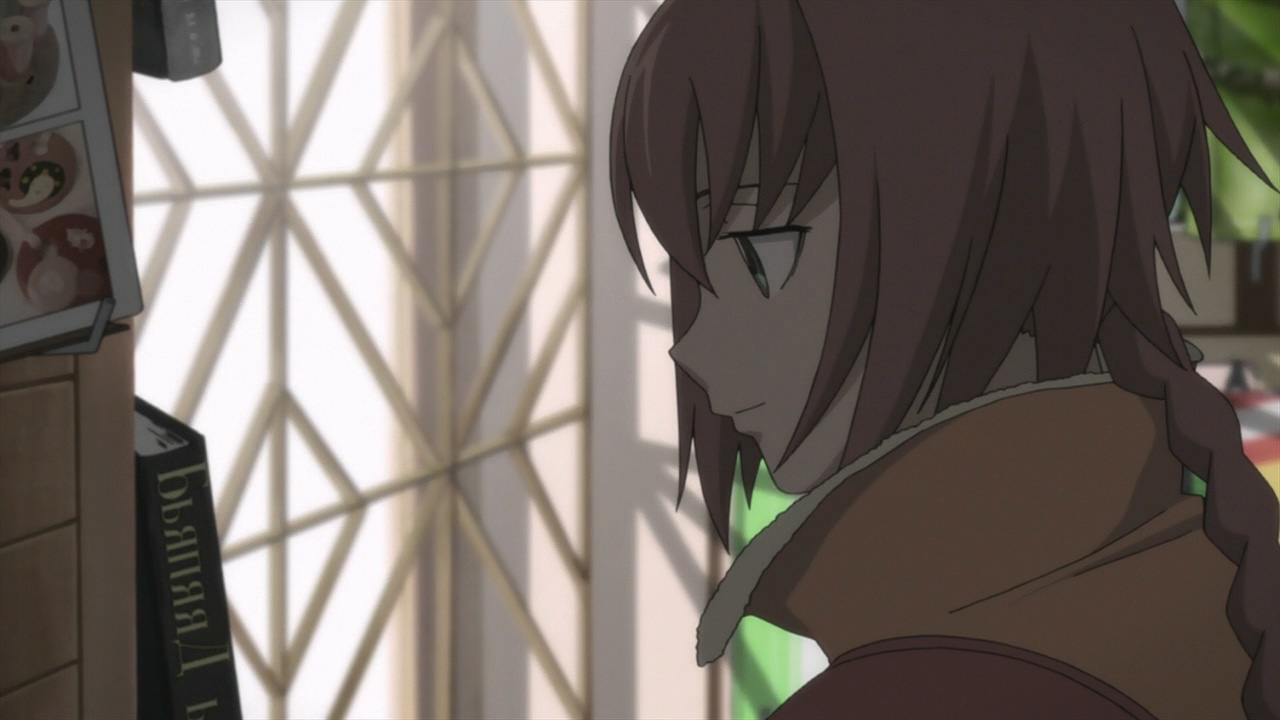 На атмосферу играет и повествование - очень мееедленное, тягучее, практически лишенное какой-либо движухи или ярких сцен. Прогулки, разговоры (чаще всего ниочем), глубокомысленное молчание... И это все, будем честны, скучновато. Есть сюжетные крючочки, на которые зритель хоть как-то клюет, вроде спящей девочки и тайны Цукасы, но раскрывают то их лишь под конец, а до этого приходится пробираться через повествовательное болото. А, ну еще была история про алых рыцарей с синдромом вахтера, но там вообще смех один, а уж их глава Субару - самый унылый и серый персонаж всего сериала, что, однако ж, не помешало авторам во второй половине пихнуть ее на передний план, причем очевидно во вред экранному времени куда более яркой и интересной Мимиру. Неудачный ход.