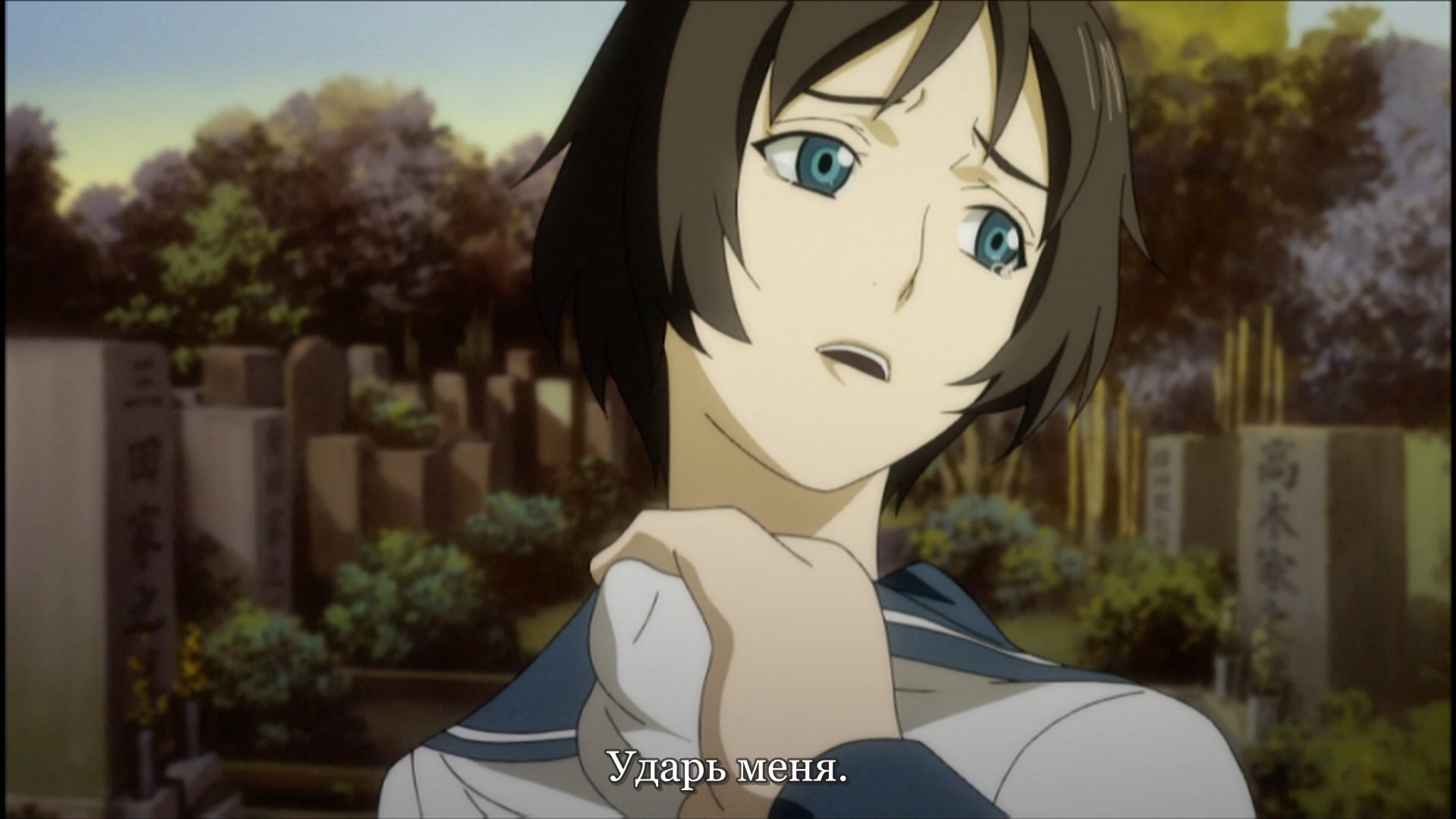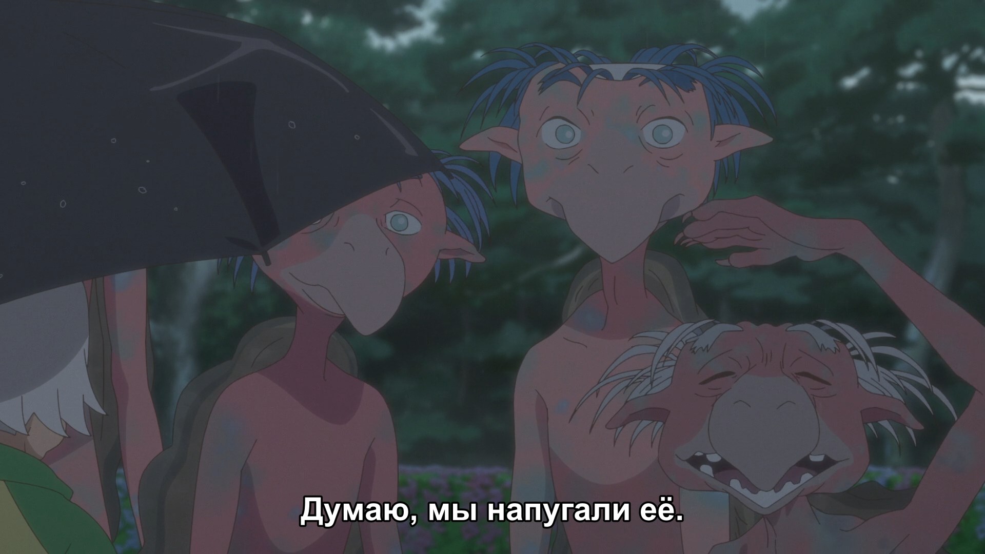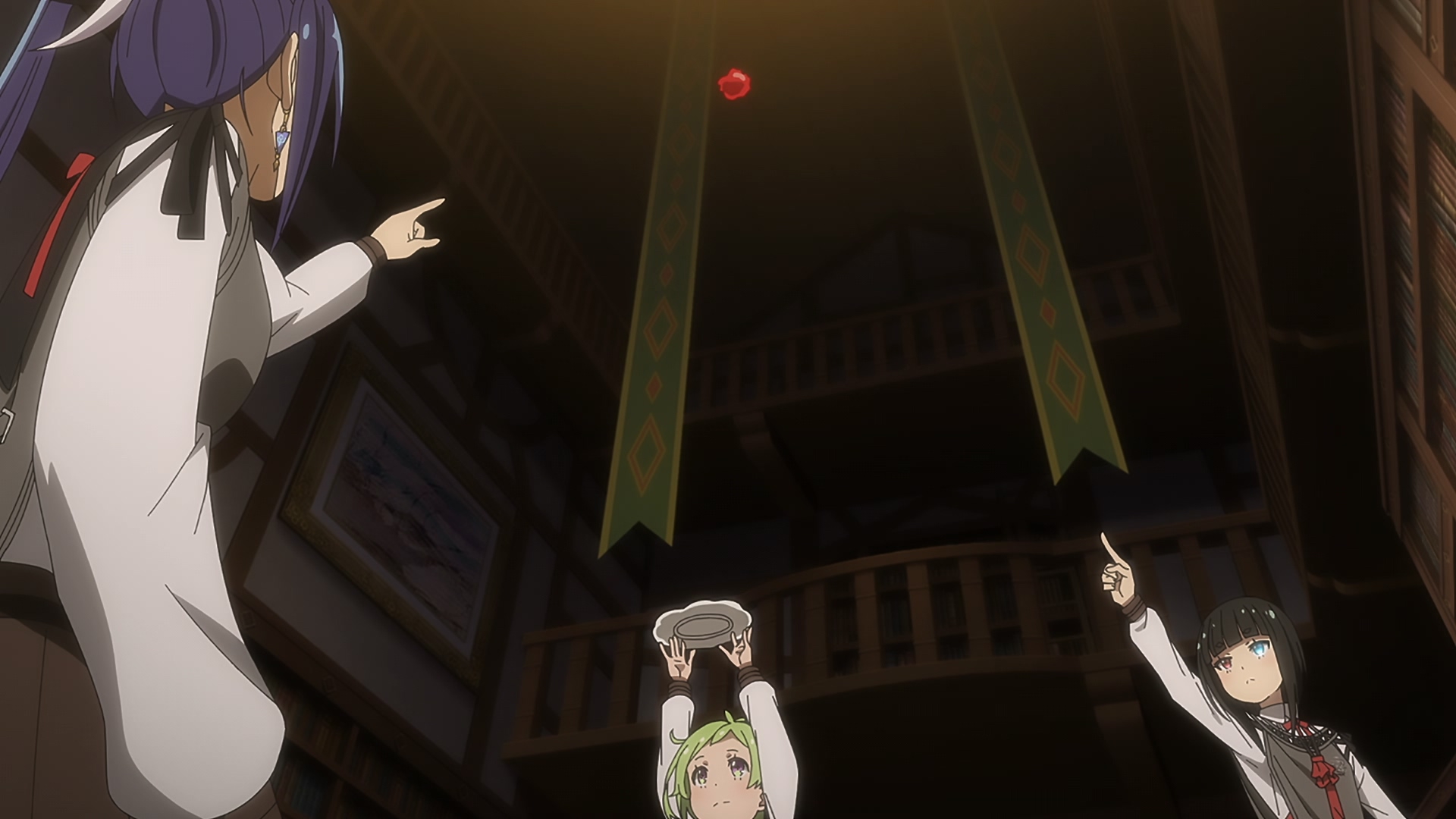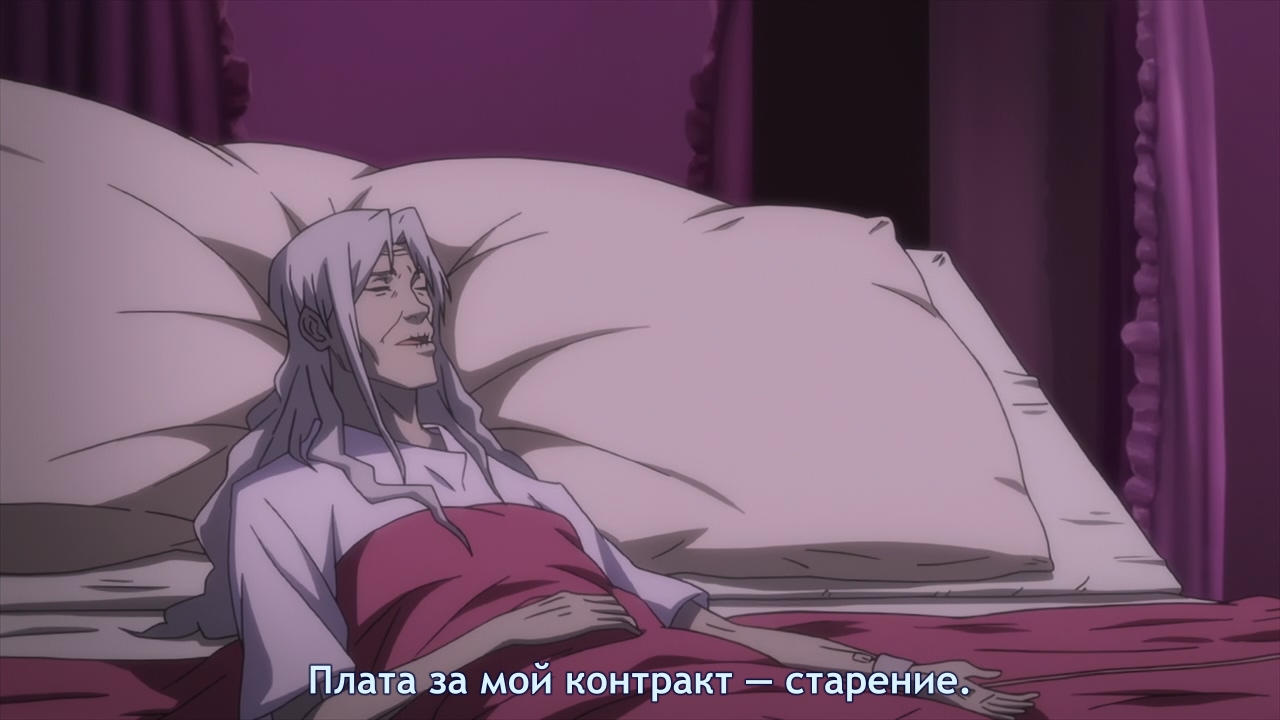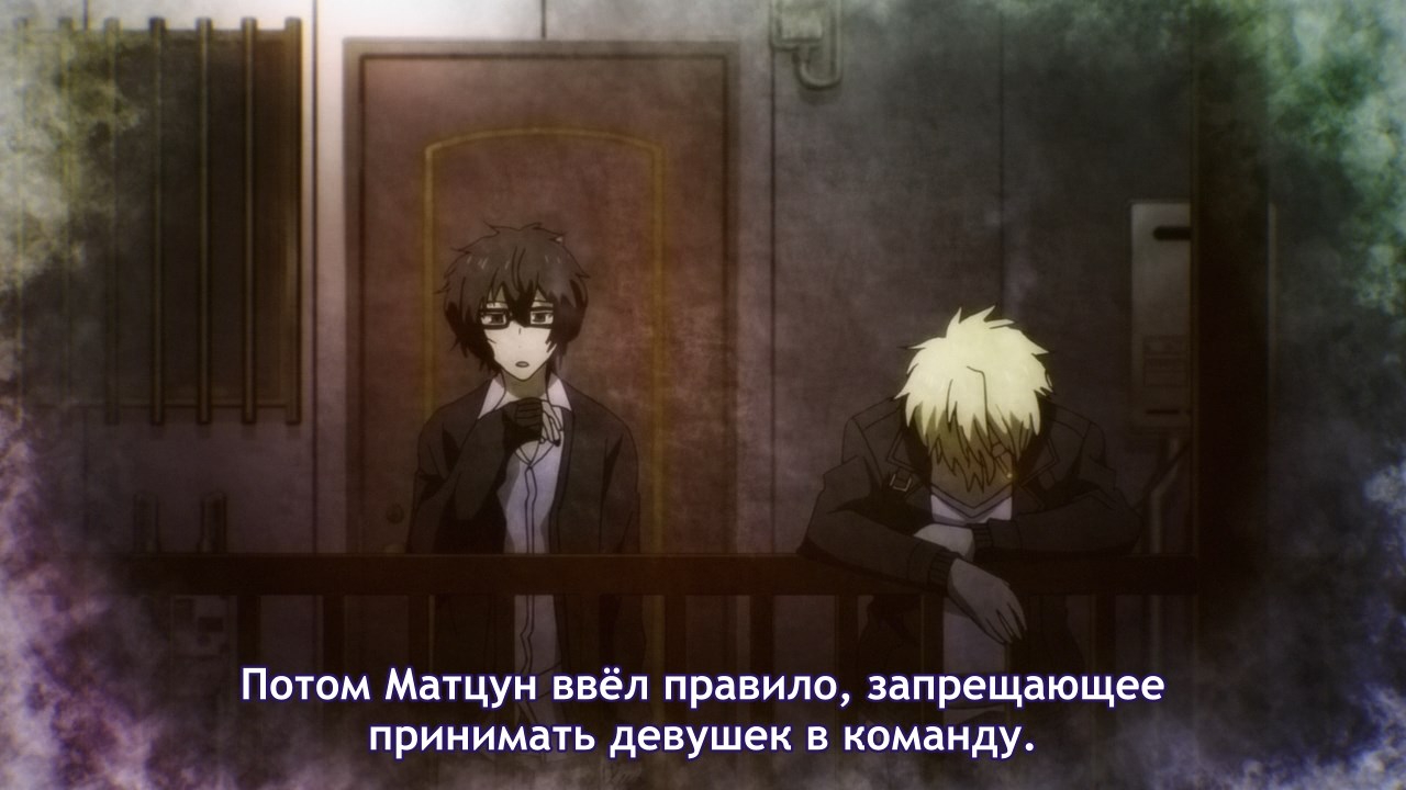 На атмосферу играет и повествование - очень мееедленное, тягучее, практически лишенное какой-либо движухи или ярких сцен. Прогулки, разговоры (чаще всего ниочем), глубокомысленное молчание... И это все, будем честны, скучновато. Есть сюжетные крючочки, на которые зритель хоть как-то клюет, вроде спящей девочки и тайны Цукасы, но раскрывают то их лишь под конец, а до этого приходится пробираться через повествовательное болото. А, ну еще была история про алых рыцарей с синдромом вахтера, но там вообще смех один, а уж их глава Субару - самый унылый и серый персонаж всего сериала, что, однако ж, не помешало авторам во второй половине пихнуть ее на передний план, причем очевидно во вред экранному времени куда более яркой и интересной Мимиру. Неудачный ход.