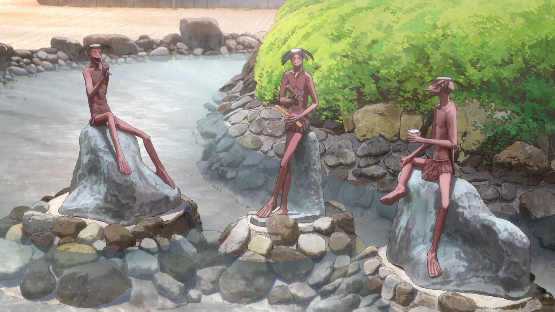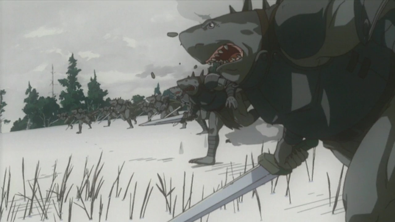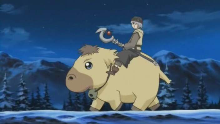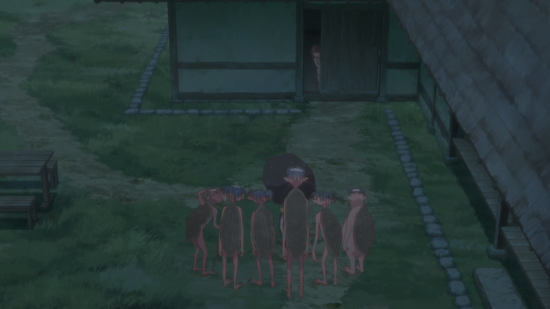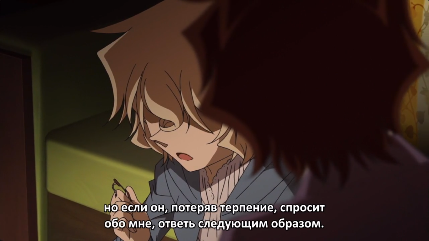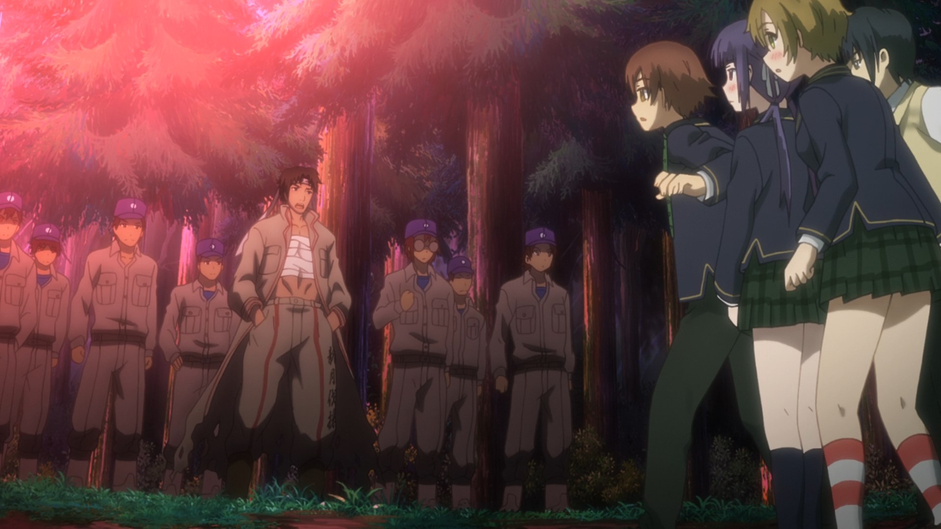 На атмосферу играет и повествование - очень мееедленное, тягучее, практически лишенное какой-либо движухи или ярких сцен. Прогулки, разговоры (чаще всего ниочем), глубокомысленное молчание... И это все, будем честны, скучновато. Есть сюжетные крючочки, на которые зритель хоть как-то клюет, вроде спящей девочки и тайны Цукасы, но раскрывают то их лишь под конец, а до этого приходится пробираться через повествовательное болото. А, ну еще была история про алых рыцарей с синдромом вахтера, но там вообще смех один, а уж их глава Субару - самый унылый и серый персонаж всего сериала, что, однако ж, не помешало авторам во второй половине пихнуть ее на передний план, причем очевидно во вред экранному времени куда более яркой и интересной Мимиру. Неудачный ход.