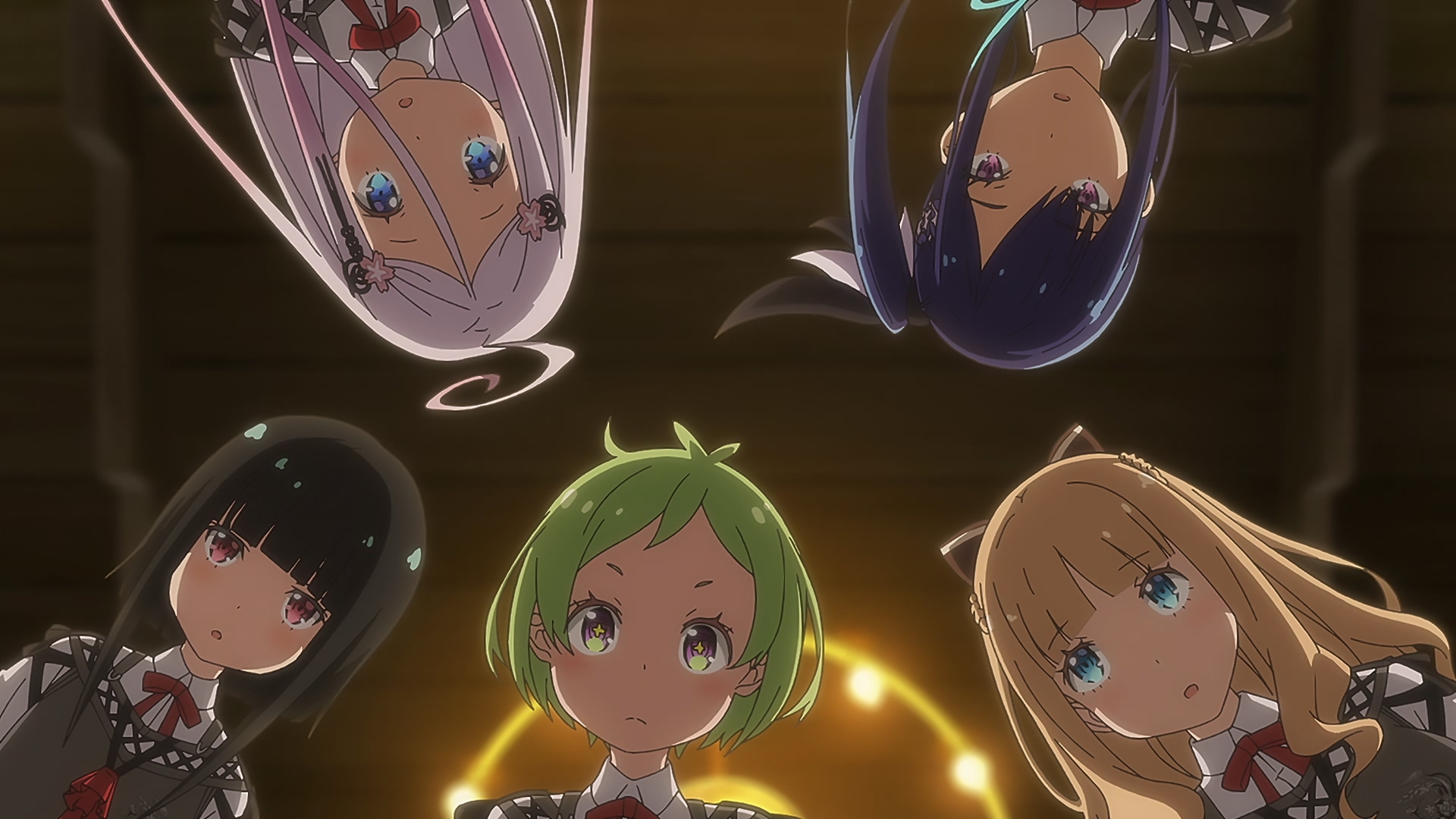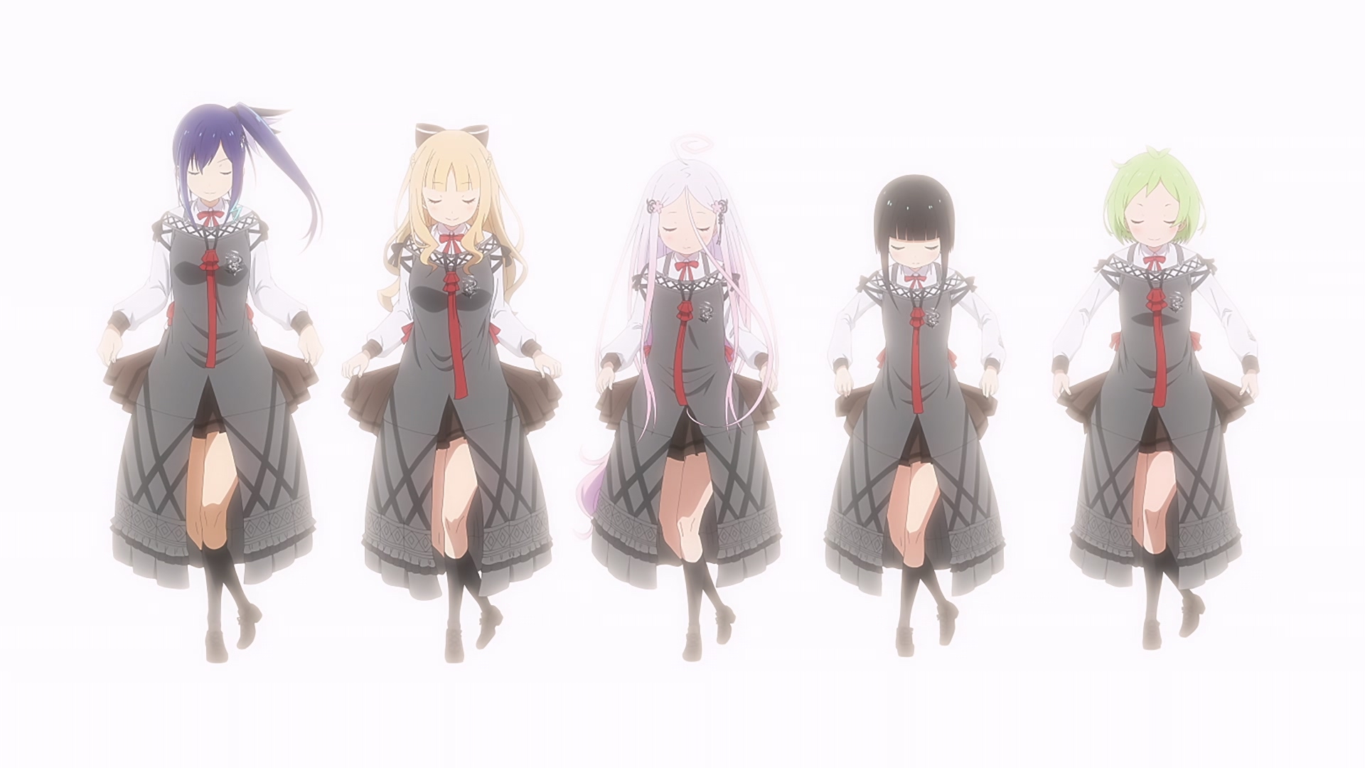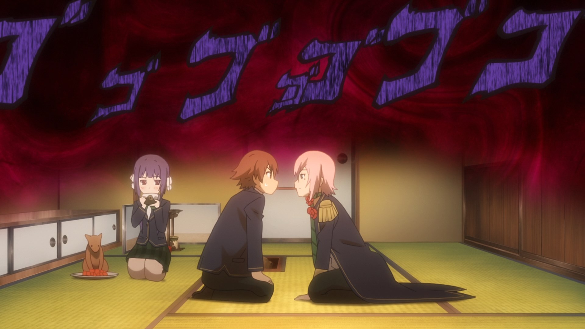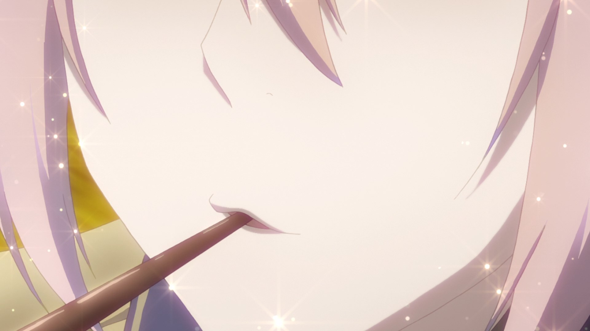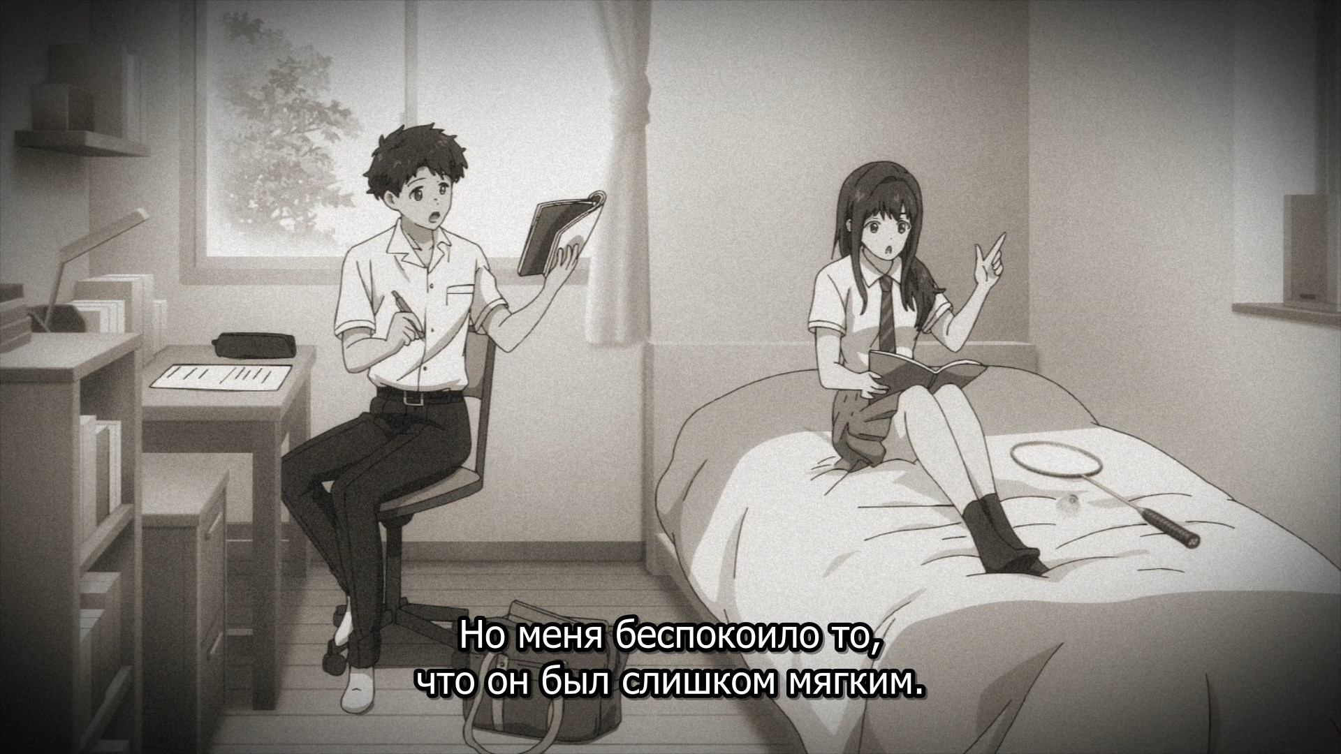Странное аниме. В самом начале оно напомнило мне гаккогураши своим сочетанием комфи-слайсика внутри школы и триллера с расчлененкой за ее пределами - но они слишком сильно развели эти два мира, чтобы редкие фрагменты из второго в действительности оказывали заметный импакт на атмосферу первого. В итоге слайсик, в котором чрезвычайно милые девочки участвуют в маленьких приключениях, часто напоминающих простые квесты или "истории с обменом", а большую часть времени пьют чай, ведя отдающие лакистаром диалоги о порядке начинок сконов, в которых можно разглядеть темы следования правилам, желаний и счастья. И во всем этом чувствуется какой-то странный ритм и словно какой-то мета-смысл, который я не вполне пока уловил, т.к. поздно начал обращать на него внимание. В общем я планирую пересмотреть тайтл чуть позже, но в целом в любом случае это довольно приятный сюрприз и первая понравившаяся мне работа Татсувы вне шафта(хотя я не смотрел тот гейский тайтл - а его хвалят). Предварительные 6/10.