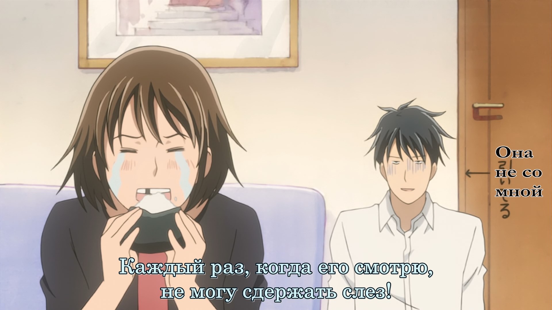 Романтика с минимумом романтики в основном односторонняя, комедия с минимумом шуток (в основном рожицы и gyabo/ugya - что, скорее, ближе к милоте), драма с минимумом драмы, и она где-то в воспоминаниях, кадры из которых показывают позже. Лучшее что есть - музыка и преображения персонажей, когда они играют. Ощущение, что чего-то не хватает. То ли в отдельных моментах, то ли в связующей нити. Хотя под конец вроде это всё стало больше... ммм... резонировать? Будто бы кто-то перестал этот тайтл стискивать в руках, и отпустил. Прям как когда Нодаме перестали загонять в рамки и дали играть свободно. Финальная сцена на закате хороша. И в общем впечатления положительные, гораздо лучше моего первого трая пять лет назад. Мне тогда надо было просто перетерпеть еще пару серий. Когда Нодаме покрасилась во второй серии, она мне напомнила Клару из похожей серии Ирумы-куна. Масуме-чан не нужна. не нужен --- Я понимаю, что, когда Нодаме бьют, это комедийные моменты, но мне наоборот некомфортно в это время было.