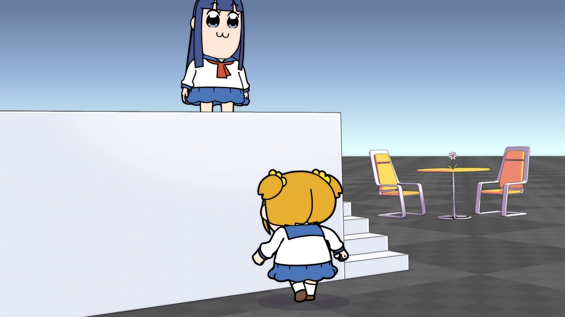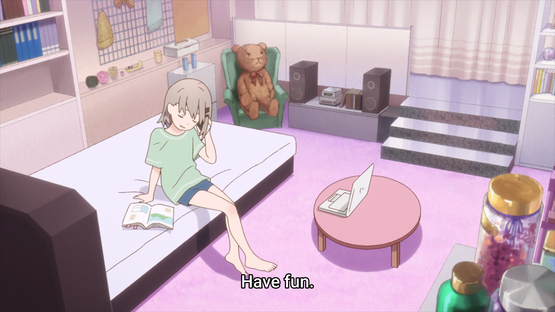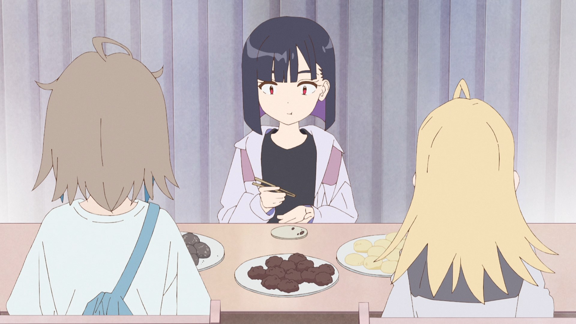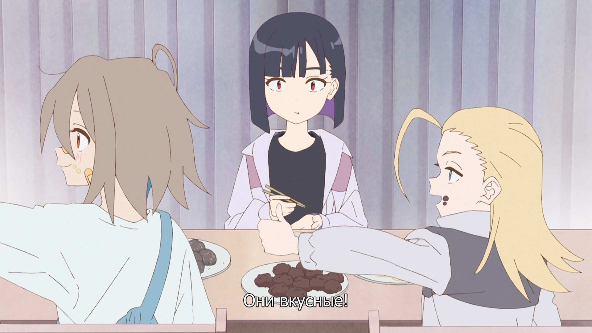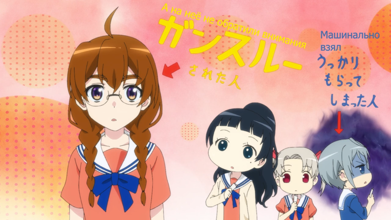 Либо со второй половины они начали исправляться, либо я просто привык к своеобразным не смешным шуткам. Если здраво рассудить, то это обычная скетч-комедия и ничего более. Просто как-то ооочень душно начали. Визуально кстати вполне нормальный слайсик. Девочки миленькие такие. Может это в чём-то заслуга петросяна на сабере, но я всё же повеселился местами. По-настоящему занижать не буду. 5/10