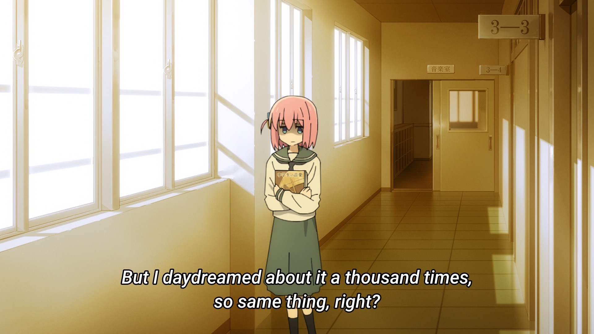 Во, даже в kimi ni todoke нам показывают, что именно физическая особенность(пускай и смехотворная - ага, классическая красавица с hime cut выглядит пугающе, ну ну) стала причиной нехватки социальных навыков. Ну хоть так, понятно, что тайтл не ставит серьезной задачи исследования этой темы, поэтому такую условность можно принять. Но когда даже этого нет все Боччины "старания" выглядят не особо и старательными.