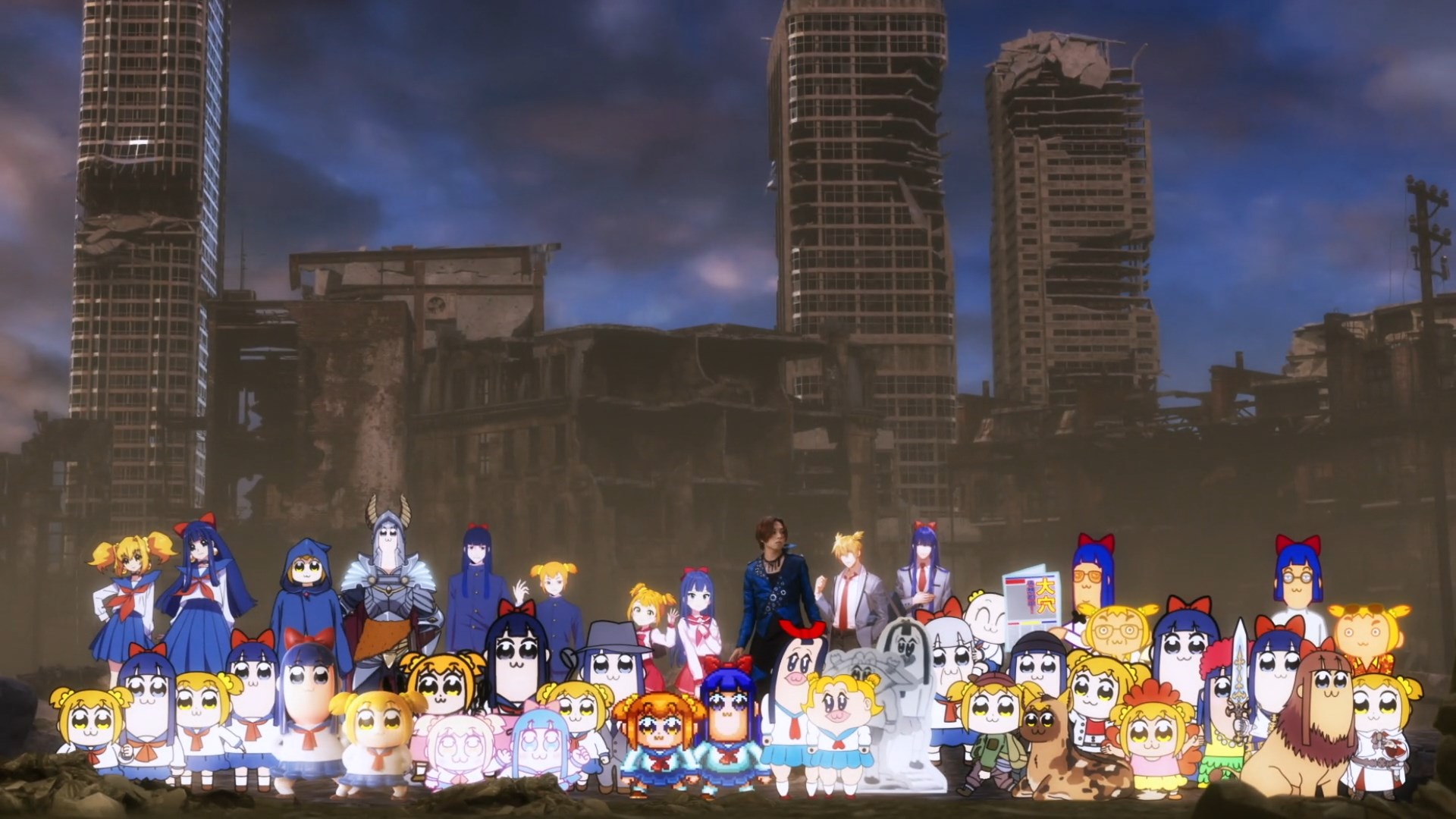 >Kamen Rider actor Yuichi Nakamura (中村優一) complained online that googling his name got results for voice actor Yuichi Nakamura (中村悠一), so he jokingly asked media creators for a gig where they could work together. >So in Pop Team Epic ep 12, the actor Nakamura plays two roles (one of whom is named Nakamura) and the voice actor Nakamura voices over one of them.