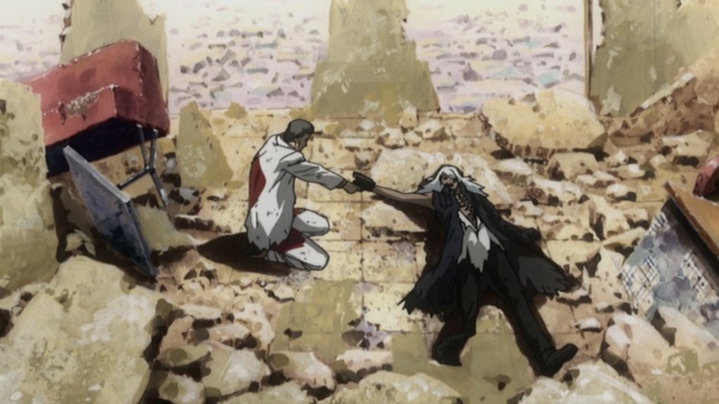 Я то думаю, что за хуйня. А оказалось что отсебятина. Не помню такого в манге. Помню ГГ был кочкой, который просто хотел быть самым сильным (с самого начала подчеркивалась исключительная комедийность манги), а здесь даже как-то не понятно.