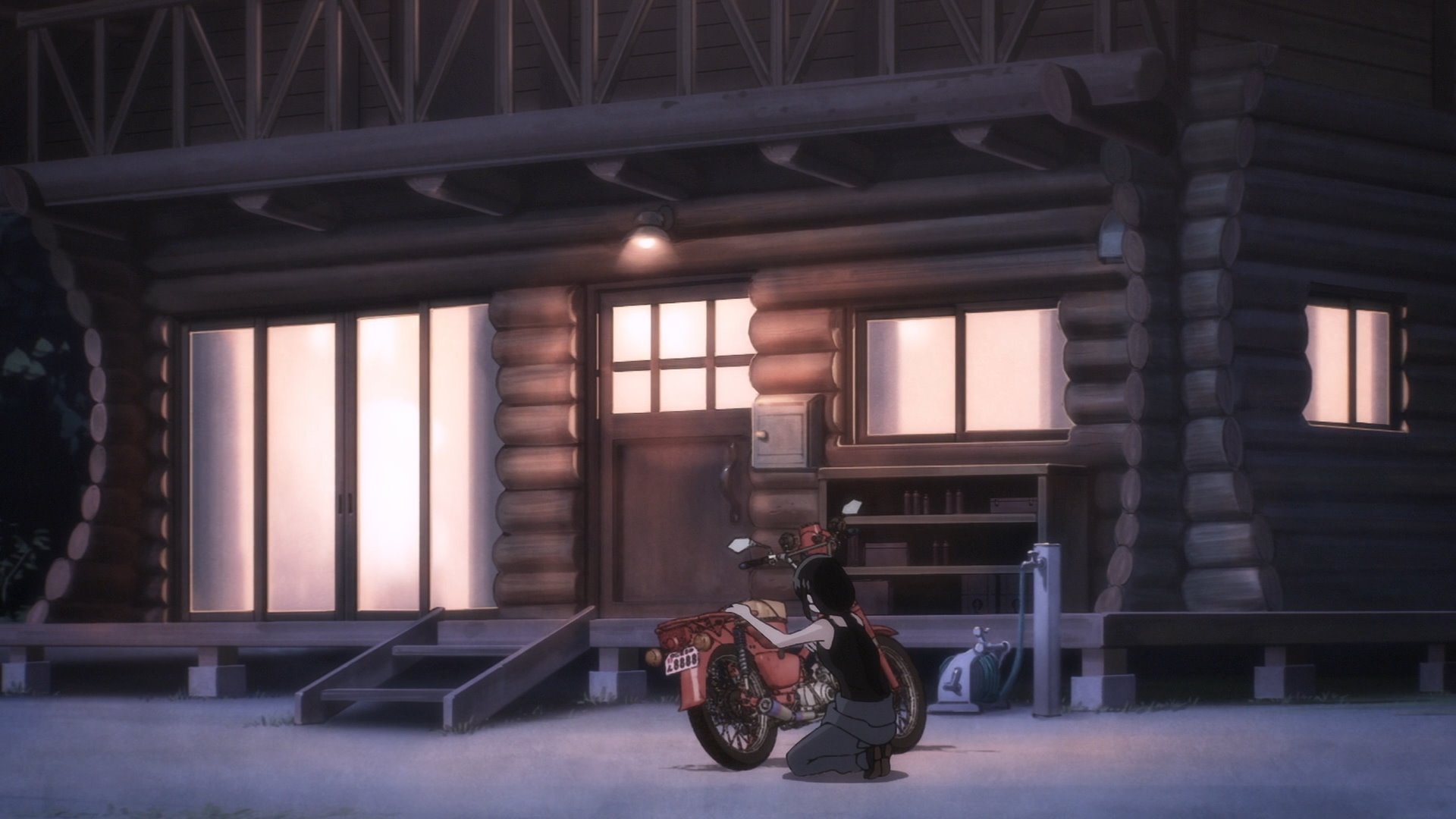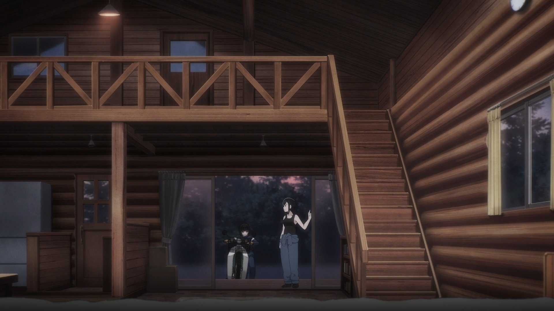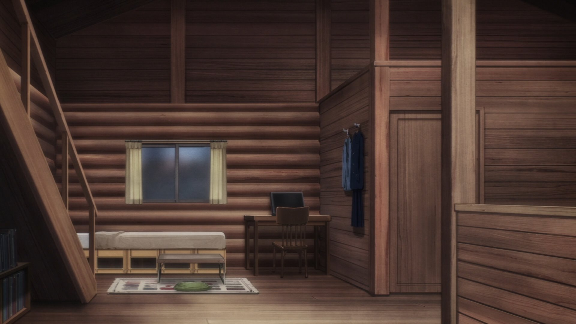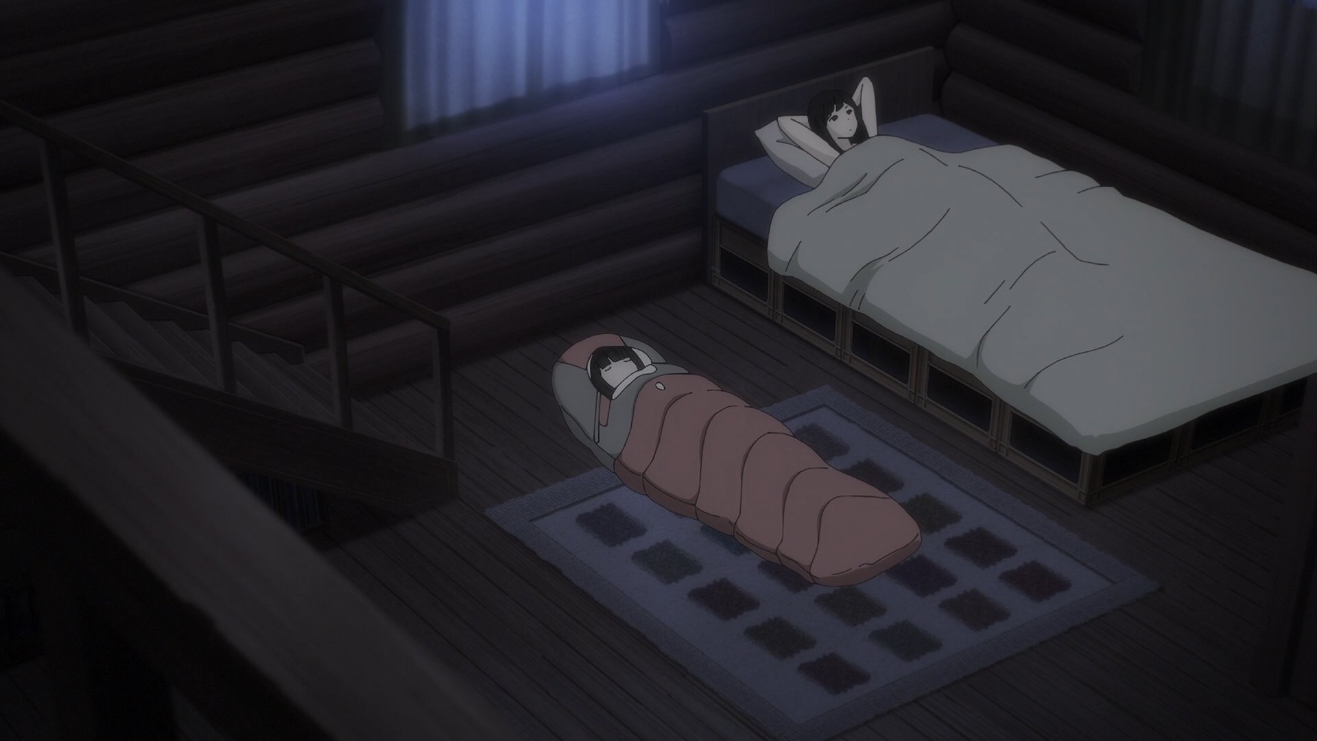 Интересная, конечно, у неё изба-гараж. Хотя даже не изба. Летний домик на одну огромную комнату. Отопления нет, дыр стеклянных много, огромный объём, который хуй отопишь даже при желании. Не зря ГГ аж в горном спальнике спит. Наверное, поэтому и может себе его позволить. Находится в жопе, для жилья пригоден не то чтобы совсем.