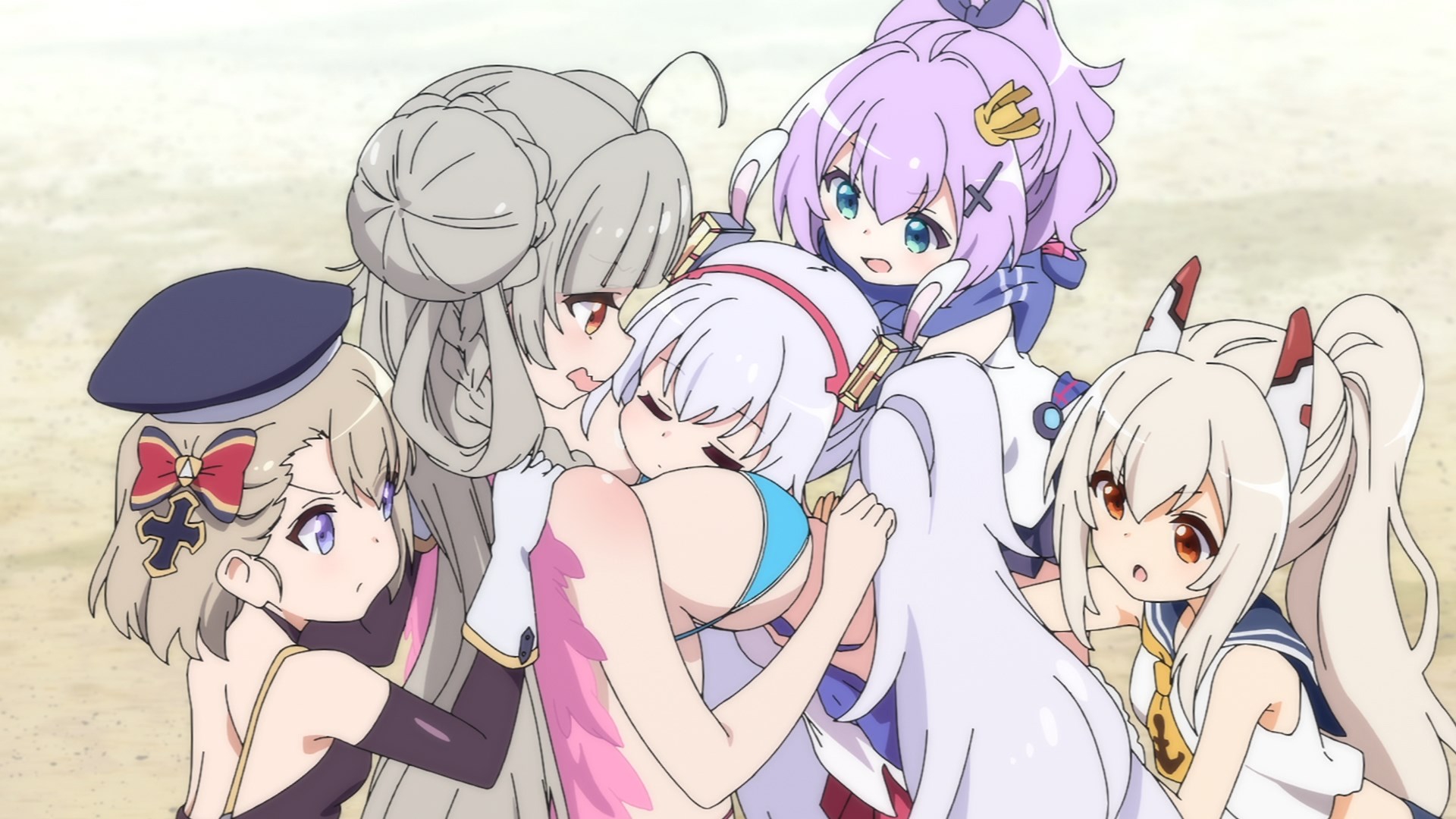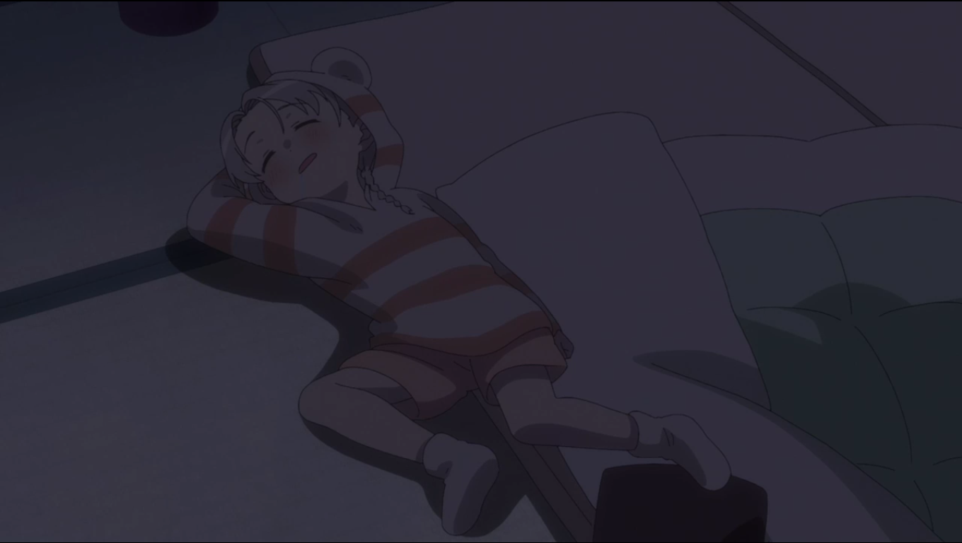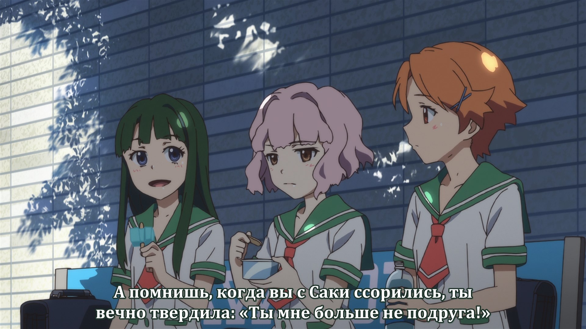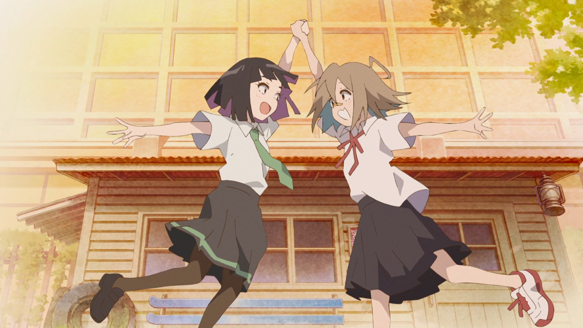 Оригинальный cgdct слайсик это конечно большая редкость и хотя не сказать, что история и персонажи выглядят особо "оригинальными", но сам ее темп и ткань ощущаются более ровными, спланированными и без торчащих тут и там "ушей" исходного материала. Весь тайтл построен на контрастах: высокотехнологичный мир, несущейся к границе техносингулярности, соседствует и бросает длинные тени на остатки уходящей эпохи с ее "устаревшими" ценностями и ритмом. Две подруги детства - прагматичная 3d и оторванная от реальности и кажется вот-вот готовая полностью соскользнуть в мир фантазий Ю Селф. Как водится им есть что друг другу предложить и финальный эпизод в том числе расставляет точки в отношениях героинь и разрешая мелкие недопонимания, в сопровождении множества обнимашек. Хорошее аниме - не без мелких шероховатостей, но ведь они придают индивидуальность и вообще центральная идея тайтла. 7/10