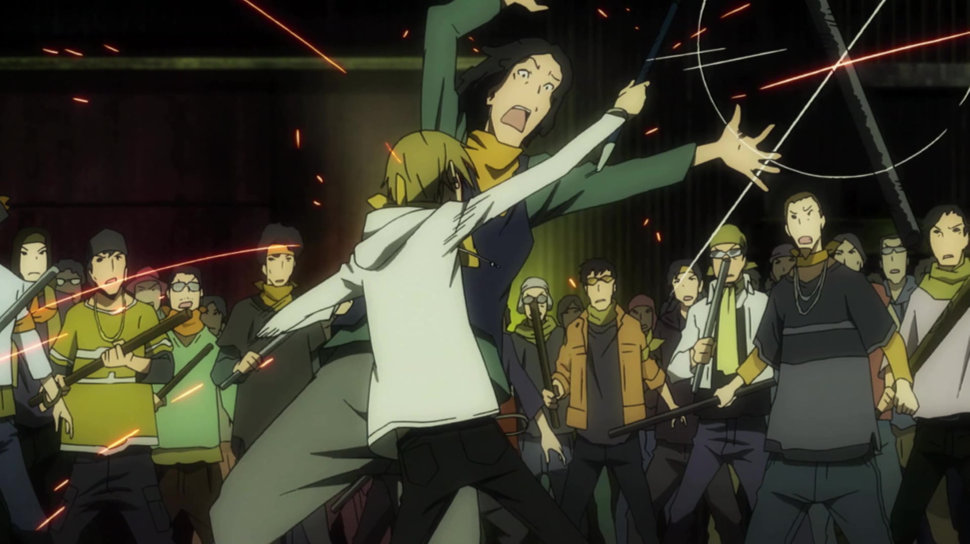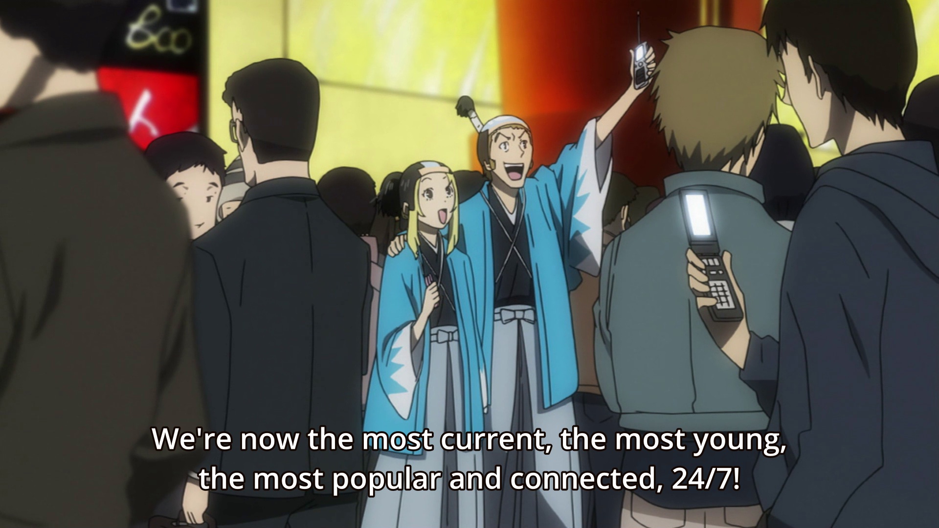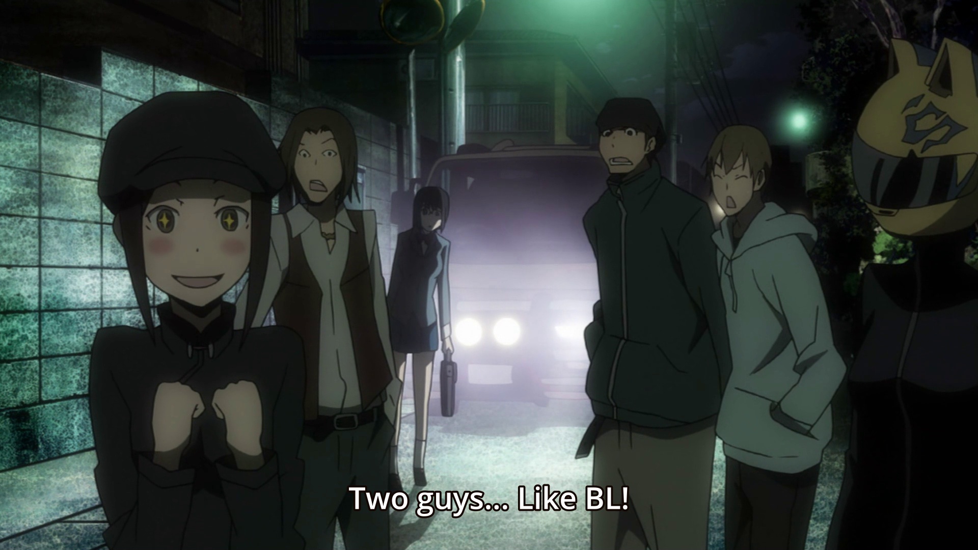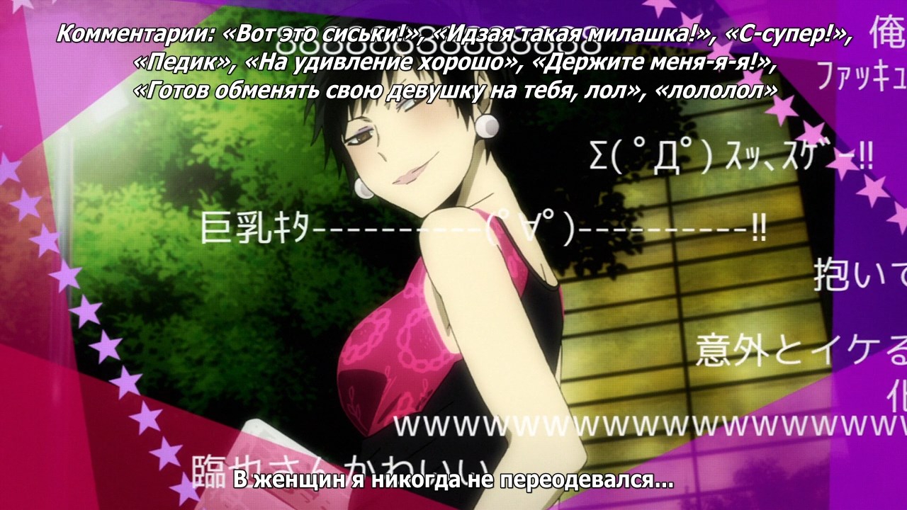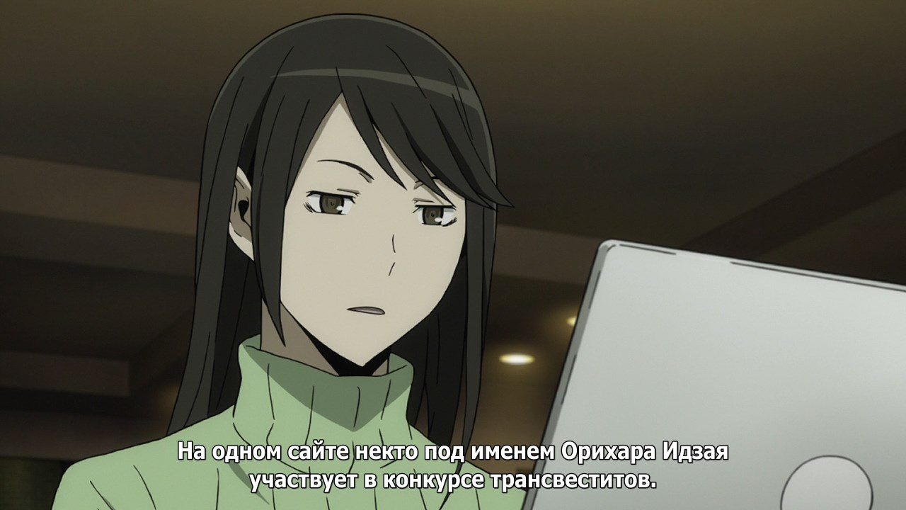 Первая половина - годнота Атмосферная и с интересным сюжетом Много знакомят с Икебукуро, который как сам по себе является персонажем сериала, который полнится городскими легендами и слухами. Все эти сетевые магазины (с реальными названиями), рекламные афиши (с реальными аниме) сильно напомнили игру Akiba's Trip - тут тоже было немало отаку культуры, та же троица отакунов, постоянно пиздящая о манге и аниме Лютые вайбы конца нулевых/начала десятых во всем - телефоны раскладушки, смартфоны с клавиатурой, интернет-форумы с чатами. Ностальгия жесткая Да и история Селти была реально интересной, без всякой хуйни