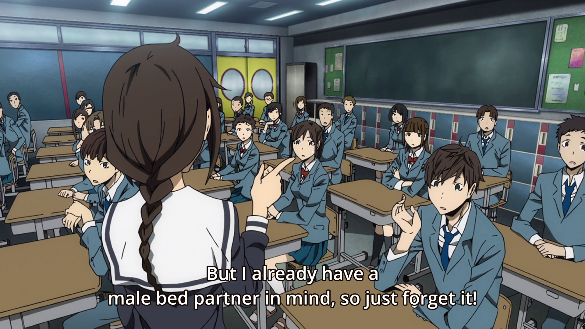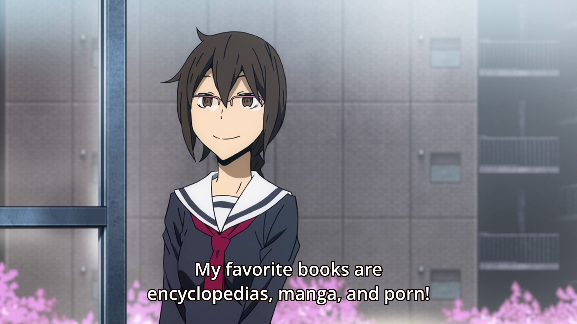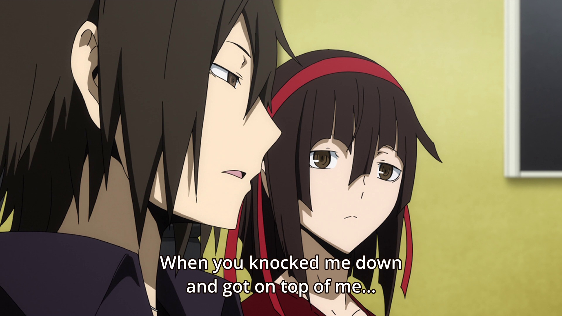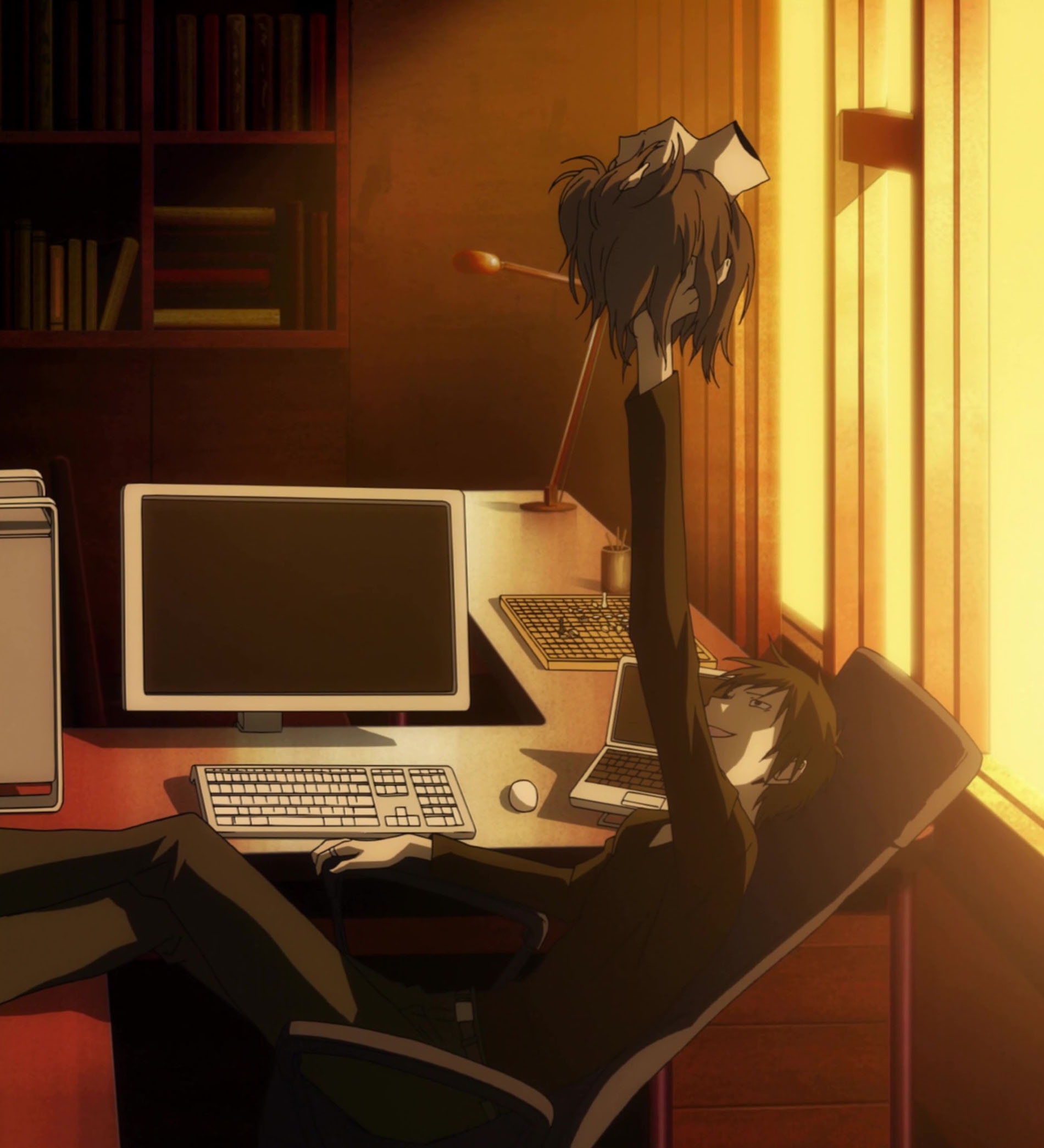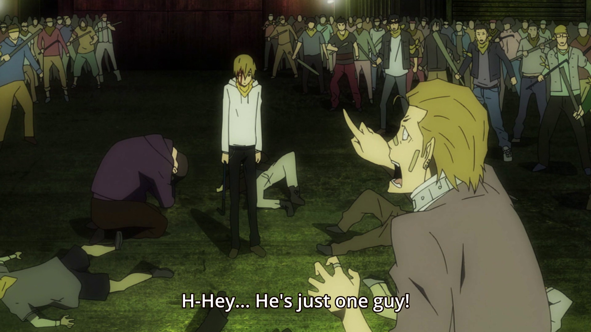 Первая половина - годнота Атмосферная и с интересным сюжетом Много знакомят с Икебукуро, который как сам по себе является персонажем сериала, который полнится городскими легендами и слухами. Все эти сетевые магазины (с реальными названиями), рекламные афиши (с реальными аниме) сильно напомнили игру Akiba's Trip - тут тоже было немало отаку культуры, та же троица отакунов, постоянно пиздящая о манге и аниме Лютые вайбы конца нулевых/начала десятых во всем - телефоны раскладушки, смартфоны с клавиатурой, интернет-форумы с чатами. Ностальгия жесткая Да и история Селти была реально интересной, без всякой хуйни