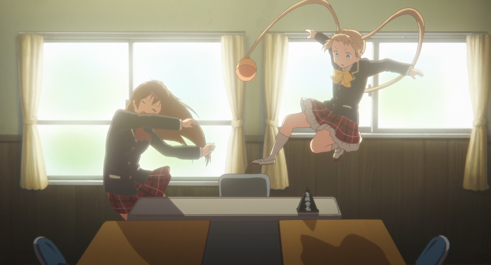 Хотя я только сейчас понял, что одну из сестер озвучивает та же актриса, что и одну из сестер Арараги, тогда как самого Изаю озвучивает сейю Арараги