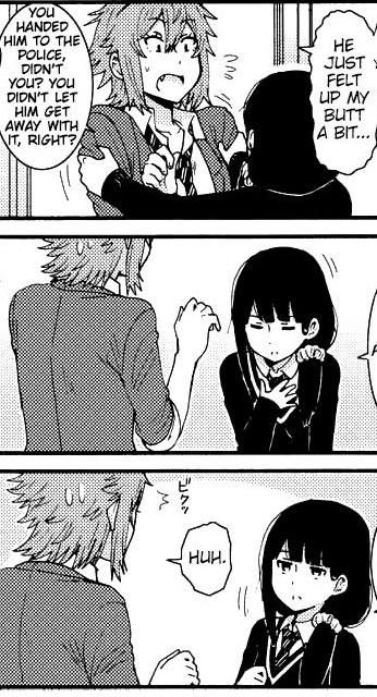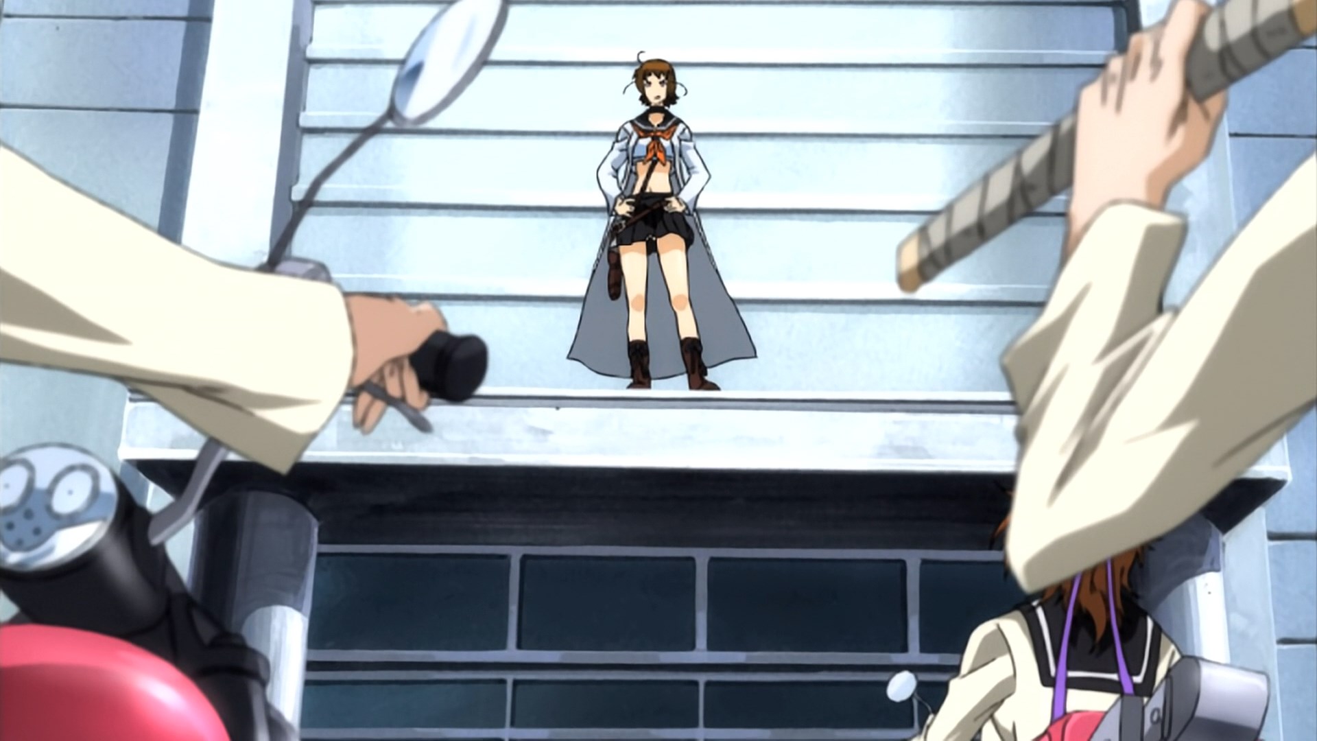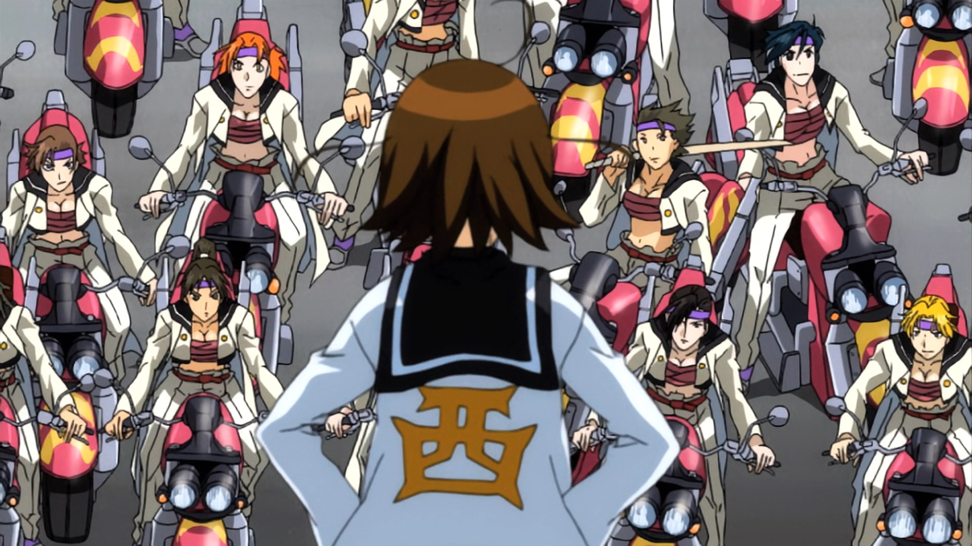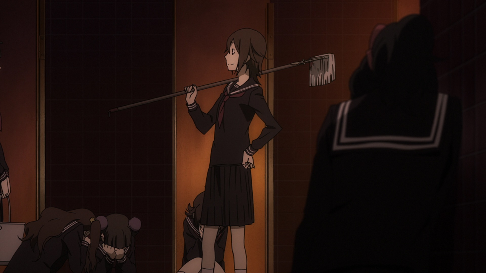А вот с середины, как пошла история Слешера, и появилась эта максимально стереотипная яндере тянка, началась дрисня. Все скатилось к кринжовым разборкам уличных банд, главой которой оказывается белобрысый старшеклассник (но он уникум, банду он сколотил еще будучи в средней школе. Ух, так и представляю 13-летку, управляющую и отдающего приказы сотням школотронов, многие из которых старше него, а некоторые уже взрослые лбы), но и конечно же сам ГГ тоже главарь банды, как же без этого