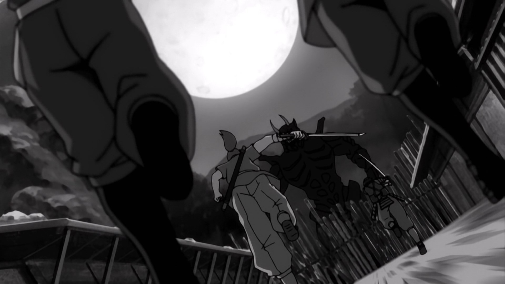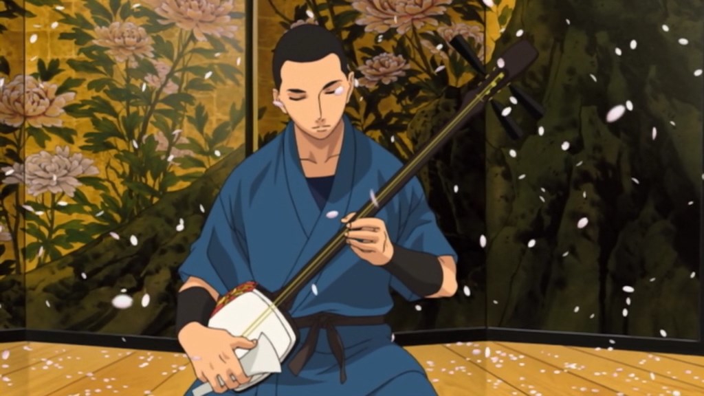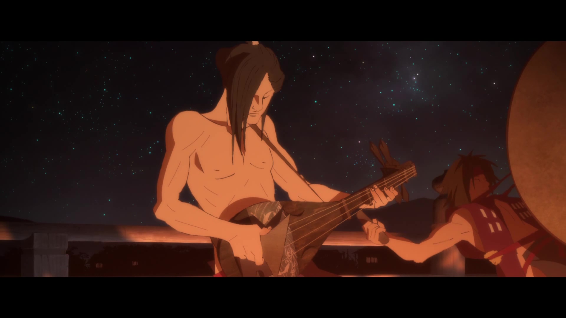 Музыка просто превосходная. Почти вся история рассказывается через выступление, собственно как исполнители на биве ее и рассказывали (что мы видели в предыдущем тайтле - Heike Monogatari), и это буквально в виде современного рок-исполнения. В середине фильма был фрагмент, который длился минут 20, и это было выступление все 20 минут без остановки