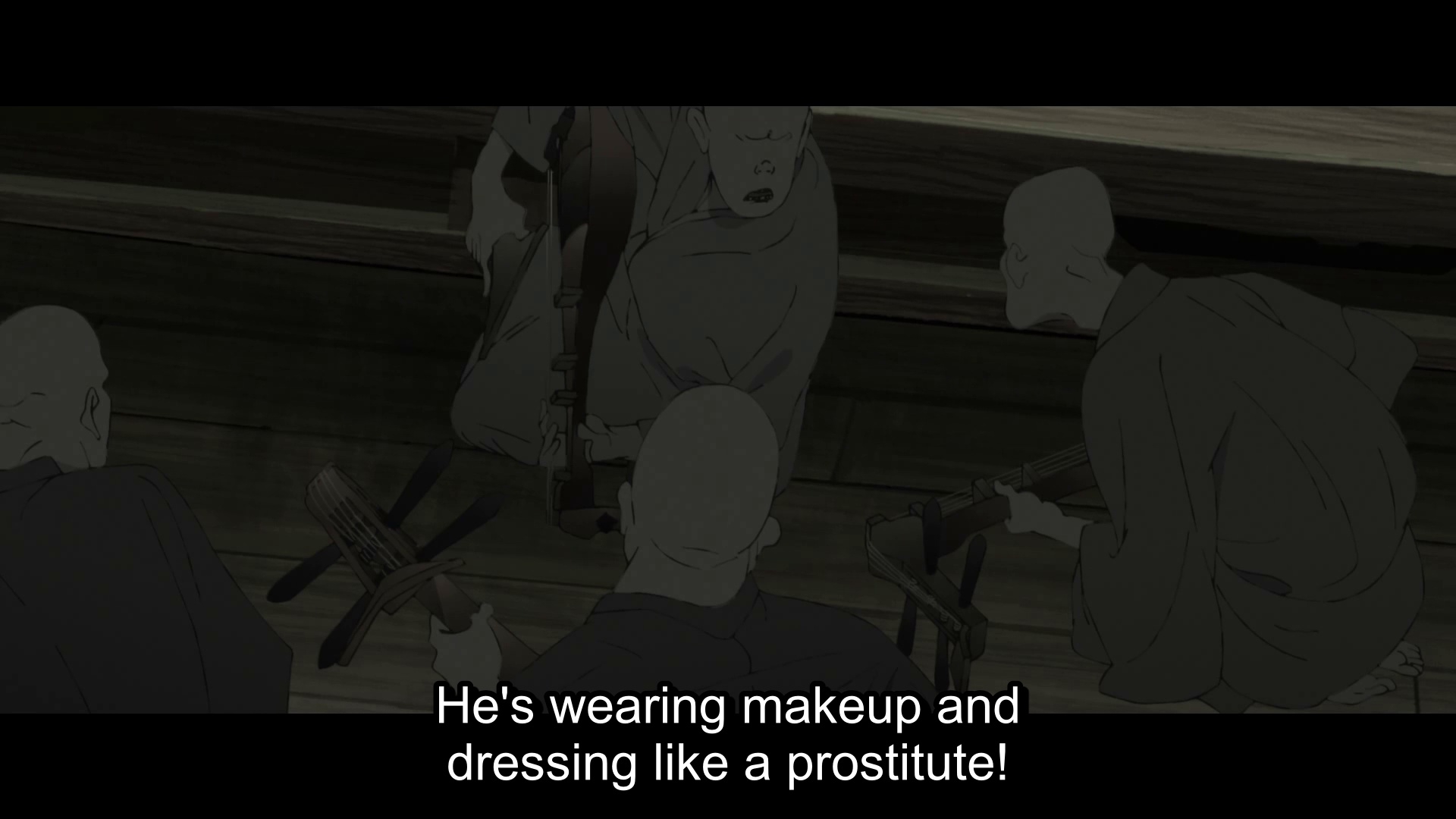 На счет гендерной идентичности одного из персонажей. На первый взгляд может показаться, что эта история никакой существенной роли не играет, но мне кажется ее нужно интерпретировать в связке с политическим мотивом сюжета фильма - того как должна рассказываться история, что только санкционированная государством (сёгуном) точка зрения должна сохраниться в истории. Томоно выбирает себе имя Томоари сам, хотя этому противятся, что его отец, что "братья"-слепцы, играющие на биве. Точно также как главные герои выбирают сами какую версию истории Хейке им рассказывать. В итоге неправильная версия истории запрещается для исполнения, отбирая у персонажа Ину-О его репертуар, а в финале "братья" пытаются заставить Томоари отказаться от своего нового имени, вернув себе имя Томоичи, которое ему дали в гильдии, но он отказывается, и все заканчивается понятно как в те времена Это не главный мотив фильма, но мне кажется задумка была такой
