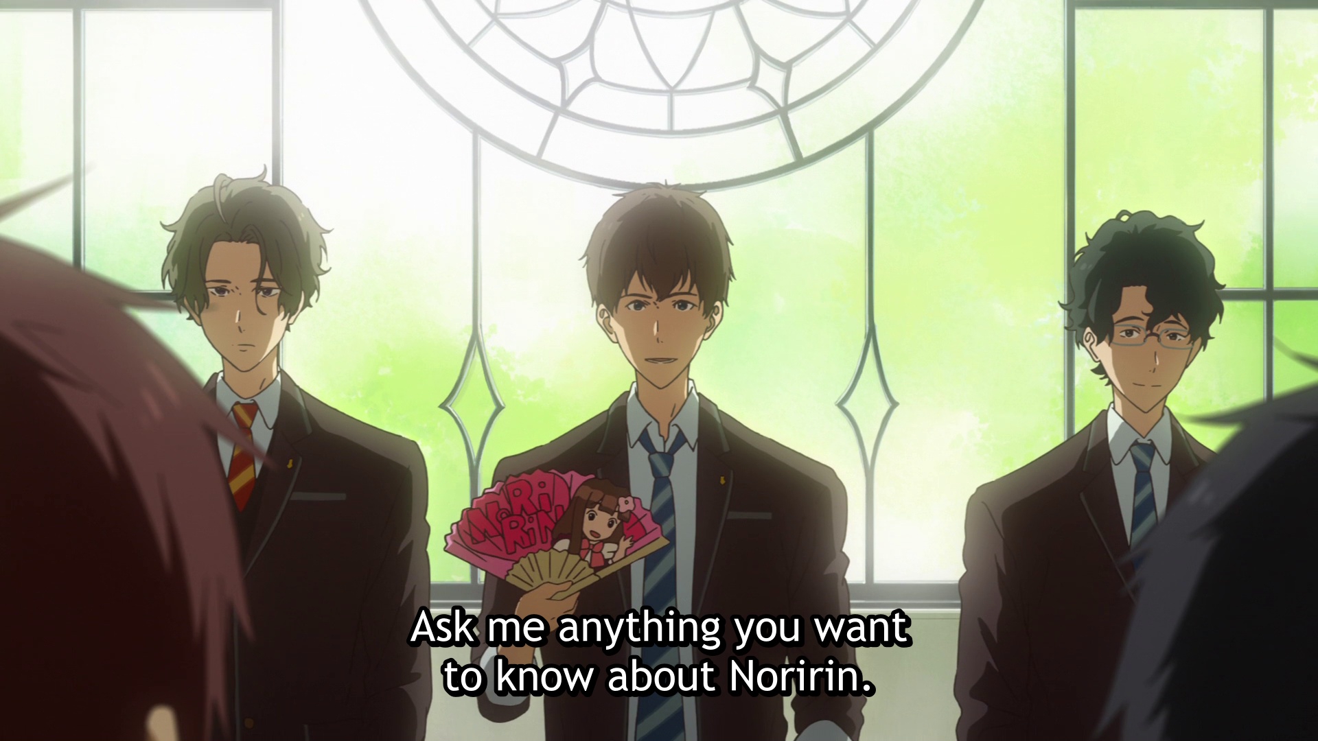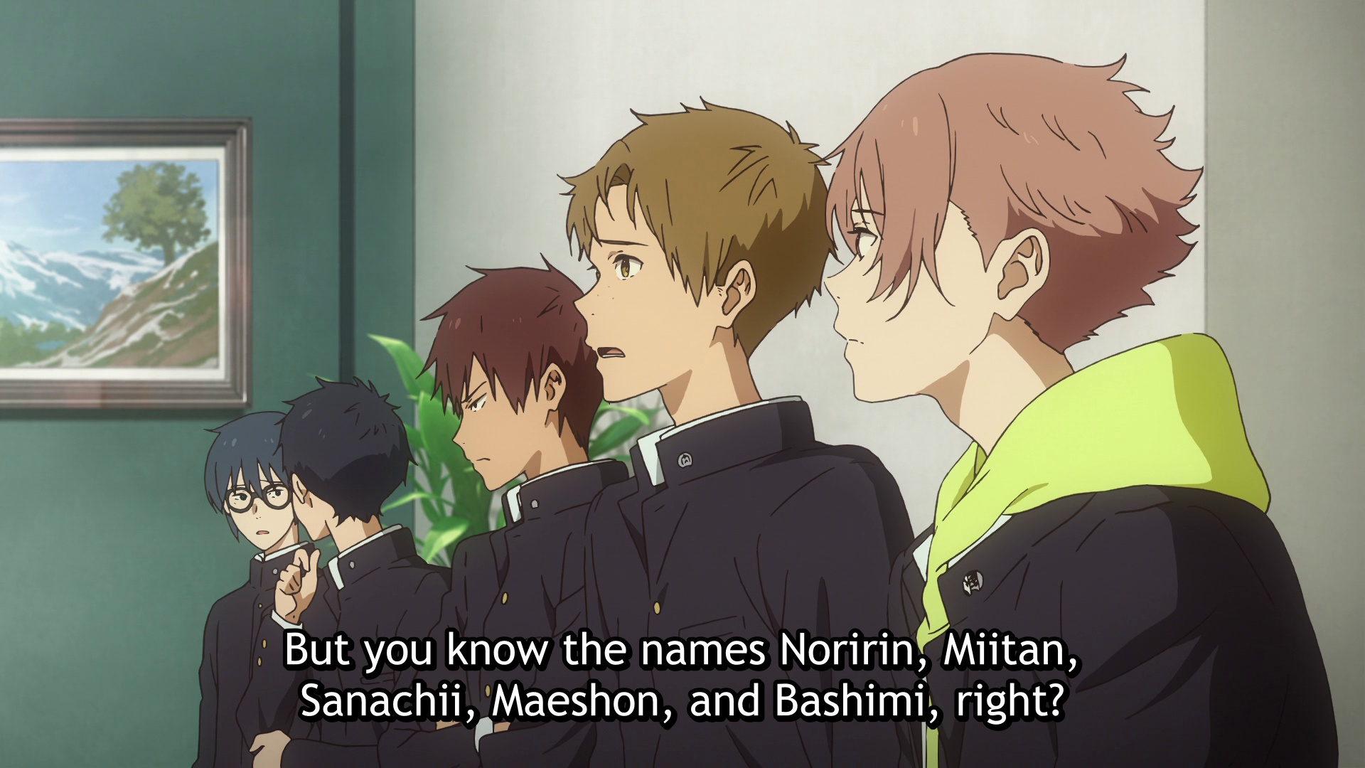 Персонажи интересные, не женерик штамповка, но за 12 серий никакой из них отпечататься в памяти не смог, 12 серийный формат was a mistake. Басист Рё очень интересный персонаж как сам по себе, так и в паре со своей одноклассницей Нижикой, но ничего из того что сделали в ней интересного раскрыто не было.