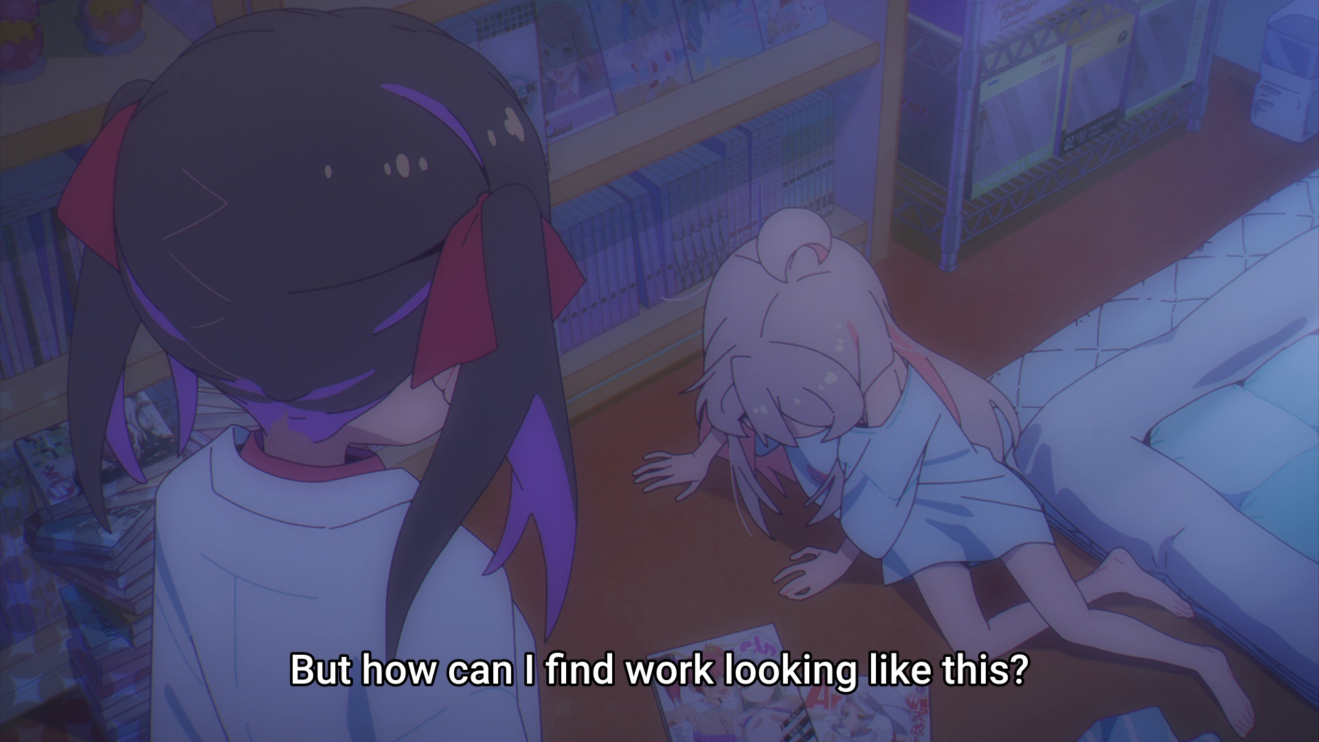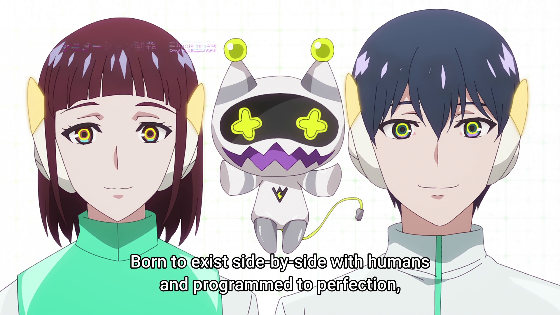 Сначала четыре андроида, у которых накопились долги по электричеству, и которые не могут найти работу и их скоро отключат Потом бойчик в шортиках, у которого батя умер Потом вообще внезапная айдол-башня, где айдолы должны климбиться вверх, зарабатывать деньги за выступления, а люди в vr-манямирке их оценивают, все это в 3д офк И андроиды после встречи с бойчем внезапно запели и затанцевали
