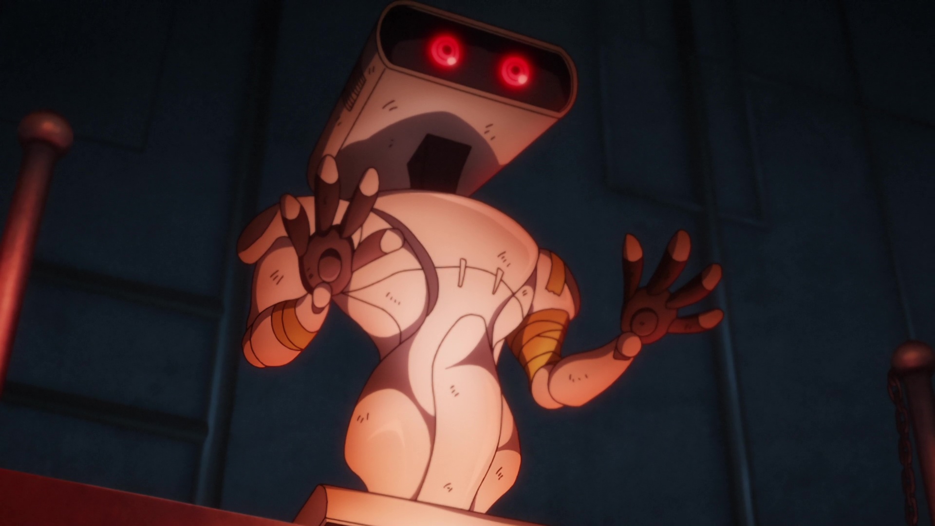 В финале серии страшный робот с красными диодами толкнул человека в лаву (откуда там лава вообще, лол?). Какая-то Виви-хуйня похоже