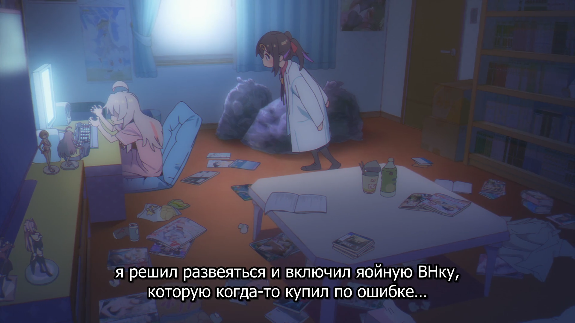 Кстати, забыл дополнить, анимация в тайтле меня удивила. Не ожидаешь в таком тайтле уместное использование 3D, кукольной анимации, игр с дизерингом. Визуальные приемы похоже на те, что использовались в Ватамоте.